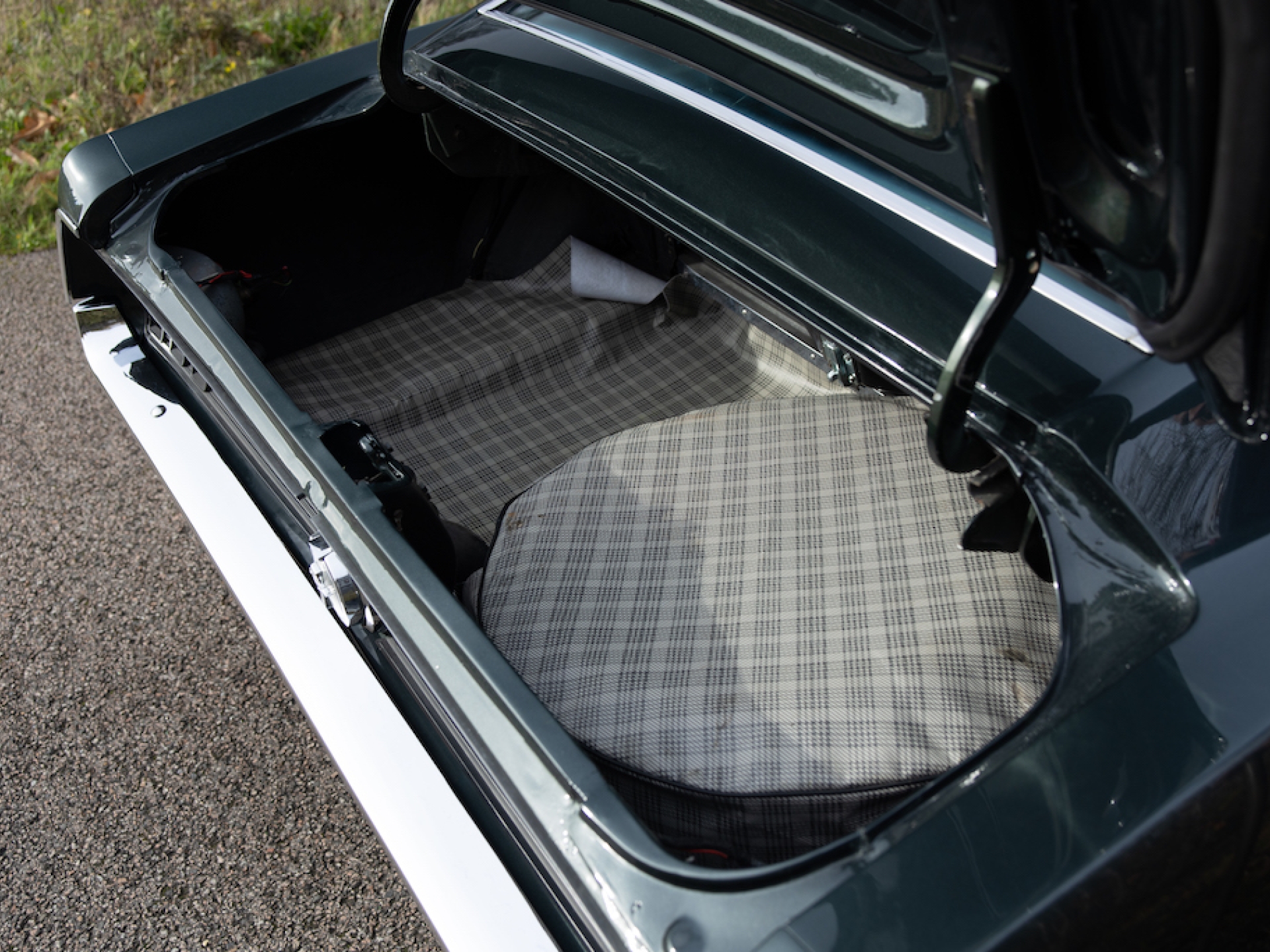 A fresh 351ci (5,754cc) Ford Cleveland V8 engine was installed and with AOD (automatic overdrive) four speed auto gearbox, the 4th gear acting as an overdrive. This engine boasts roller rockers; a Crane camshaft; flat-top pistons; Edelbrock inlet manifold and carburettor, Flowmaster exhaust, Headman headers, billet pulleys and variable-setting ignition system. The car was also repainted the ‘Forest’ green.