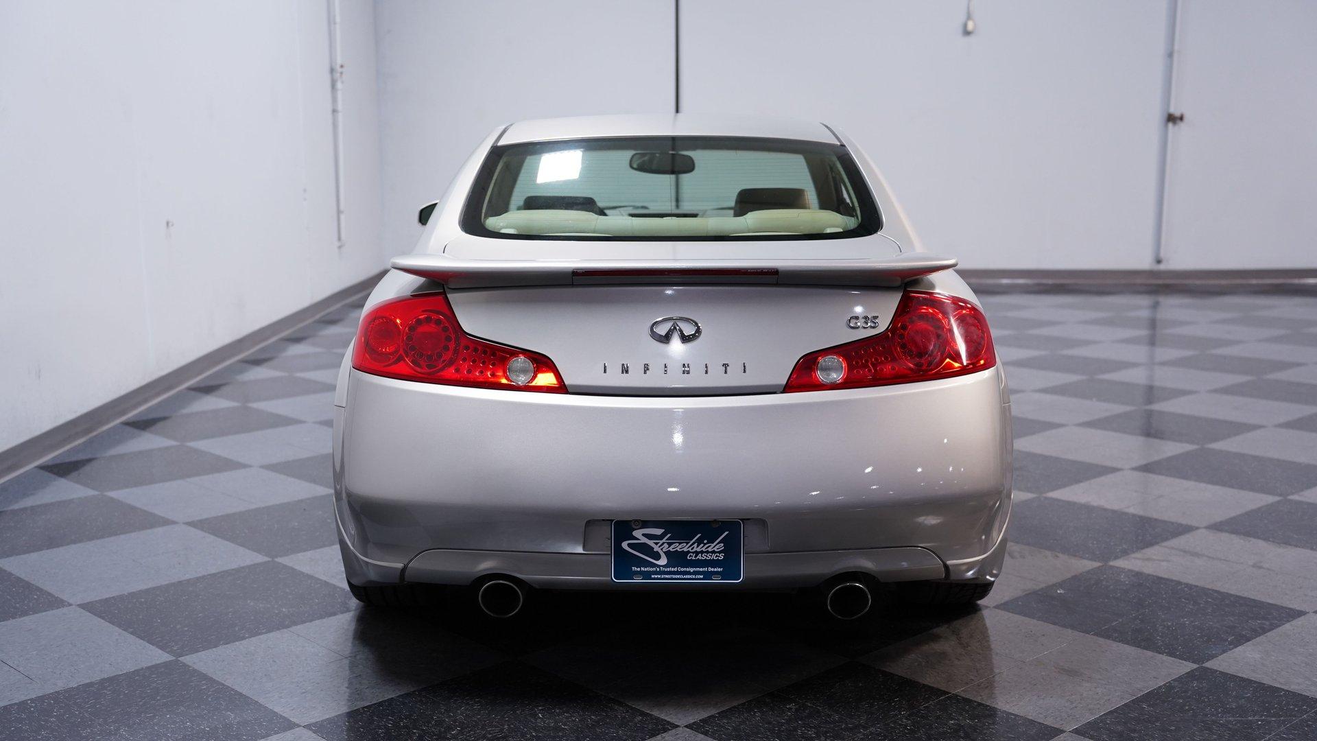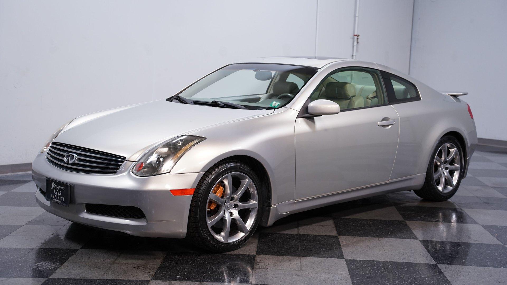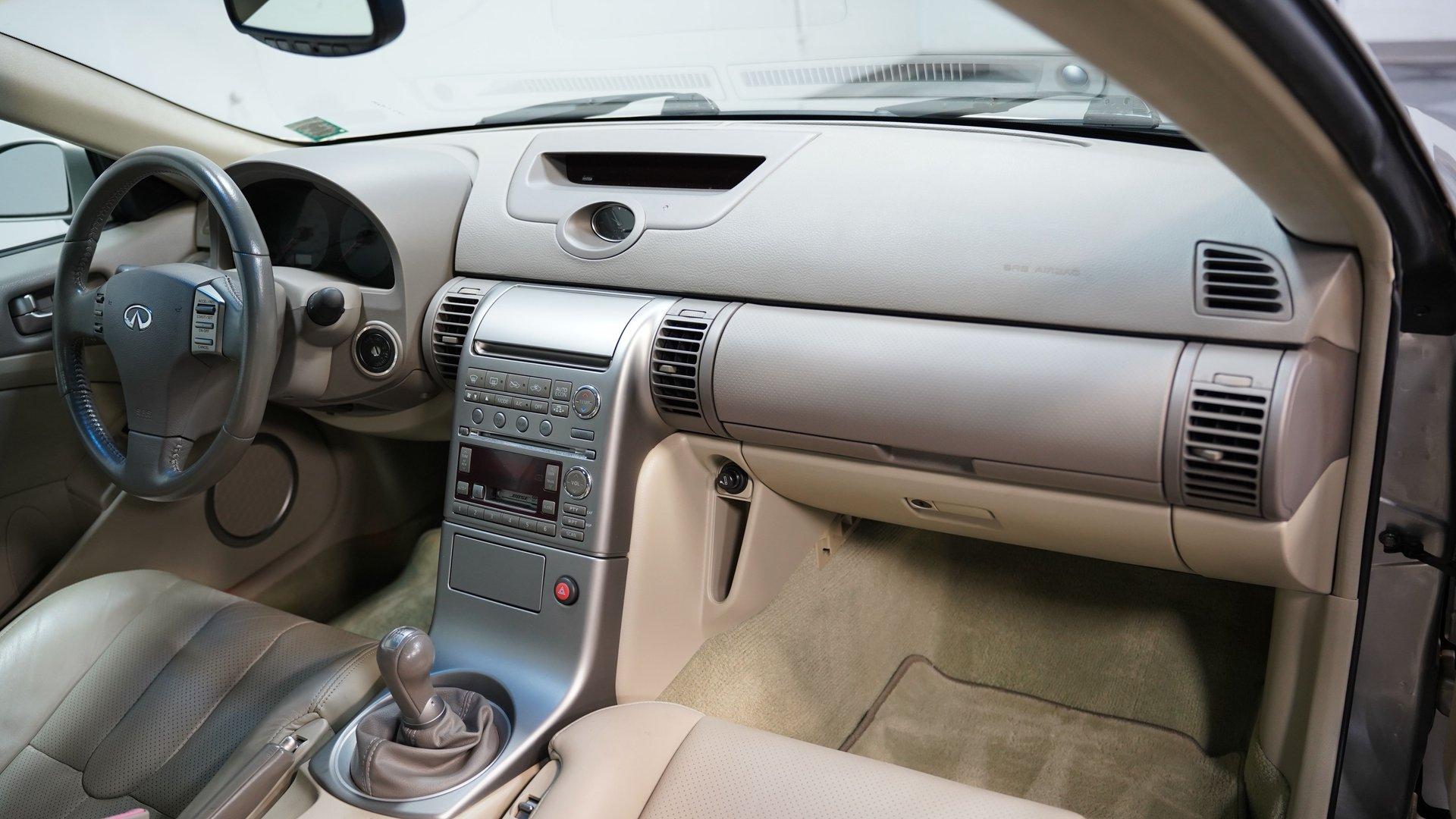 Sleek, fun, and sporty, this 2004 Infiniti G35 Coupe might be two decades old on paper, but with just 6,743 actual miles from its one and only owner, this sports coupe has aged like the automotive child of Keanu Reeves and Halle Berry. Decked out in its believed original Desert Platinum paint, it is about as pristine an example as you will ever find of Infiniti's first-generation G-Series. Inside, we find an almost-new-looking Frost/Desert Platinum leather interior. A center console separates a pair of plush, power, and heated bucket seats, while a three-spoke, power-assisted wheel sits just ahead of an orange-hued analog gauge cluster featuring a 160 mph speedometer and 8,000 rpm tachometer. Power windows, locks, mirrors, and sunroof, along with a telescopic wheel, air conditioning, cruise control, and an AM/FM/CD/Cassette stereo system, offer all the modern amenities anyone could want from a turn-of-the-century luxury sports car. Under the hood, we find a naturally aspirated 3.5-liter DOHC V-6 engine. This VQ35 comes with a lightweight aluminum block and heads foundation that, from the factory, made an impressive 280 horsepower and 270 pound-feet of torque. That power is routed through a tried-and-true six-speed manual transmission before being sent out to the factory rear end. 18-inch wheels shod in Falken rubber stand ready to put those ponies to the pavement whenever you are. HIGHLIGHTS: 6,743 Actual Miles Yes 6,743 Actual Miles One Owner Believed Original Desert Platinum Paint Believed Original Body Panels 3.5 Liter DOHC VQ V6 Aluminum Block and Heads Six Speed Manual Factory Rear End 18 Inch Wheels Brembo Power Disc Brakes Independent Suspension Power Steering Leather Interior Power Sunroof Power Locks Power Windows Power Mirrors Power Seats Heated Seats AM/FM/CD/Cassette Two Keys Valet Key Original Window Sticker Owner's Manual This 2004 Infiniti G35 Coupe rides on a fully-independent suspension, while power Brembo brakes sit at all four corners to scrub off speed whenever necessary. This ultra-low-mileage, one-owner car comes with two keys, a valet key, its owner's manual, and its original window sticker. So, if you missed out the first time around, this twenty-one-year-old car has barely been broken in to the point where you'll think you're stuck in the Matrix. Thankfully, this car exists in the real world, but it won't be here long so don't wait, call today!
