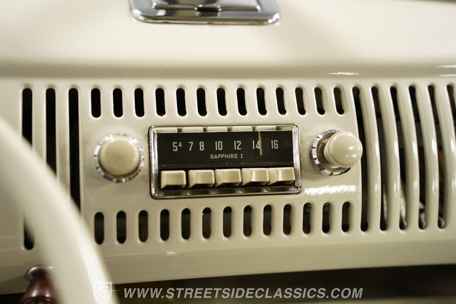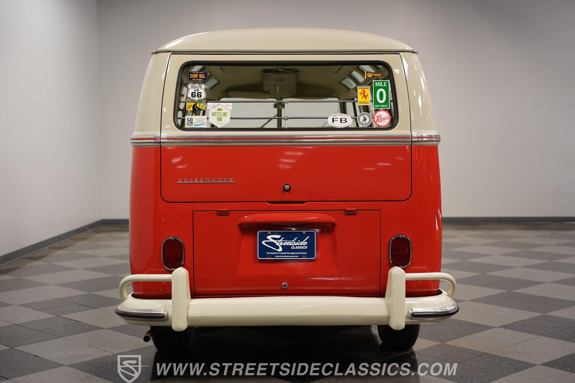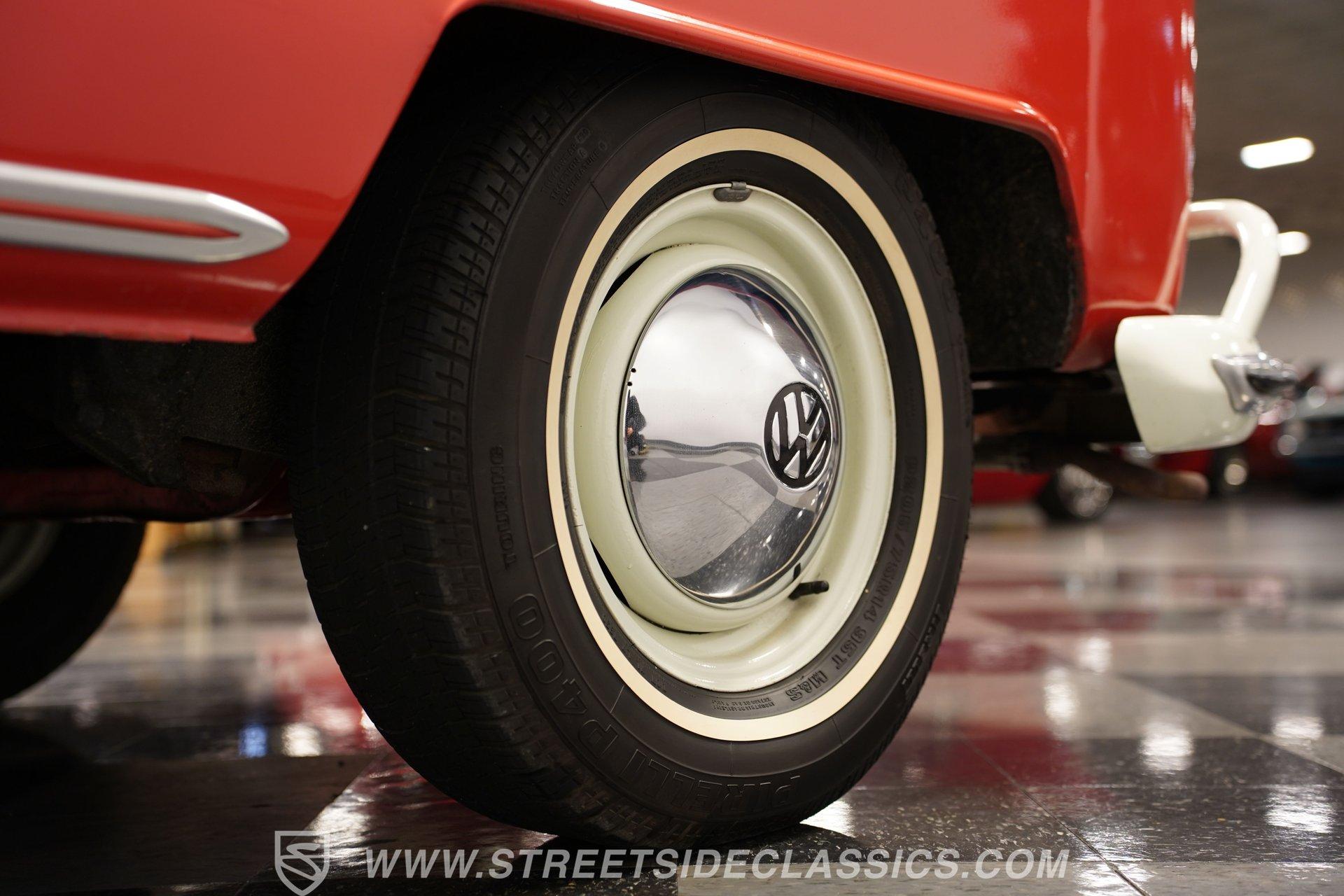 As a bona fide automotive symbol for an entire counterculture, this 1964 Volkswagen Type 2 21-Window Deluxe is about as iconic a ride as can be, and its distinctive configuration makes it even more so. The combination of its factory-correct, two-tone paint job and the open-air feeling conveyed by its multitude of windows gives you the impression that it was teleported into the present from its original era while transporting a group of sightseers across exotic territory. It's a very nice, fresh-looking presentation of a beloved classic, with well-aligned body panel gaps, doors that open and shut just as smoothly as they did when it first debuted more than 60 years ago, and brightwork that's been restored to top form. Climb inside, and you'll be greeted by an interior that has been treated to the same level of care, with vinyl-clad bench seating that shows only slight wear, including the rear row, which may still be wearing its original cover. Take a look around and you'll see well-fitted door panels and rubber matting that's in great shape. Up front, the instrument panel houses a VDO gauge that displays its readings through a clear lens, and to the right of it, you'll find a period-correct AM radio that stands ready to be called upon to provide an era-appropriate audio experience. You'd have to search high and low for quite some time to find a VW bus that drives as nicely as this one does. A glance at the engine compartment offers the first clue that it has also received plenty of attentive care, where you'll find its air-cooled 1500-cc powerplant sitting in the center of a nicely maintained bay. Fed by a factory-correct single-barrel carburetor, it really runs great, starting up promptly via a manual choke and idling smoothly. The accompanying 4-speed manual transmission shifts through the gears with no issues at all, and the clutch action is surprisingly smooth. When you're out on the road, this classic tracks arrow-straight, and the manual steering is more precise than you'd rightfully expect from a VW of its era. HIGHLIGHTS: PERIOD-CORRECT 1500-CC ENGINE WITH UPGRADED HEADS 1-BARREL CARBURETOR 4-SPEED MANUAL TRANSMISSION DRUM BRAKES 14" FACTORY-STYLE WHEELS FACTORY-CORRECT SEALING WAX RED AND BEIGE PAINT SUNROOF FACTORY-CORRECT SILVER BEIGE VINYL INTERIOR BENCH SEATING AM RADIO RESTORATION RECEIPTS AND PHOTOS INCLUDED Displaying all the earmarks of a very high-level restoration that has left it with outstanding curb appeal and excellent drivability, this 1964 Volkswagen Type 2 21-Window Deluxe cruises on a set of factory-correct 14" wheels wrapped with Pirelli tires still showing plenty of tread. It's perfectly positioned to provide plenty of future, fun-filled miles for its next lucky owner. Call today!
