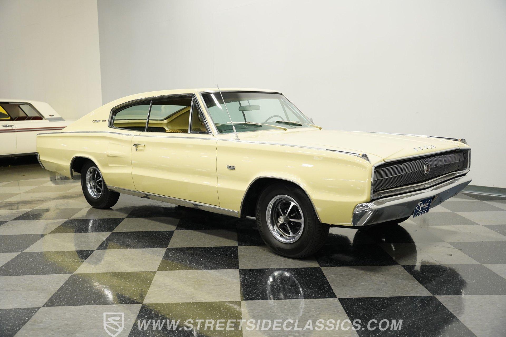 Step back into the golden era of American muscle with this 1967 Dodge Charger, a car that embodies the spirit of freedom and raw power. More than just a vehicle, it represents a statement of style and performance that has captivated enthusiasts for decades. Its classic silhouette and iconic presence on the road make it a timeless piece of automotive history. The creamy Dodge Cream exterior, refreshed with a quality repaint, invites you to imagine the open road and the memories yet to be made behind the wheel of this legendary 383 V8-powered machine. Inside, the Charger welcomes you with original premium-class factory low back bucket seats and a center console shifter, preserving the authentic driving experience. The vinyl interior is clean and shows minimal wear, enhanced by older auxiliary gauges that add a touch of vintage charm. This cabin is designed for comfort and control, keeping the driver connected to the car's powerful heritage while enjoying a straightforward and classic layout. Under the hood, the heart of this Charger is its original 383 cubic inch V8 engine paired with a smooth-shifting 3-speed automatic transmission. The drivetrain maintains its original character, delivering a driving experience that's both powerful and engaging. The suspension and frame are in good condition, supporting a ride that's true to its muscle car roots. With factory-style front disc brakes and power steering, this Charger offers confidence and control, making every drive a thrilling journey through Mopar history. Highlights 1967 Dodge Charger Model Original 383 V8 Engine 3 Speed Automatic Transmission Factory Low Back Bucket Seats Center Console Shifter Vinyl Interior With Aux Gauges Full Repaint In Dodge Cream Power Steering Front Power Disc Brakes Rear Power Drum Brakes Factory Style Suspension 14" Factory Style Wheels P215/75R14 Tires Original Warranty Card Included Financing Available Vehicle Protection Plans Available Worldwide Shipping This 1967 Dodge Charger is a remarkable opportunity to own a piece of muscle car legacy that's ready to hit the road. Its combination of original features, strong mechanicals, and classic styling make it a standout choice for collectors and enthusiasts alike. Don't miss your chance to bring home this iconic American muscle car. Call, email, or come visit our showroom today!