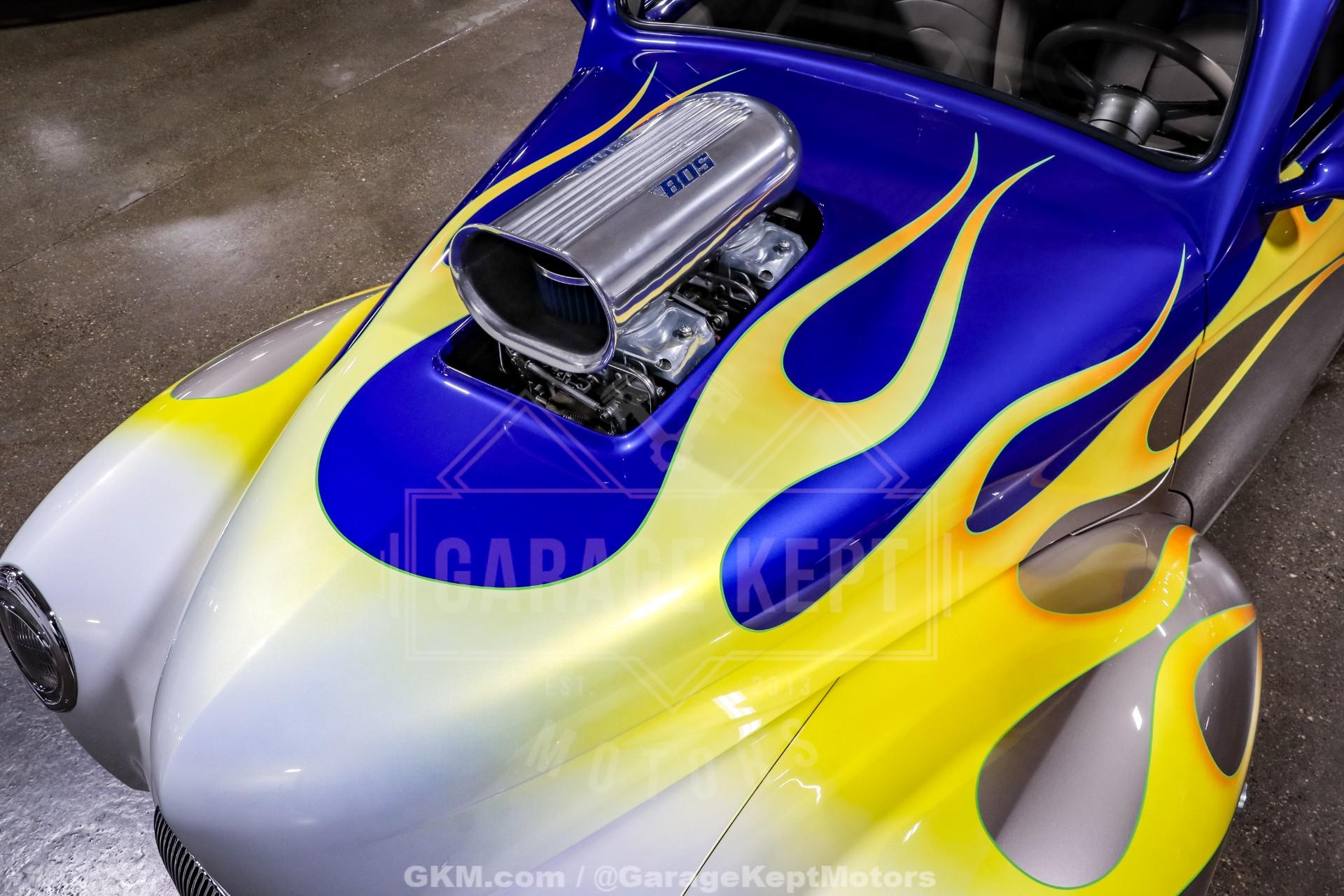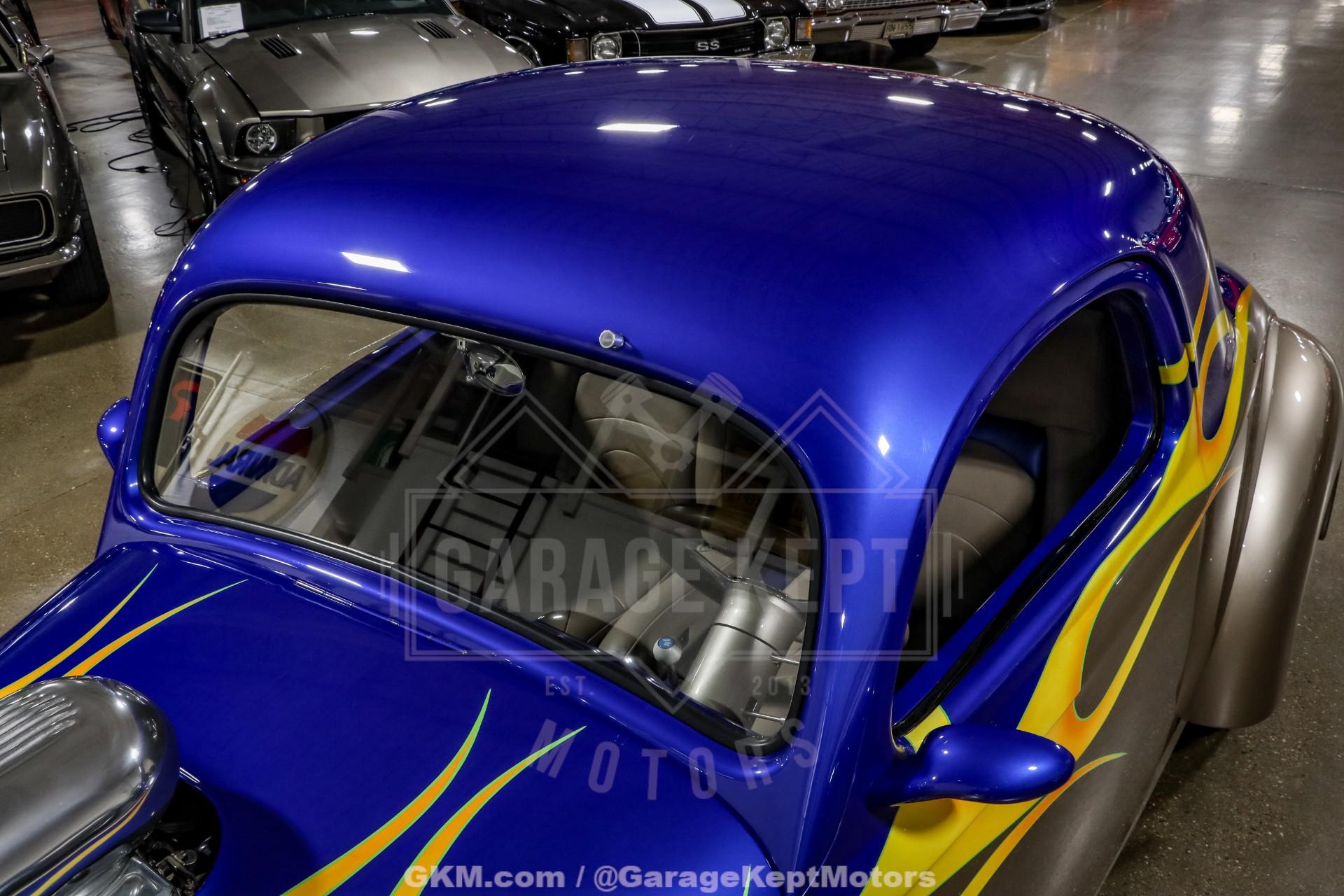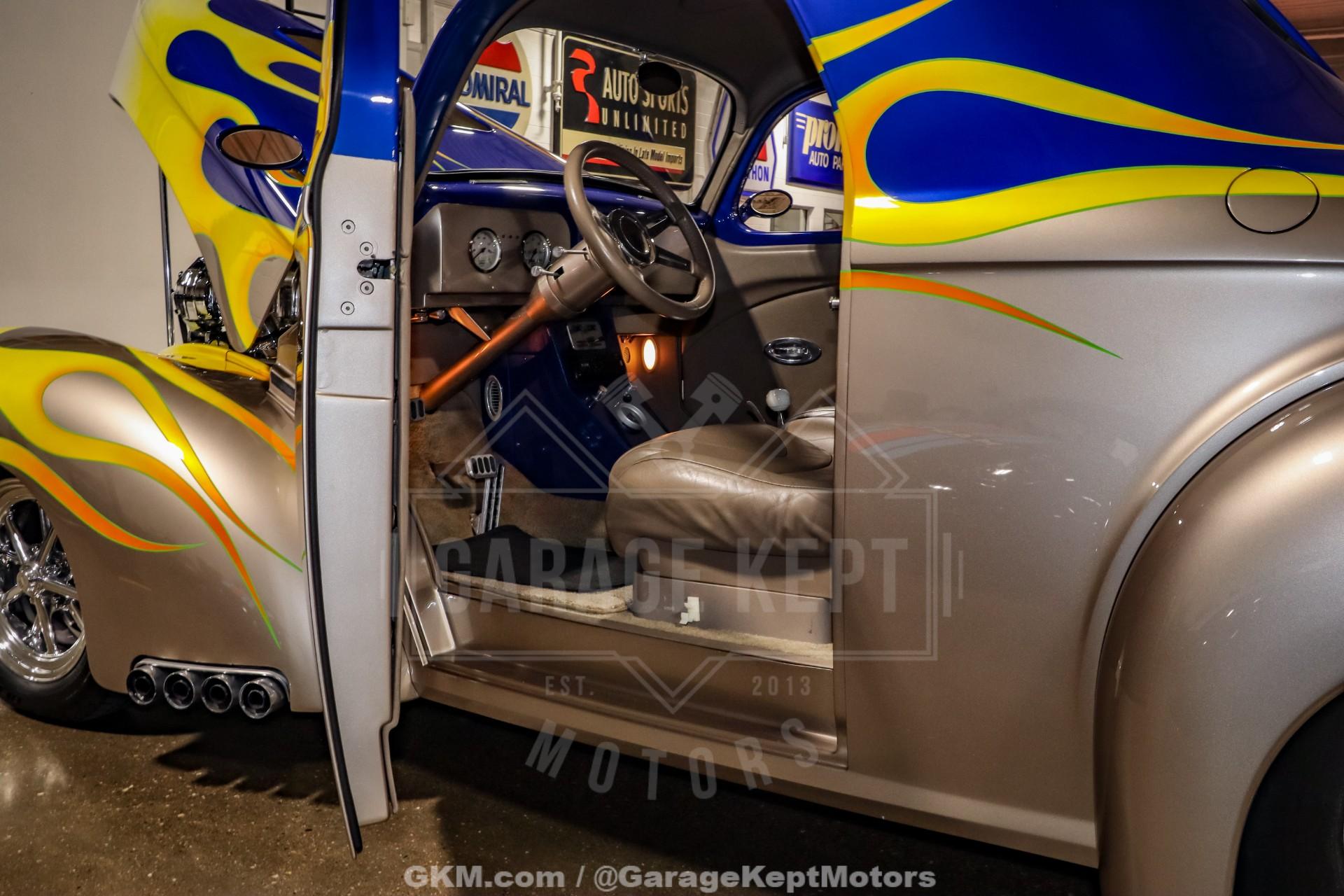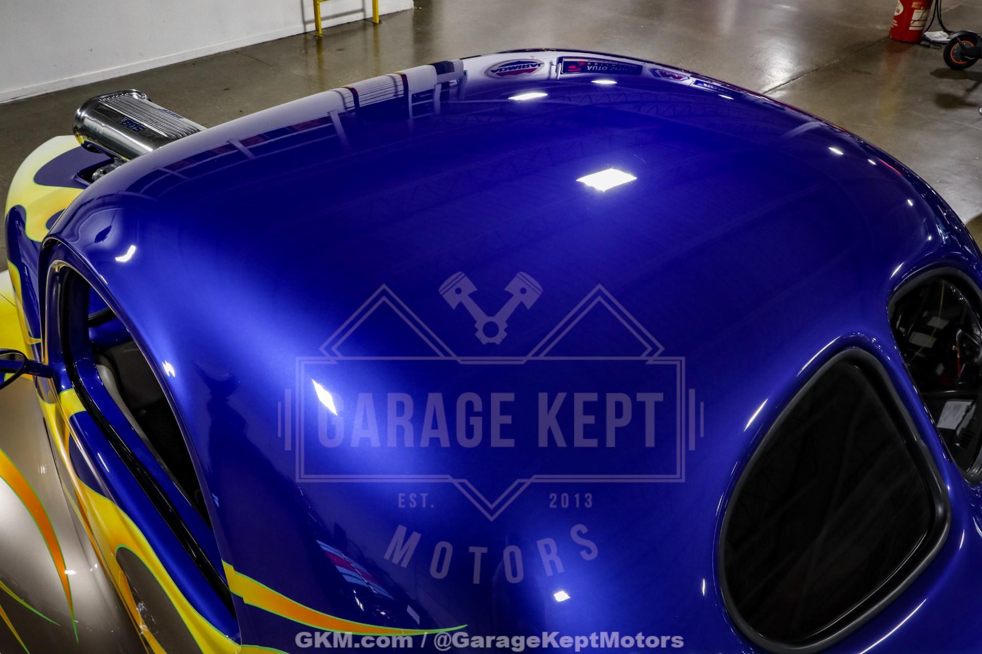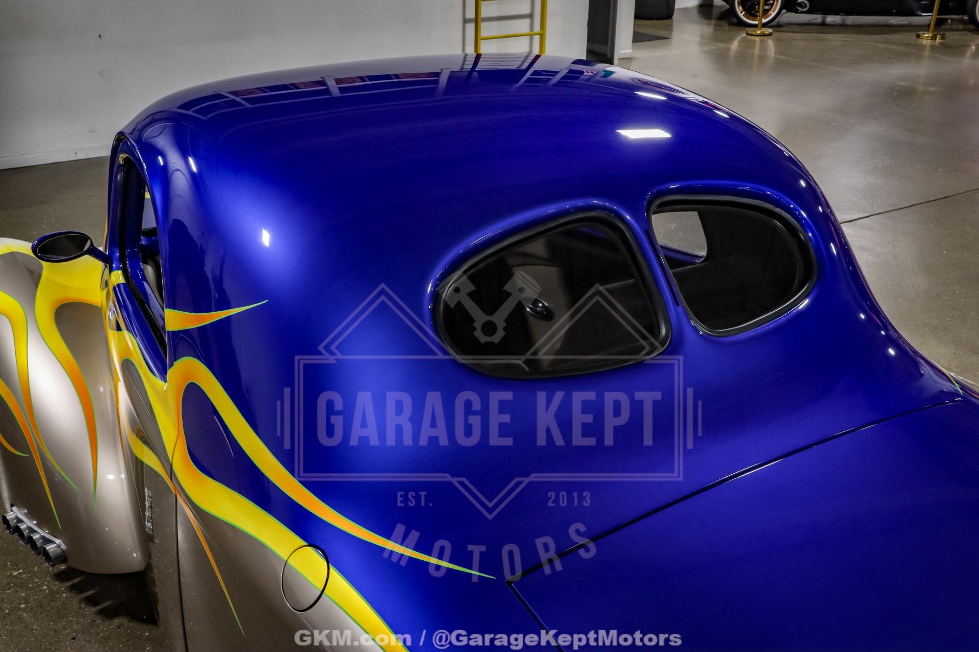1941 Willys Coupe Street Rod- 540ci Supercharged Merlin V8- BDS 8-71 Supercharged- TH400 Three Speed Automatic Transmission- 9" Rear End- 4 Wheel Disc Brakes- Coilover Suspension- Vintage AC- Two Tone Blue and Silver With Yellow Flames- Tan InteriorThis 1941 Willys Coupe Street Rod is a head-turning, full-blown hot rod built for those who love vintage style with modern muscle and it doesn't disappoint. Under its sleek fiberglass Willys-style body sits a massive 540 ci Merlin V8, supercharged with a BDS 8-71 blower feeding dual Demon four-barrel carbs, sending immense torque through a TH400 three-speed automatic and a sturdy 9" rear end. The result: raw, honest power wrapped in classic '40s hot-rod attitude.The exterior dazzles in a striking two-tone blue and silver finish, complete with yellow flame accents a nod to traditional gasser and street-rod roots. The body sits on a boxed and reinforced custom frame, with shaved handles, dual side mirrors, and front-fender exhaust outlets that highlight both craftsmanship and performance intent. Underneath, adjustable coil-over suspension and four-wheel disc brakes give the car real drivability and stopping power far beyond what the original Willys could have offered.Step inside and you're greeted with a tan-upholstered interior featuring comfortable bucket seats, a tilt steering column, Vintage Air conditioning, power windows, and full AutoMeter instrumentation including boost, oil pressure, and temperature gauges. The trunk even carries a finished interior and subtle Willys badging, showing that this build spares no detail, blending function and show quality.Titled as a 1941 Willys, this street rod stands not only as a powerful cruiser but as a showcase piece of craftsmanship and hot-rod heritage. If you've been dreaming of a classic coupe with modern performance one that roars to life with raw power yet turns heads with retro flair this Willys Coupe Street Rod is a rare opportunity to own something truly special.