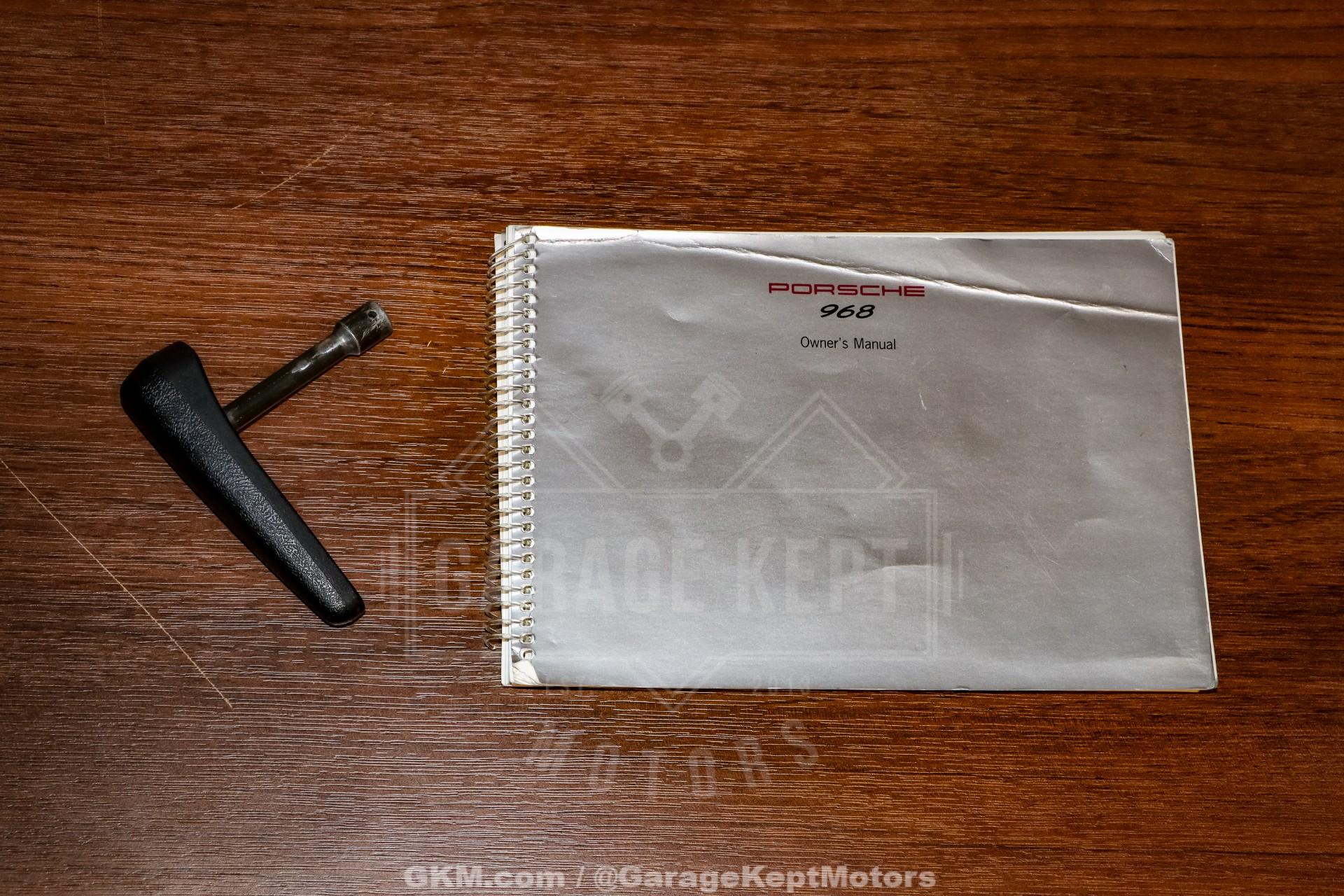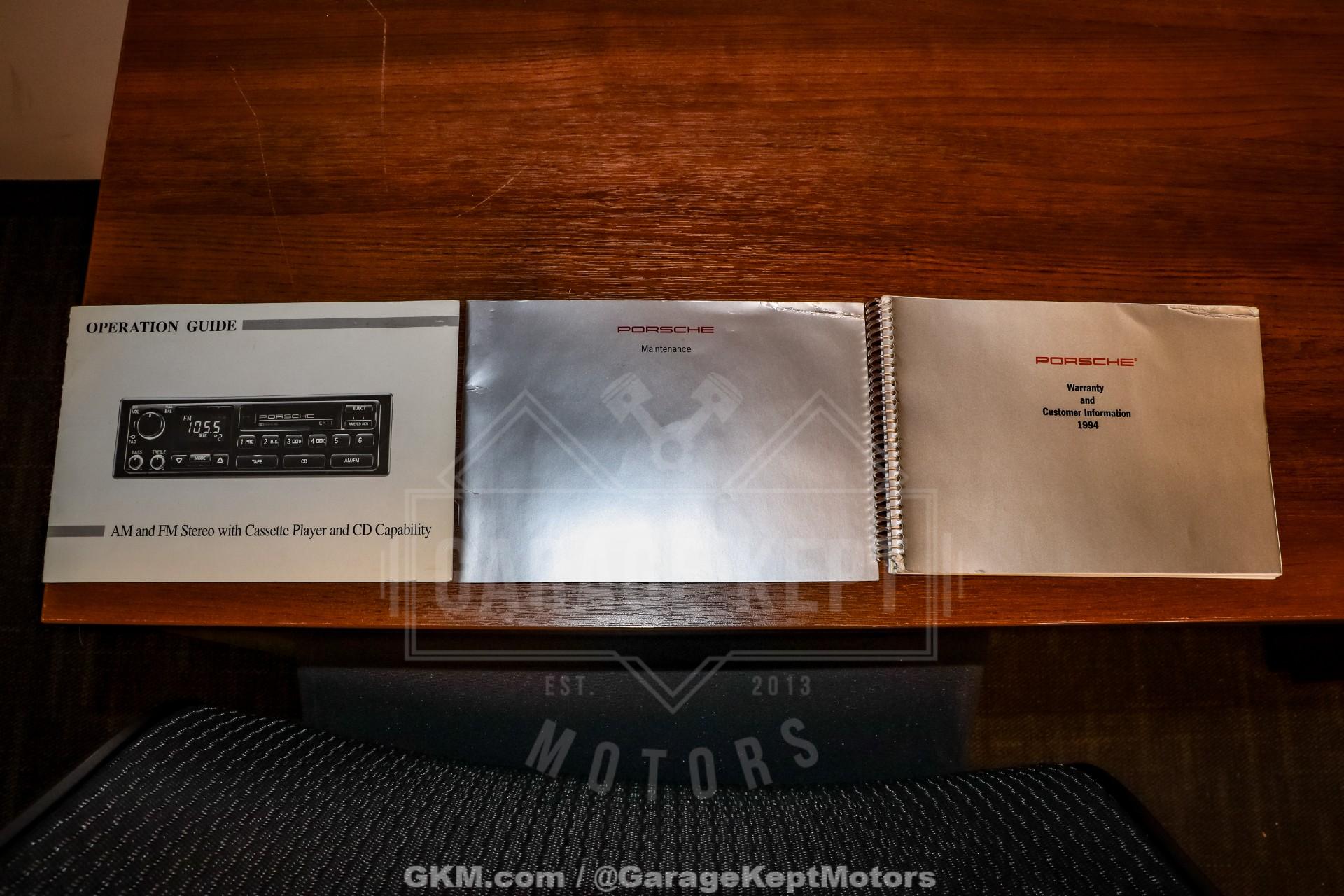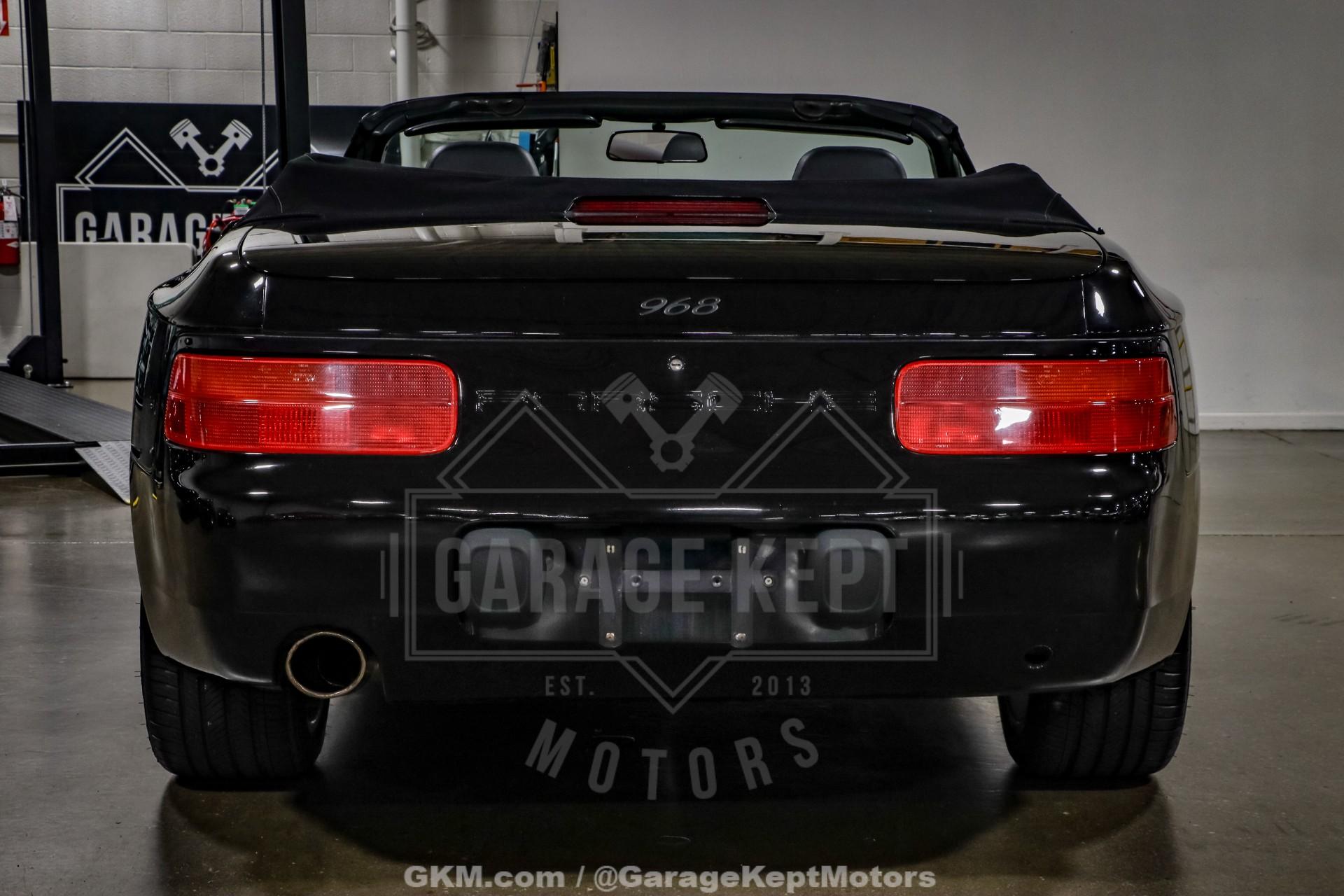 1994 Porsche 9682-Door Cabriolet- Owned by two friends since new- Triple Black (black ext, black int, black soft top)- 3.0L Inline 4 Cylinder- 6 Speed Manual Transmission- Power Windows and Convertible Top- Functioning Air Conditioning- Upgraded Exhaust and Stereo- Recent Service: new belts, oil change, new tires- Owners Manual and Soft Top Tool- 53k Original MilesThe 1994 Porsche 968 Cabriolet represents one of the last and most refined evolutions of Porsche's front-engine, transaxle sports cars, and this particular example stands out for its exceptional ownership history and presentation. Owned by two friends since new, it has been carefully maintained, sparingly driven, and thoughtfully preserved over the past three decades. With only 53,000 original miles, it reflects the kind of long-term stewardship that is increasingly difficult to find in classic convertibles of this era.Finished in striking triple black, black exterior paint, black interior, and black soft top, the car exudes a timeless, understated elegance. The 968's clean design, accented by its sculpted bodywork and integrated bumpers, remains modern and distinctive. As a Cabriolet, it delivers an engaging open-air driving experience, enhanced by the convenience of power windows and a power-operated convertible top that functions as smoothly as intended.Power comes from Porsche;s advanced 3.0-liter inline four-cylinder engine, one of the largest four-cylinder engines ever fitted to a production sports car. Paired with a 6-speed manual transmission, it provides a crisp, responsive driving feel and excellent balance thanks to the transaxle layout. The combination offers lively performance and exceptional handlingtraits that made the 968 a standout among its contemporaries and a favorite among driving purists.Inside, the cabin maintains its factory-correct appearance, with the black interior presenting well and complementing the car's monochromatic theme. Comfort is bolstered by functioning air conditioning, a feature not always present or operational on older convertibles. Subtle enhancements such as an upgraded stereo system improve everyday usability, while an upgraded exhaust adds a bit of character to the driving experience without detracting from the car's originality.Recent maintenance further underscores the car's readiness for continued enjoyment. Service items include new belts, a fresh oil change, and brand-new tires, ensuring reliable performance for its next owner. With its desirable color combination, documented ownership history, low mileage, and proper mechanical care, this 1994 Porsche 968 Cabriolet represents a rare opportunity to own a well-preserved example of one of Porsche's most compelling modern classics.