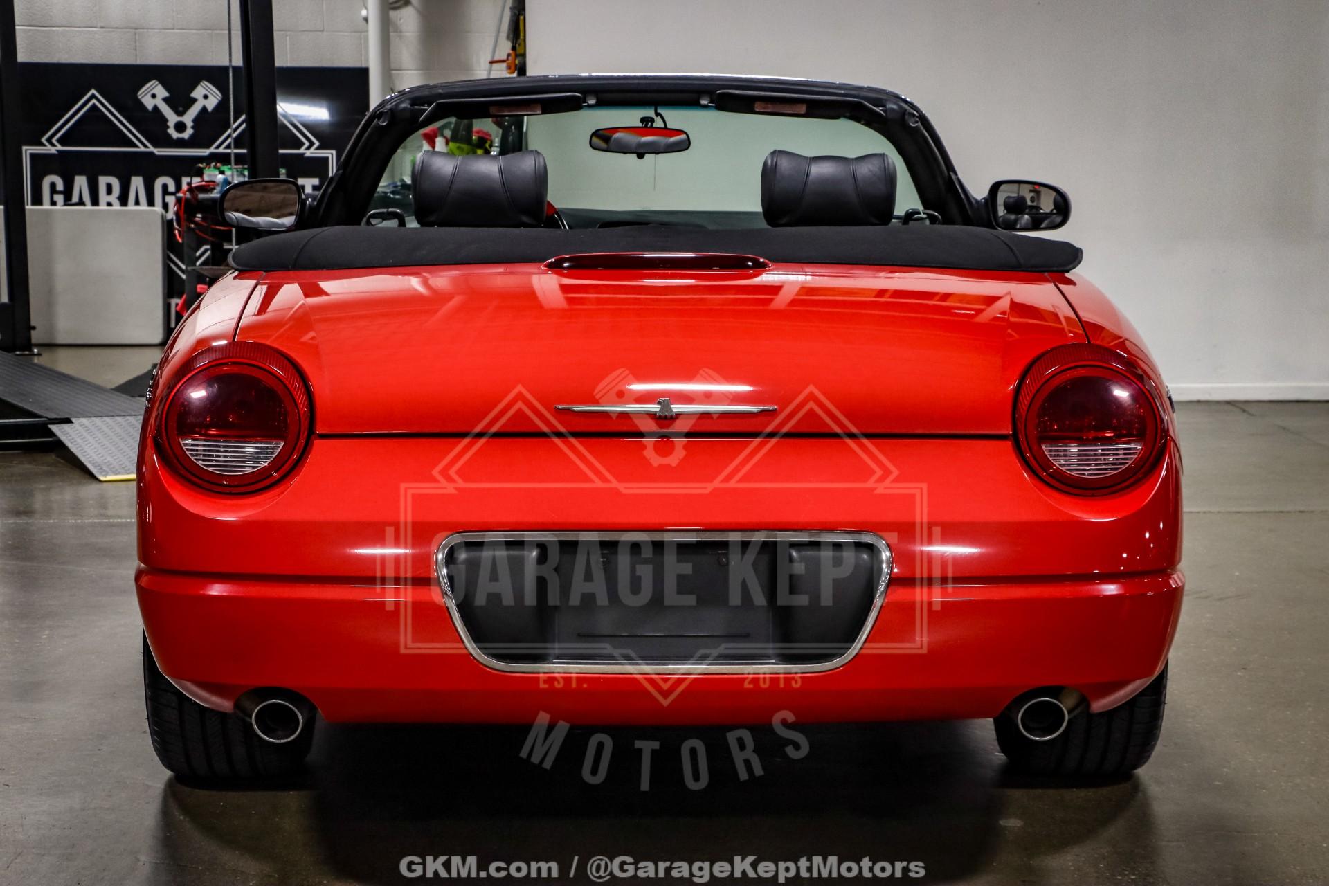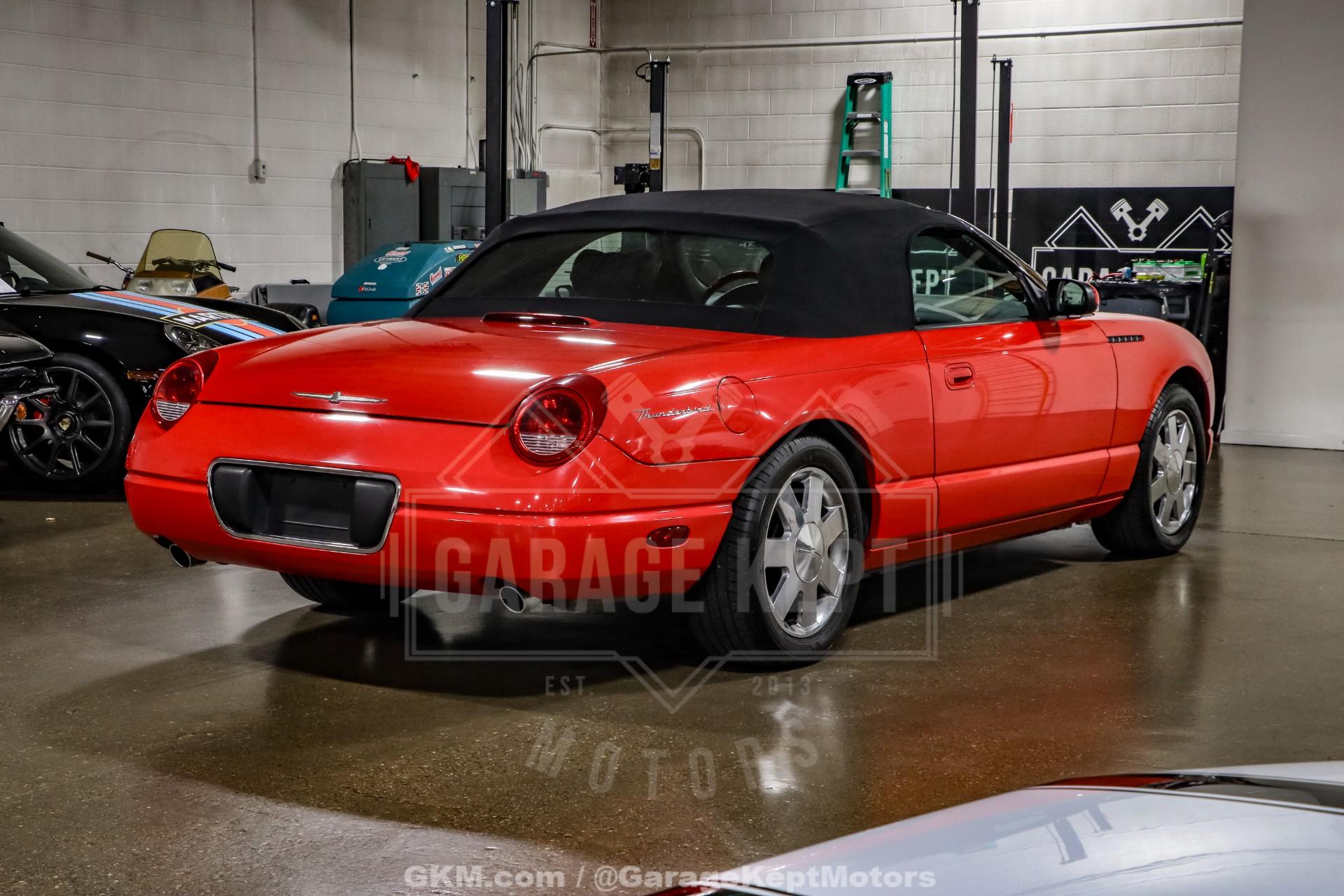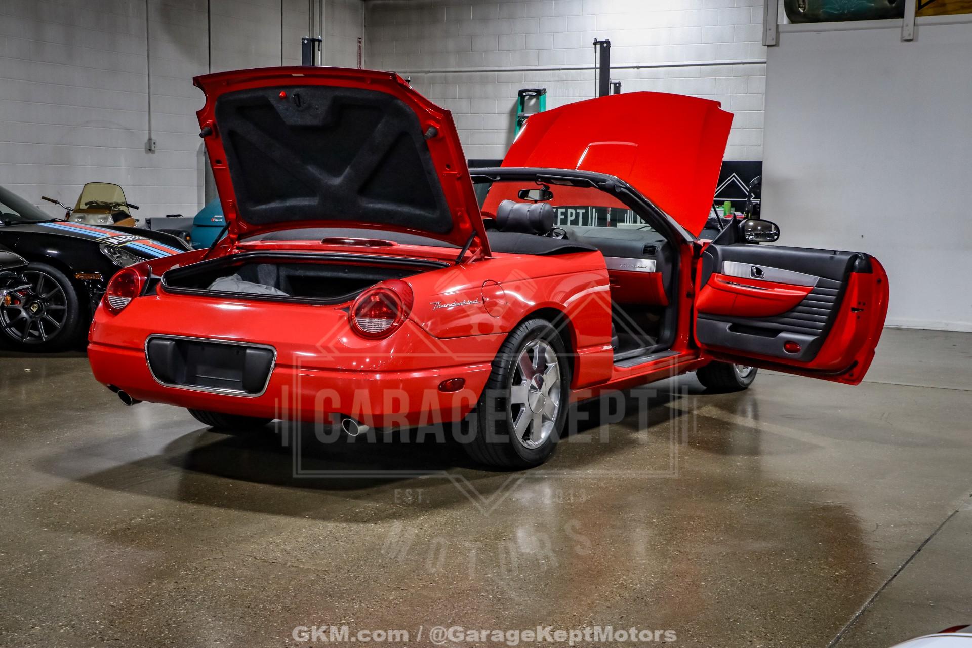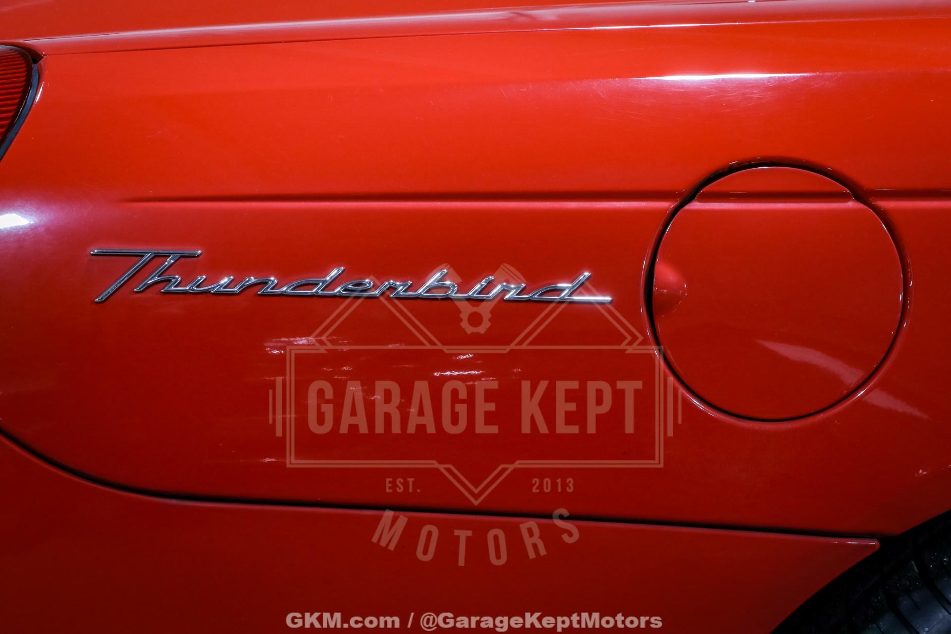 2002 Ford Thunderbird- Only 57,119 Miles- 3.9L V8- Automatic Transmission- Red Exterior- Black InteriorStep into a piece of automotive history with this stunning 2002 Ford Thunderbird Deluxe, now available at Garage Kept Motors. This classic roadster is a perfect blend of retro charm and modern performance, offering a unique driving experience that is sure to turn heads wherever you go. With only 57,119 miles on the odometer, this one-owner vehicle has been meticulously maintained, ensuring it remains in excellent condition for its next proud owner.The 2002 Ford Thunderbird Deluxe is a true icon of American automotive design, and this particular model is finished in a striking Torch Red Clearcoat. This vibrant paint color not only highlights the car's sleek lines and elegant curves but also pays homage to the original Thunderbirds of the 1950s. The exterior is further complemented by chrome accents and distinctive Thunderbird badging, making it a standout on any road.Step inside to discover a luxurious interior finished in Midnight Black. The cabin is designed to provide both comfort and style, featuring premium materials and thoughtful details throughout. The leather-trimmed seats offer excellent support, while the driver-oriented cockpit ensures that all controls are within easy reach. The interior's timeless design is a perfect match for the car's classic exterior, creating a cohesive and inviting atmosphere.Under the hood, this Thunderbird is powered by a robust 3.9L V8 engine, delivering an impressive 252 horsepower and 267 lb-ft of torque. This powertrain provides smooth and responsive performance, whether you're cruising down the highway or navigating city streets. The rear-wheel-drive configuration enhances the car's sporty handling, while the 5-speed automatic transmission ensures seamless gear changes. This 2002 Ford Thunderbird Deluxe is a rare find, being a one-owner vehicle that has been lovingly cared for over the years. Its low mileage and excellent condition make it a standout choice for collectors and enthusiasts alike. The Thunderbird's unique combination of retro styling, modern amenities, and powerful performance make it a special addition to any garage.The 2002 Ford Thunderbird Deluxe is more than just a car; it's a statement of style and a celebration of American automotive heritage. At Garage Kept Motors, we are proud to offer this exceptional vehicle to discerning buyers who appreciate the finer things in life. Don't miss your chance to own a piece of historycontact us today to schedule a test drive and experience the timeless allure of the Ford Thunderbird for yourself.