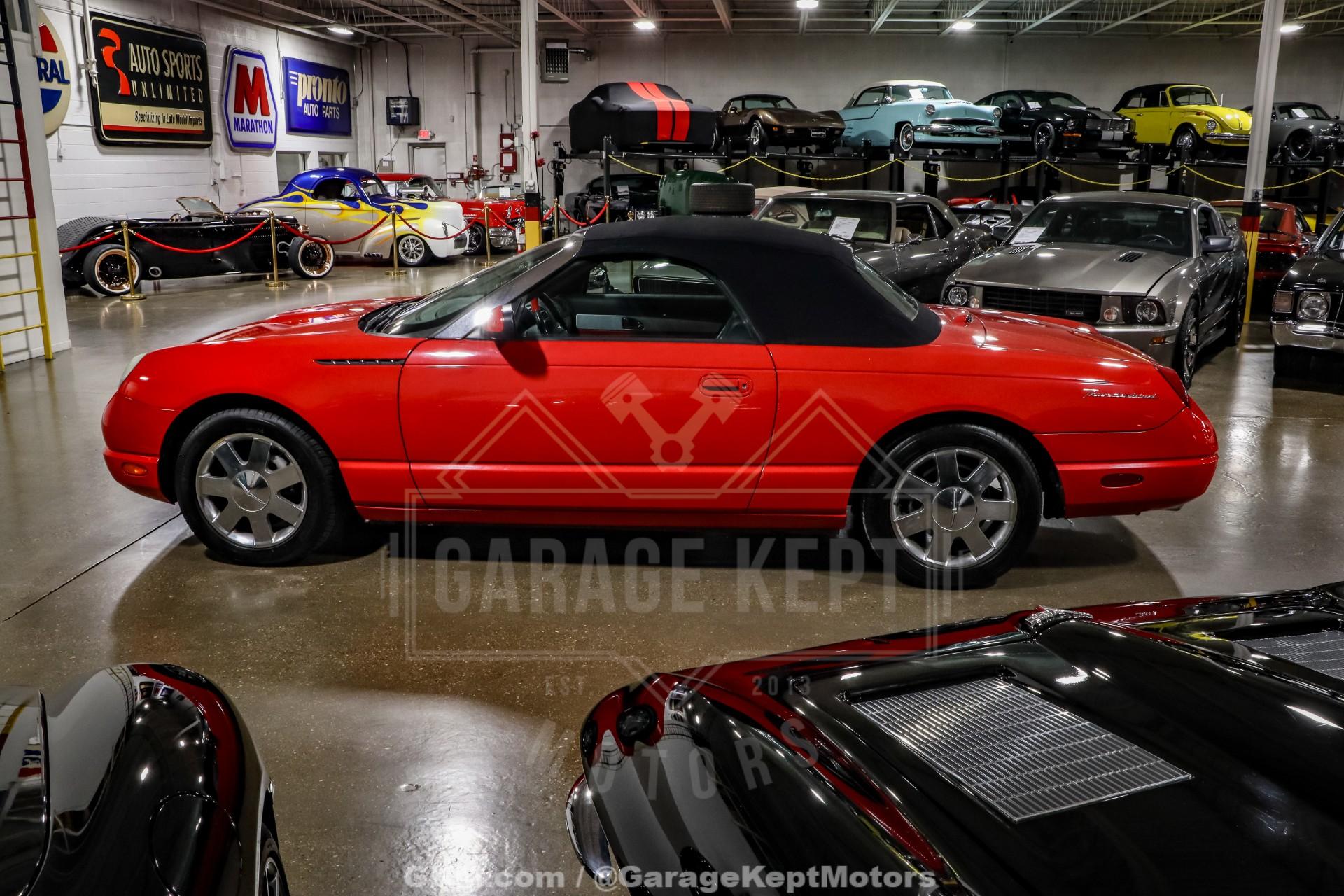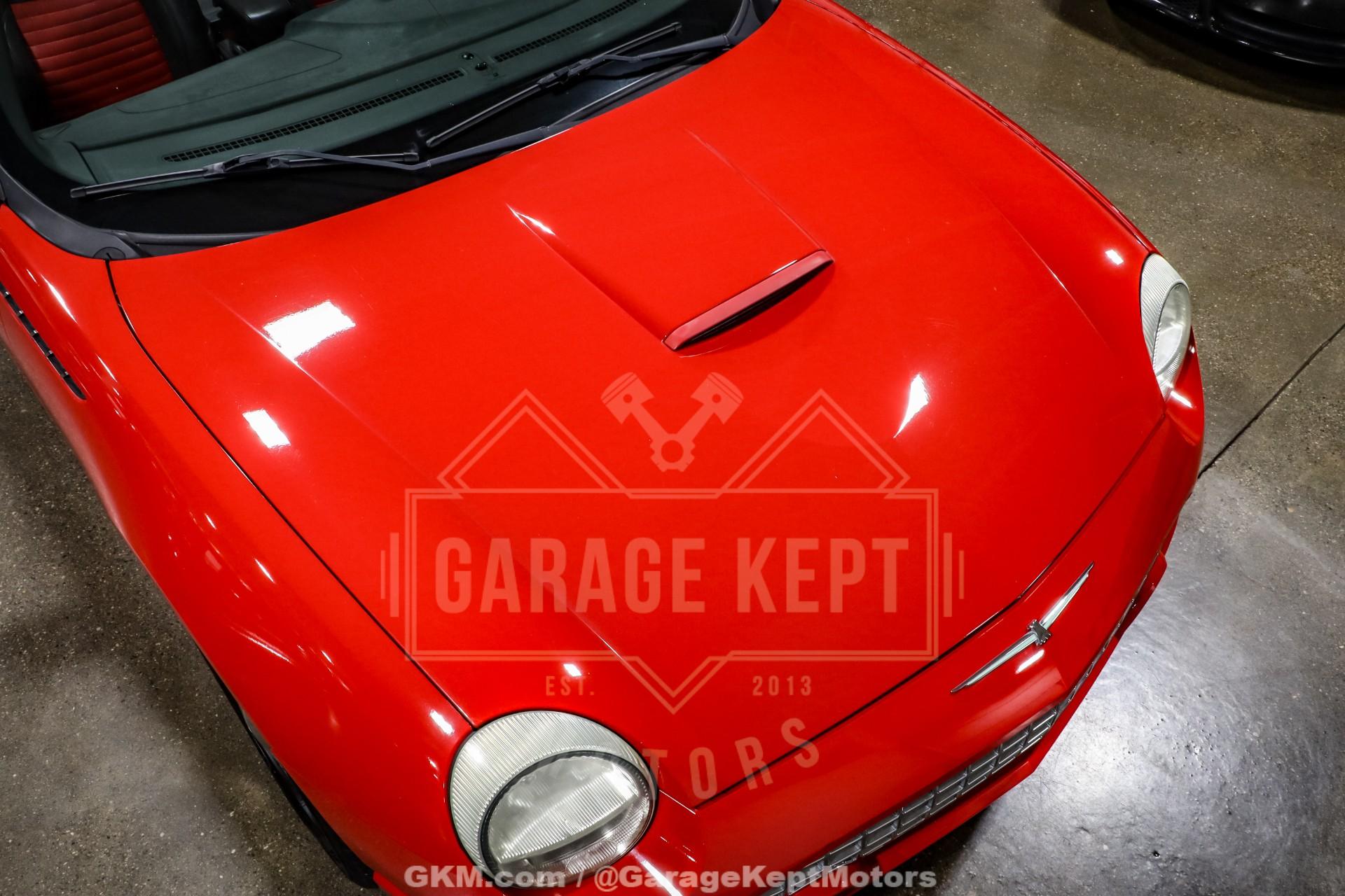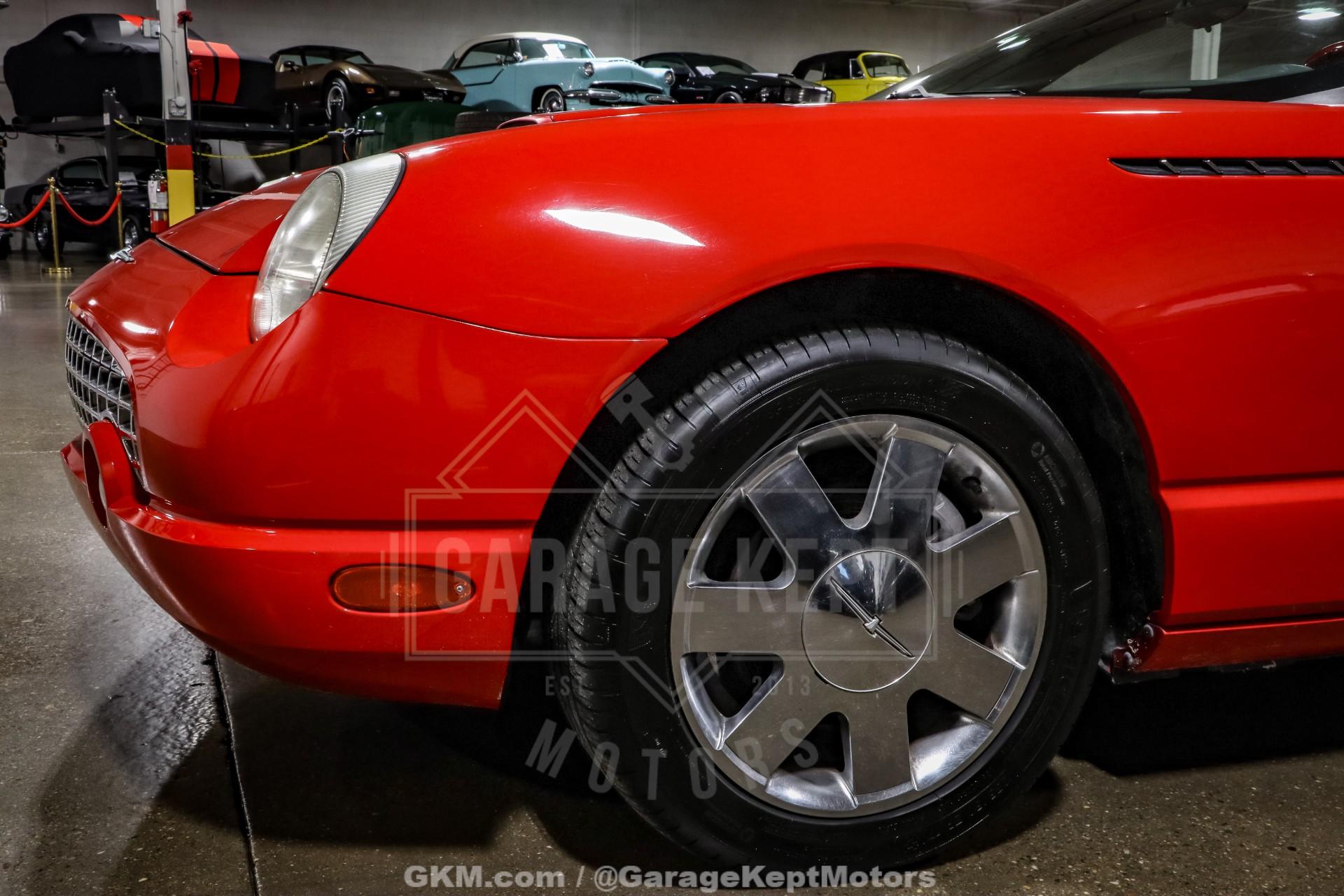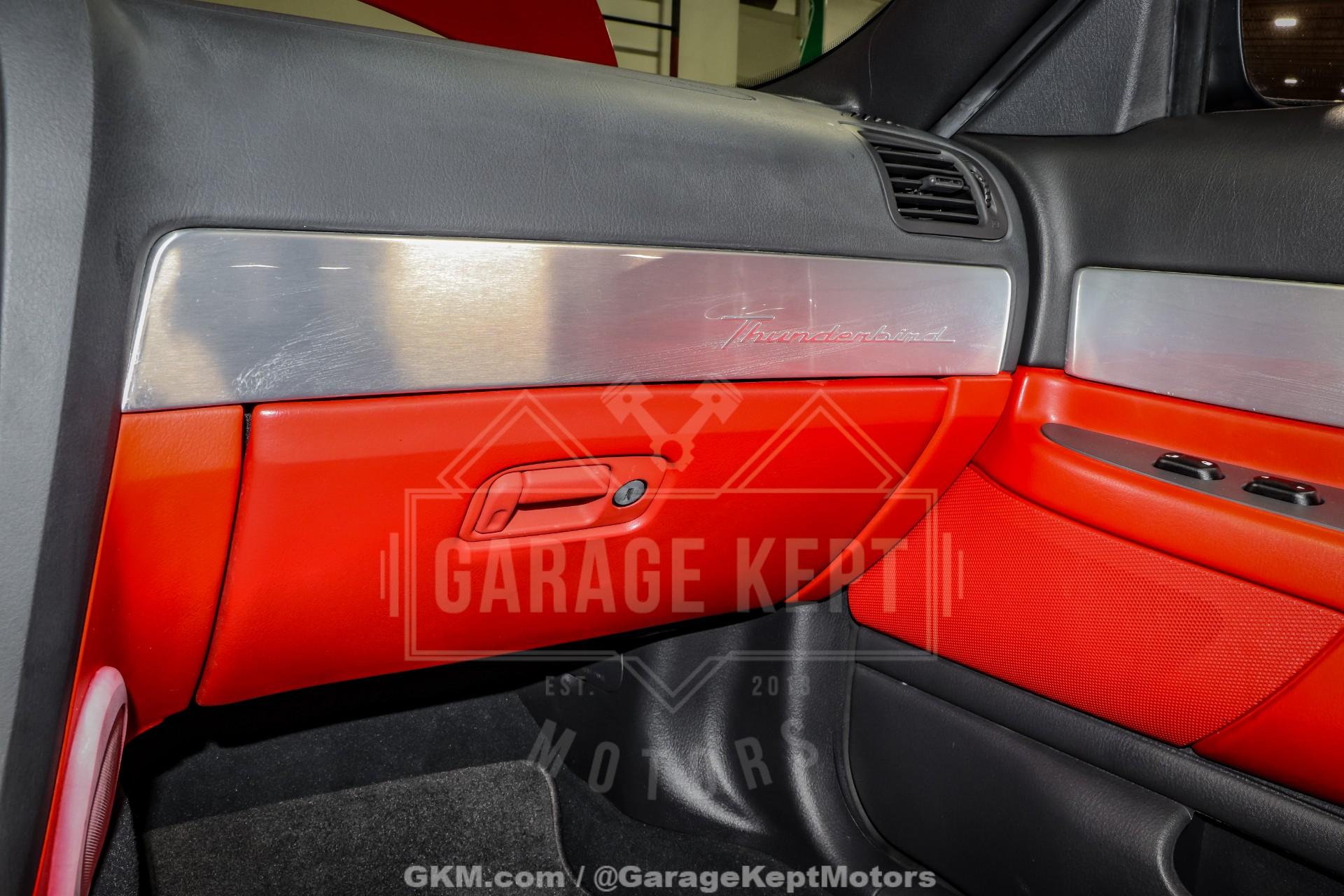 2002 Ford Thunderbird- Only 57,119 Miles- 3.9L V8- Automatic Transmission- Red Exterior- Black InteriorStep into a piece of automotive history with this stunning 2002 Ford Thunderbird Deluxe, now available at Garage Kept Motors. This classic roadster is a perfect blend of retro charm and modern performance, offering a unique driving experience that is sure to turn heads wherever you go. With only 57,119 miles on the odometer, this one-owner vehicle has been meticulously maintained, ensuring it remains in excellent condition for its next proud owner.The 2002 Ford Thunderbird Deluxe is a true icon of American automotive design, and this particular model is finished in a striking Torch Red Clearcoat. This vibrant paint color not only highlights the car's sleek lines and elegant curves but also pays homage to the original Thunderbirds of the 1950s. The exterior is further complemented by chrome accents and distinctive Thunderbird badging, making it a standout on any road.Step inside to discover a luxurious interior finished in Midnight Black. The cabin is designed to provide both comfort and style, featuring premium materials and thoughtful details throughout. The leather-trimmed seats offer excellent support, while the driver-oriented cockpit ensures that all controls are within easy reach. The interior's timeless design is a perfect match for the car's classic exterior, creating a cohesive and inviting atmosphere.Under the hood, this Thunderbird is powered by a robust 3.9L V8 engine, delivering an impressive 252 horsepower and 267 lb-ft of torque. This powertrain provides smooth and responsive performance, whether you're cruising down the highway or navigating city streets. The rear-wheel-drive configuration enhances the car's sporty handling, while the 5-speed automatic transmission ensures seamless gear changes. This 2002 Ford Thunderbird Deluxe is a rare find, being a one-owner vehicle that has been lovingly cared for over the years. Its low mileage and excellent condition make it a standout choice for collectors and enthusiasts alike. The Thunderbird's unique combination of retro styling, modern amenities, and powerful performance make it a special addition to any garage.The 2002 Ford Thunderbird Deluxe is more than just a car; it's a statement of style and a celebration of American automotive heritage. At Garage Kept Motors, we are proud to offer this exceptional vehicle to discerning buyers who appreciate the finer things in life. Don't miss your chance to own a piece of historycontact us today to schedule a test drive and experience the timeless allure of the Ford Thunderbird for yourself.