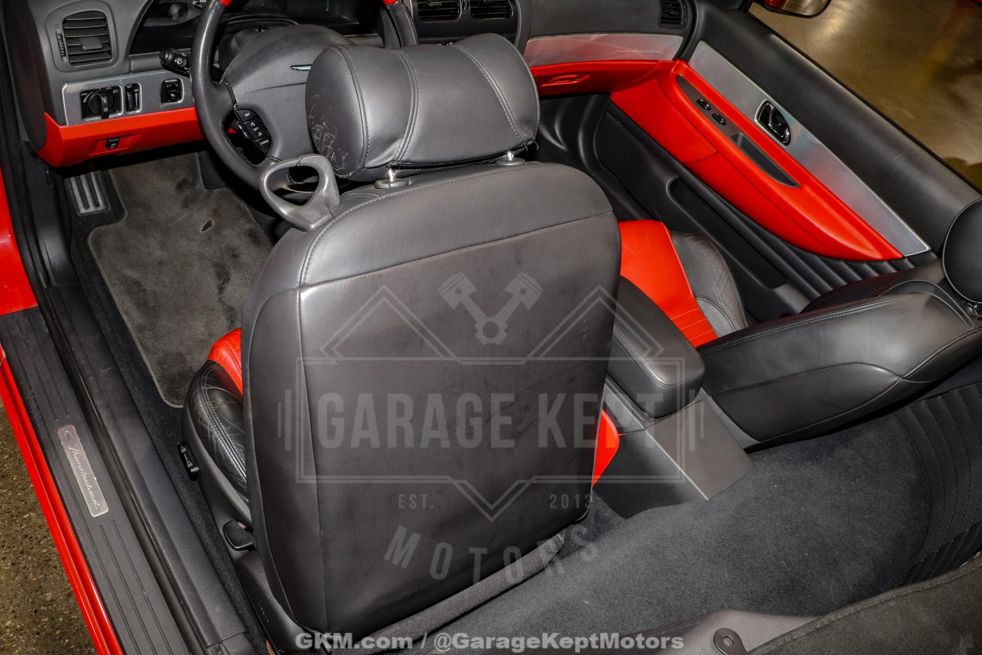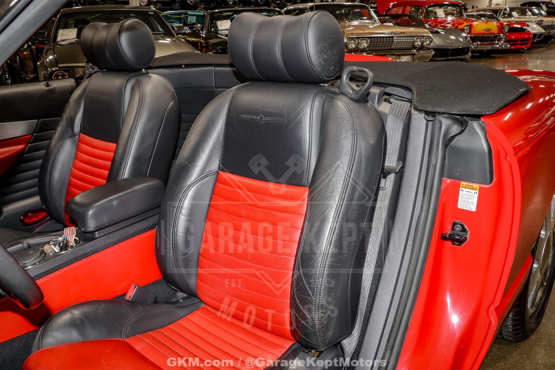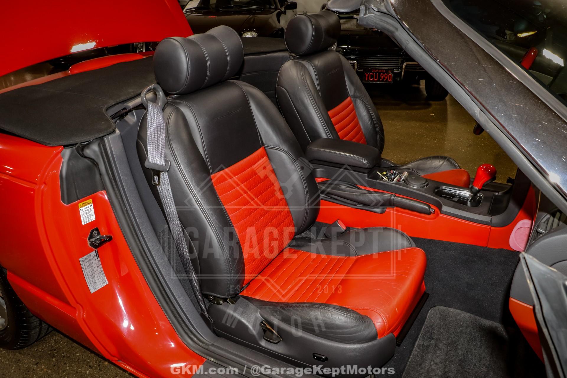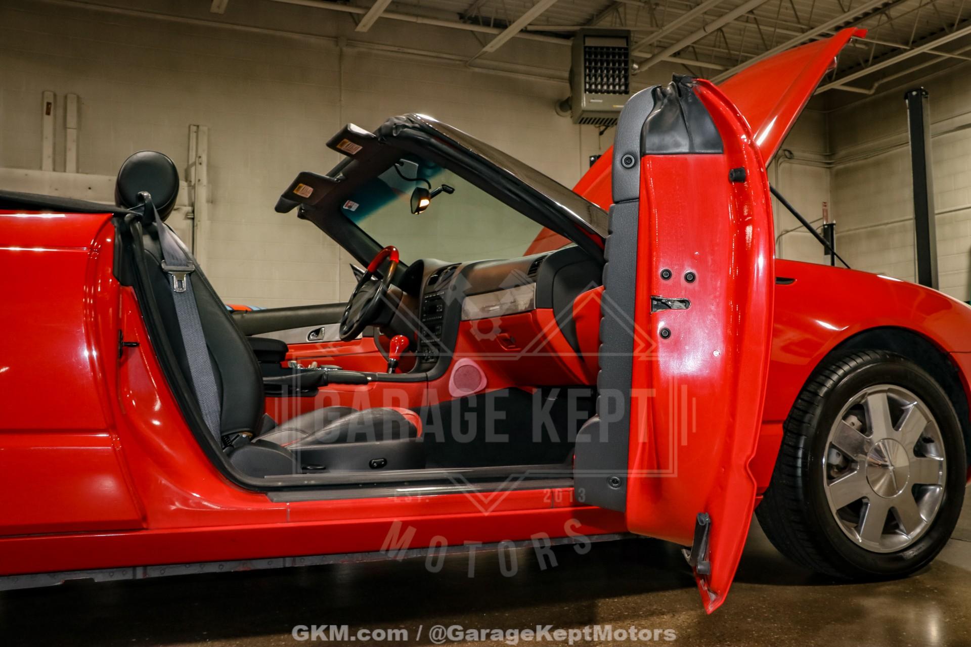 2002 Ford Thunderbird- Only 57,119 Miles- 3.9L V8- Automatic Transmission- Red Exterior- Black InteriorStep into a piece of automotive history with this stunning 2002 Ford Thunderbird Deluxe, now available at Garage Kept Motors. This classic roadster is a perfect blend of retro charm and modern performance, offering a unique driving experience that is sure to turn heads wherever you go. With only 57,119 miles on the odometer, this one-owner vehicle has been meticulously maintained, ensuring it remains in excellent condition for its next proud owner.The 2002 Ford Thunderbird Deluxe is a true icon of American automotive design, and this particular model is finished in a striking Torch Red Clearcoat. This vibrant paint color not only highlights the car's sleek lines and elegant curves but also pays homage to the original Thunderbirds of the 1950s. The exterior is further complemented by chrome accents and distinctive Thunderbird badging, making it a standout on any road.Step inside to discover a luxurious interior finished in Midnight Black. The cabin is designed to provide both comfort and style, featuring premium materials and thoughtful details throughout. The leather-trimmed seats offer excellent support, while the driver-oriented cockpit ensures that all controls are within easy reach. The interior's timeless design is a perfect match for the car's classic exterior, creating a cohesive and inviting atmosphere.Under the hood, this Thunderbird is powered by a robust 3.9L V8 engine, delivering an impressive 252 horsepower and 267 lb-ft of torque. This powertrain provides smooth and responsive performance, whether you're cruising down the highway or navigating city streets. The rear-wheel-drive configuration enhances the car's sporty handling, while the 5-speed automatic transmission ensures seamless gear changes. This 2002 Ford Thunderbird Deluxe is a rare find, being a one-owner vehicle that has been lovingly cared for over the years. Its low mileage and excellent condition make it a standout choice for collectors and enthusiasts alike. The Thunderbird's unique combination of retro styling, modern amenities, and powerful performance make it a special addition to any garage.The 2002 Ford Thunderbird Deluxe is more than just a car; it's a statement of style and a celebration of American automotive heritage. At Garage Kept Motors, we are proud to offer this exceptional vehicle to discerning buyers who appreciate the finer things in life. Don't miss your chance to own a piece of historycontact us today to schedule a test drive and experience the timeless allure of the Ford Thunderbird for yourself.