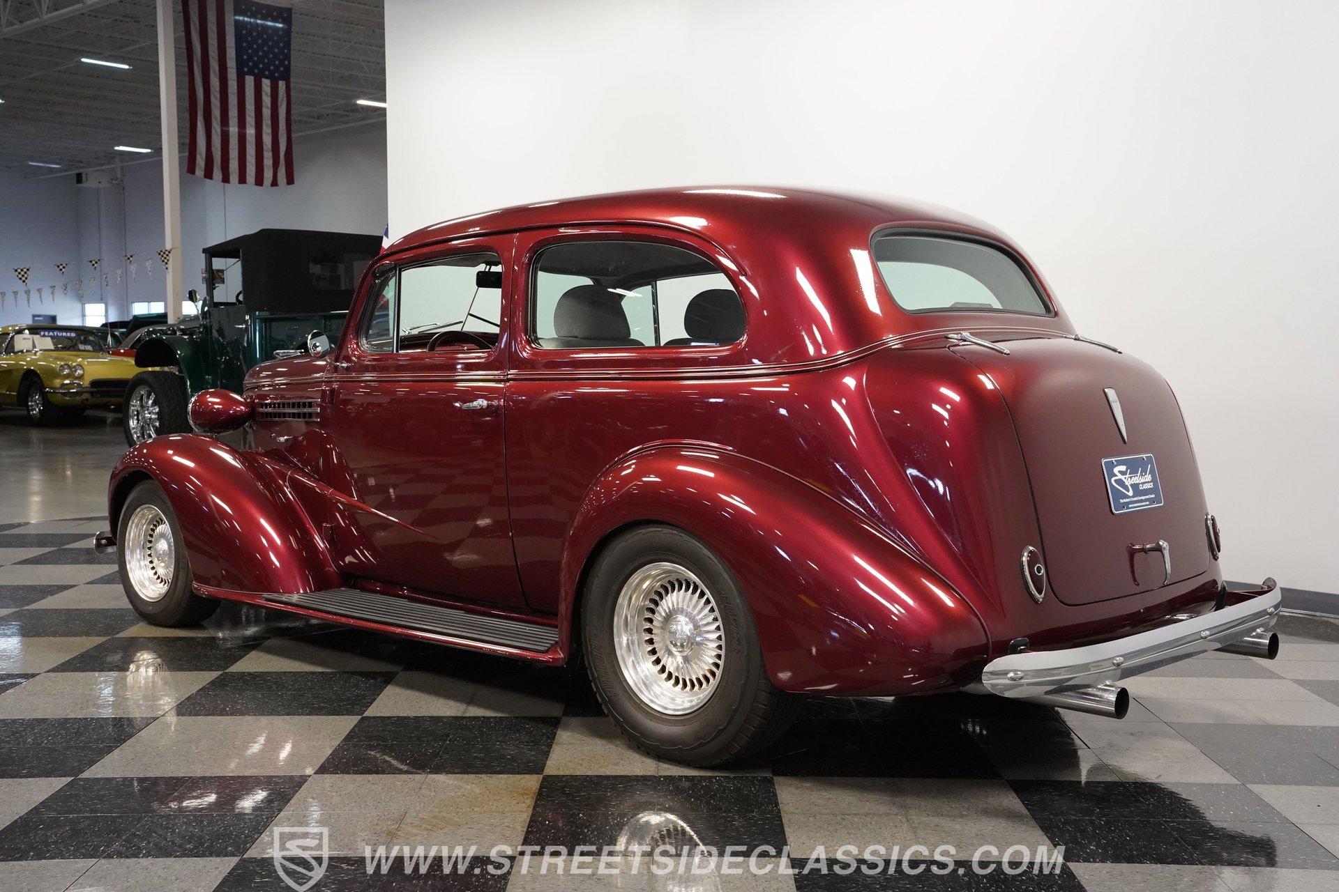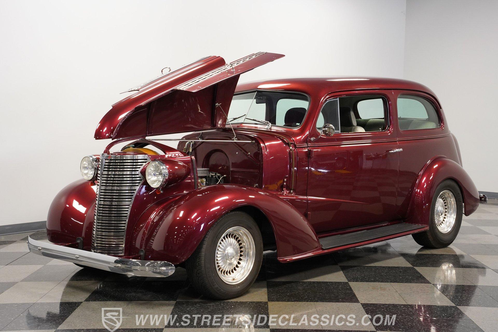 Step back in time and experience the thrill of cruising in a beautifully restored classic that combines vintage charm with modern comfort. This 1938 Chevrolet Master Sedan Streetrod captures the essence of American automotive history while offering a smooth, reliable ride that turns heads wherever it goes. It's more than just a car; it's a statement of style, craftsmanship, and passion for the open road. With its iconic tri-bar headlights and striking presence, this Chevrolet Master Sedan invites you to create new memories and enjoy the timeless appeal of a true classic. Inside, the interior is a blend of classic design and thoughtful upgrades. The custom cloth upholstery with patterned fabric offers both comfort and durability, while matching door panels and a clean headliner add to the cohesive look. The painted dash and door tops feature a slick finish, complemented by white face VDO gauges that provide clear instrumentation. Modern conveniences include vintage air conditioning, a Kenwood CD player with Bluetooth and Aux input, tilt steering, and a Lecarra steering wheel for a perfect grip and driving experience. Under the hood, this classic is powered by a robust 350ci V8 engine paired with a smooth-shifting 3-speed automatic transmission. The engine bay is well-presented with an Edelbrock 4-barrel aluminum intake manifold and stock manifolds, supported by a large single electric fan to keep things cool. Performance is enhanced by power steering with a rack and pinion setup, Wilwood rear power disc brakes, and a Mustang II style front suspension with leaf springs in the rear. The dual exhaust system with glasspack-style mufflers delivers a classic rumble while maintaining a strong and responsive drive. Highlights 1938 Chevrolet Master Sedan Streetrod 350ci V8 Engine With Edelbrock Intake 3-Speed Automatic Transmission Tri-Bar Headlights Mustang II Front Suspension Leaf Spring Rear Suspension GM 10-Bolt Rear End Four-Wheel Power Disc Brakes Rack and Pinion Power Steering Vintage Air Conditioning With R-134A Refrigerant Custom Cloth Interior With Matching Door Panels Kenwood CD Player With Bluetooth And Aux Input Tilt Steering Wheel, Lecarra Steering Wheel Colorado Custom Wheels With Fuzion Tires Financing Available Vehicle Protection Plans Available Worldwide Shipping This 1938 Chevrolet Master Sedan Streetrod is an excellent choice for anyone looking for a fun, stylish cruiser that blends classic looks with modern drivability. With its tasteful upgrades and solid condition, it's ready to hit the road and impress at local shows. Don't miss your chance to own a piece of automotive history that's as enjoyable to drive as it is to admire. Call, email, or come visit our showroom today!