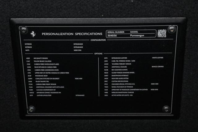Ferrari Purosangue- FERRARI CERTIFIED PRE-OWNED - AVAILABLE EXTENDED FERRARI WARRANTY -- Bianco Cervino over Bianco - Two Owners - Low Miles - Excellent Condition - Many Fine Options - Sold as New by Our Dealership - Expertly Maintained by Our Factory Trained Technicians - Ferrari Factory Warranty to 3/14/27 - Complimentary Ferrari Genuine Maintenance Service to 3/14/31 -Factory Options:- Special Paint Color- Carbon Fiber Front Spoiler- Carbon Fiber Wheelhouse Flares- Carbon Fiber Rear Diffuser- Carbon Fiber Underdoor Covers- Carbon Fiber LED Steering Wheel- Carbon Fiber Upper Center Console- Gloss Forged Diamond Wheels- Wheel Bolts in Titanium- Yellow Brake Calipers- Scuderia Ferrari Shields- Extra-Range Leather Upholstery- Cavallino Stitched to Headrests in Nero- Special Stitching in Nero- Leather Upper Part in Nero- Carpets in Nero- High-End Audio System- Smartphone Interface- Wireless Smartphone Charger- Air Quality Sensor- Active-Matrix LED Lights- Panoramic Roof- Black Tailpipe Tips- Embroidered Mats with Logo- Luggage Compartment Kit- Rev Counter in WhiteIf you are in the market for a Ferrari Purosangue, please call or email us today.This Ferrari has passed a multi-point inspection performed by our factory trained technicians, and has been enrolled in the Ferrari Approved Certified Pre-Owned Program. The Certified program makes available up to two years of additional Ferrari Power Approved Warranty coverage. Please see dealer for more details.