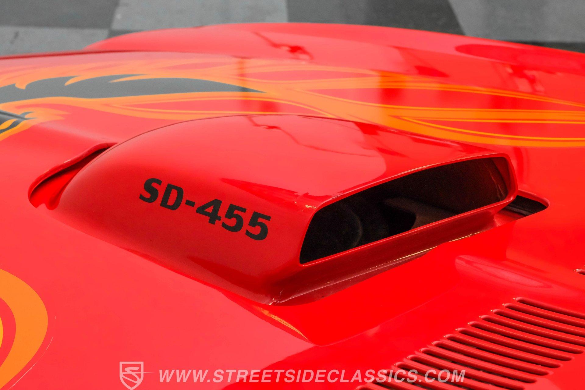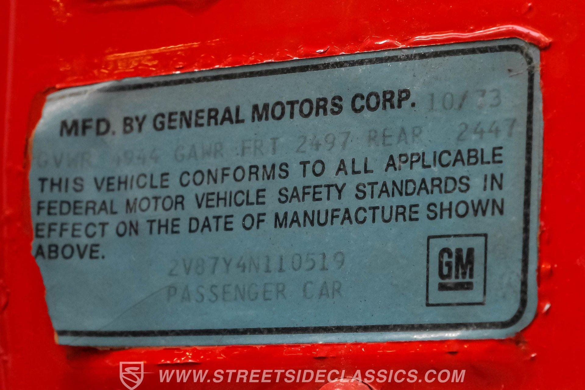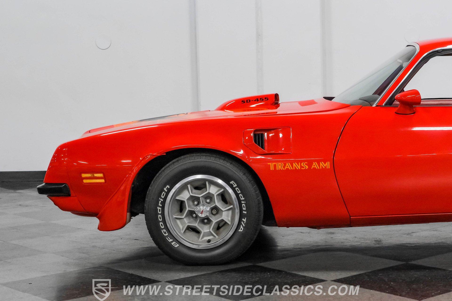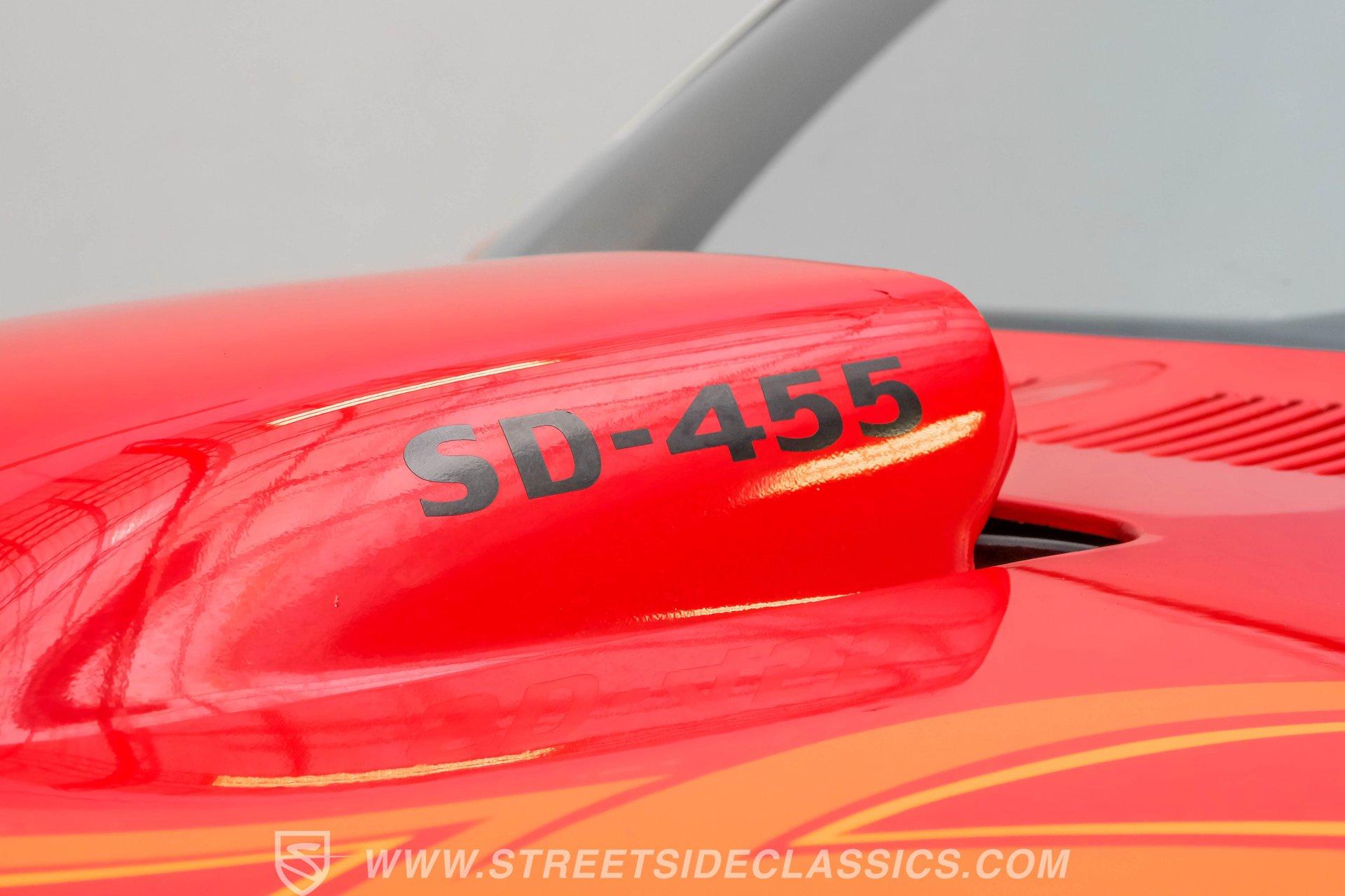 What we have here is a 1974 Pontiac Firebird Trans Am in the often sought-after Buccaneer Red color. This muscle car is complete with the big Firebird decal on the hood, the shaker hood scoop, and the desirable big block engine. The unique honeycomb wheels are also highly desirable, and the lower front spoiler, rear spoiler, fender vents, and quarter-panel ground-effects are what make people fall in love with these Trans Ams. Door jambs, weather stripping, and windows all appear to be in good shape, and the trunk and deck lid look clean, giving you a nice place for cargo in this small car. Red engulfs the interior of this Trans Am, complementing the exterior perfectly. It appears to be pretty stock, which makes it even cooler. The dashboard gauges look stock, along with the stainless steel gauge surround, the heat and air conditioning controls, and the AM/FM radio with cassette player. The dashboard and center console themselves seem to be holding their age well. The back seats and carpets look very clean, and the black Firebird floor mats add a nice touch to the interior. What hustles this classic sports car down the road is a 455 cubic-inch V8. To add extra power, Edelbrock aluminum heads, an Edelbrock intake manifold, and a 4-barrel carburetor have been installed. To handle that horsepower and torque, the Trans Am is equipped with a TH400 3-speed automatic transmission. The front suspension does its job with coil springs, shocks, and a sway bar, while the rear uses leaf springs with shocks and a sway bar. The 15-inch honeycomb-style wheels are wrapped in 245/60R14 front tires and 275/60R15 tires at the rear. These bolt up to power front disc brakes and rear power drum brakes. And for that signature Trans Am sports car sound, dual exhaust with an X-pipe and aftermarket mufflers are installed. Highlights: 455 Cubic-Inch V8 Edelbrock Aluminum Heads, Edelbrock Intake Manifold, Edelbrock 4 Barrel Carburetor TH400 3-Speed Automatic Transmission 15-Inch Honeycomb-Style Wheels 245/60R14 Front Tires And 275/60R15 Rear Tires Power Front Disc Brakes Dual Exhaust With X-Pipe And Mufflers Power Windows, Heat, And Defrost AM/FM Radio With Cassette Power Steering What's not to like about a classic sports car with a flashy paint job and a big block under the hood? If your answer is "absolutely nothing," then this 1974 Pontiac Firebird Trans Am 455 is the car for you. It's ready to hit the pavement-and for you to hit the throttle. Call today!