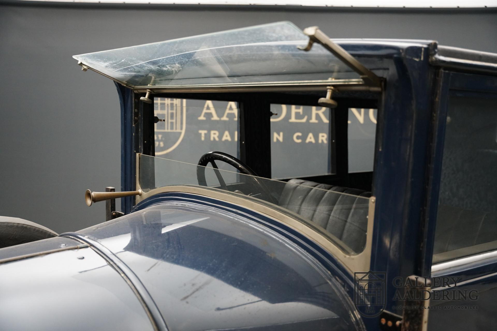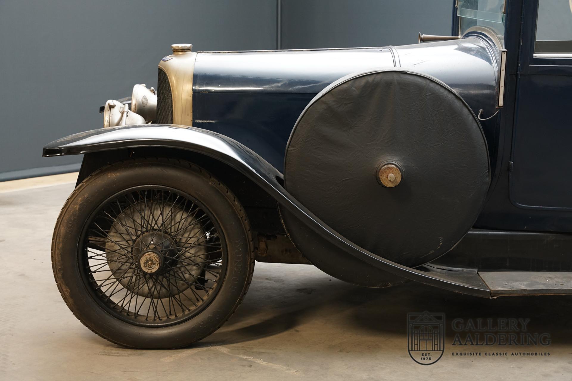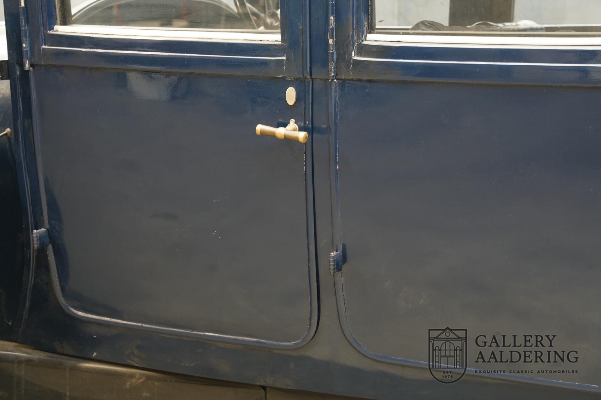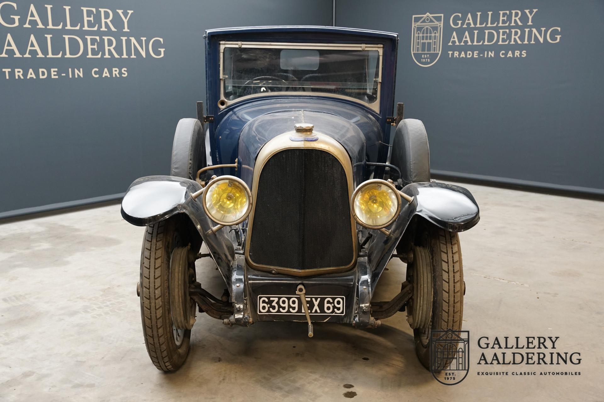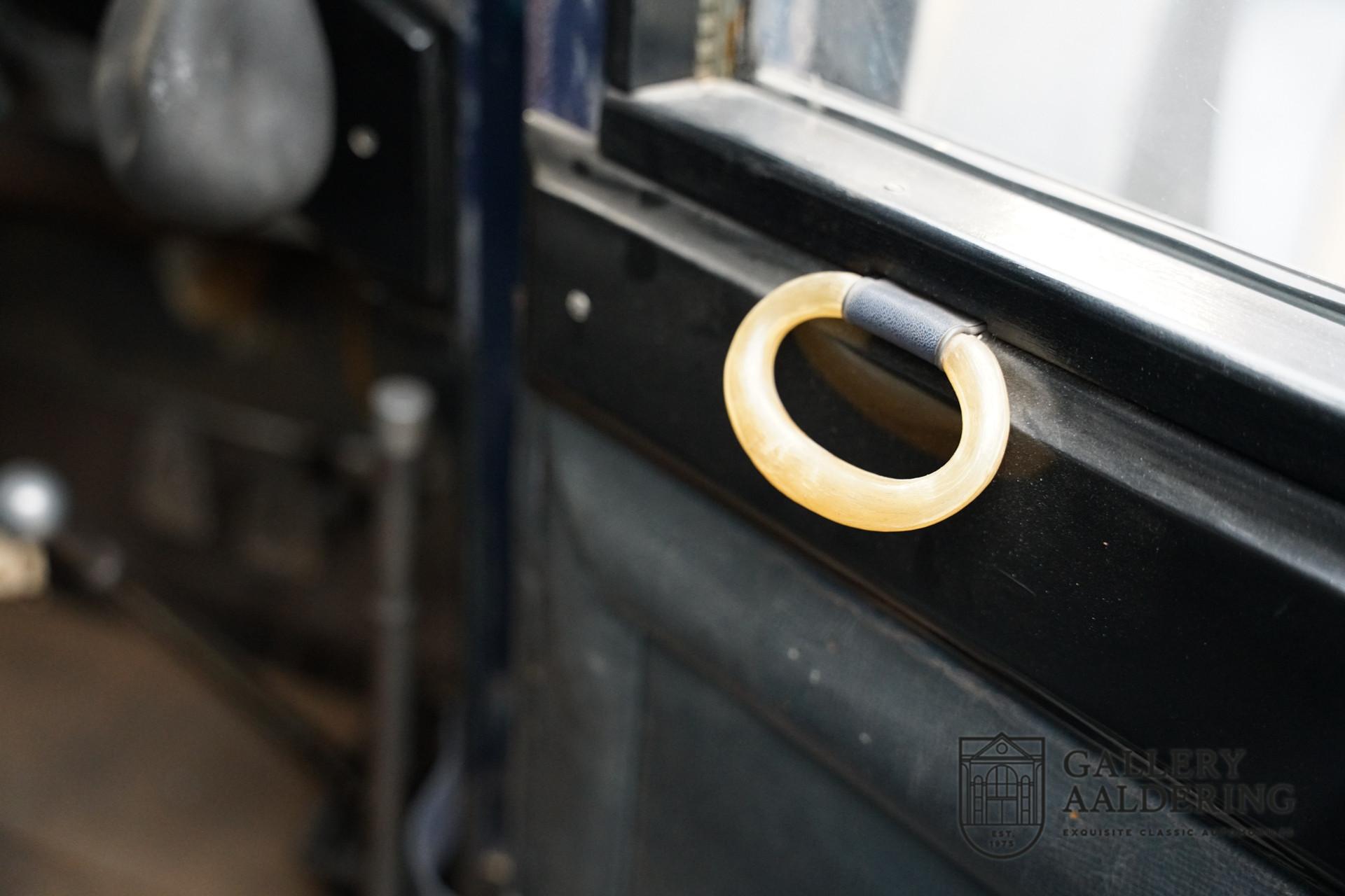 For its age, the bodywork is remarkably good shape. The car is even partly original with correct alignment. The C1 was given a blue finish at the time. The paintwork still looks good with only minor signs of the effect the years have had. The interior trim consists of black leather on the drivers and passengers seat with the typical Avions Voisin Art-Deco designed cloth upholstery in the back. It certainly creates an absolutely unique look. Just as special are the two little stool in front of the rear bench that doubles up as footstools for the rear passengers.