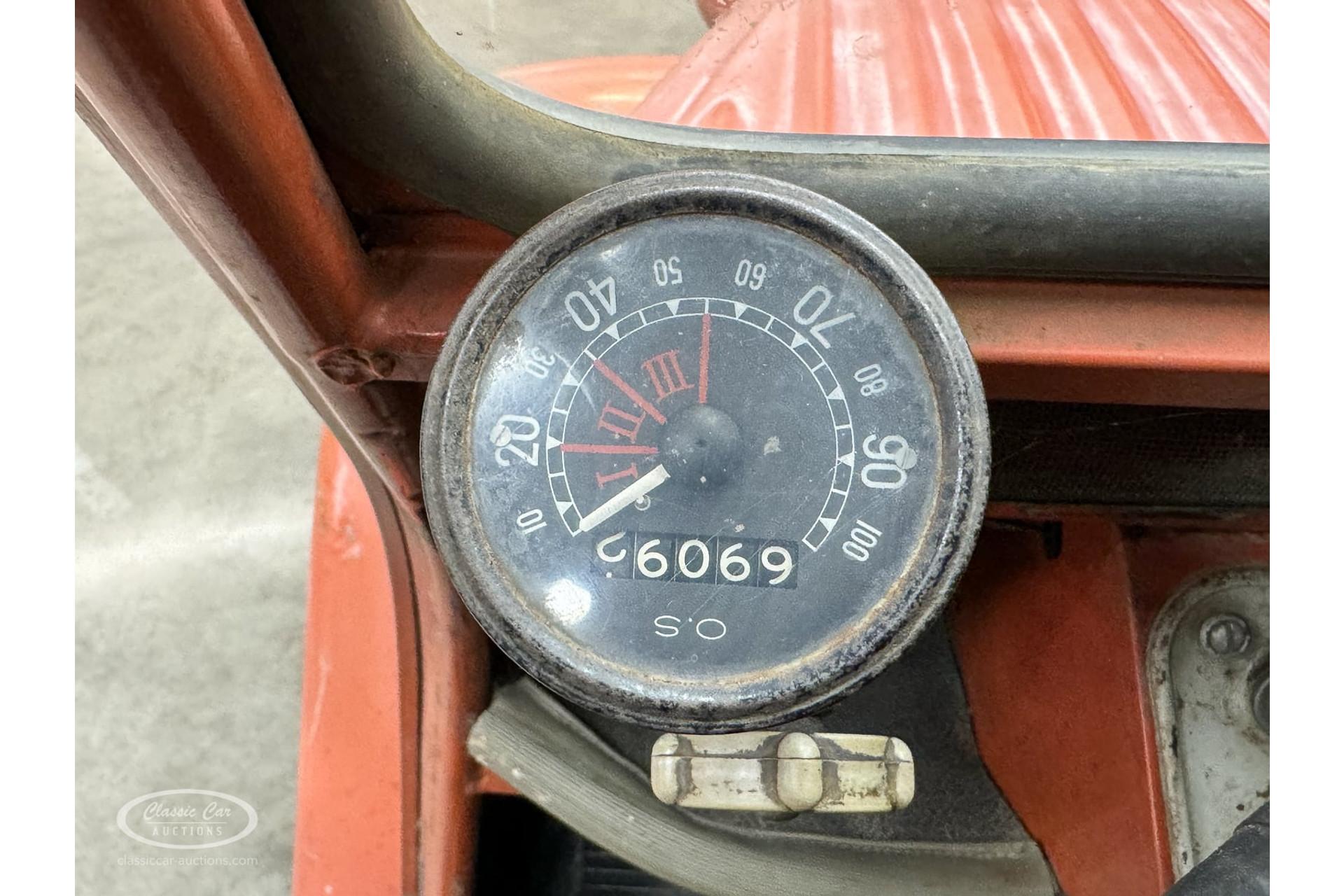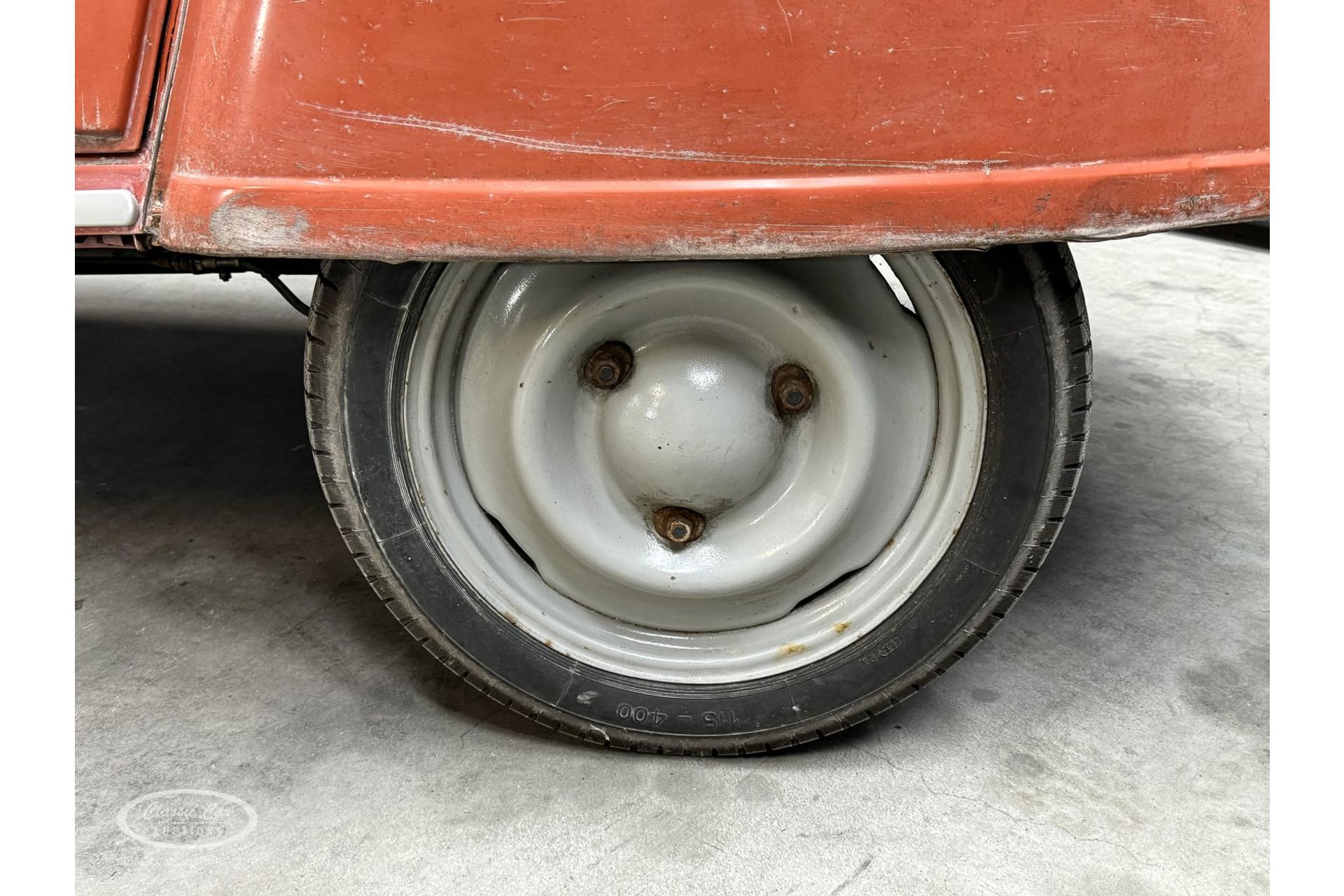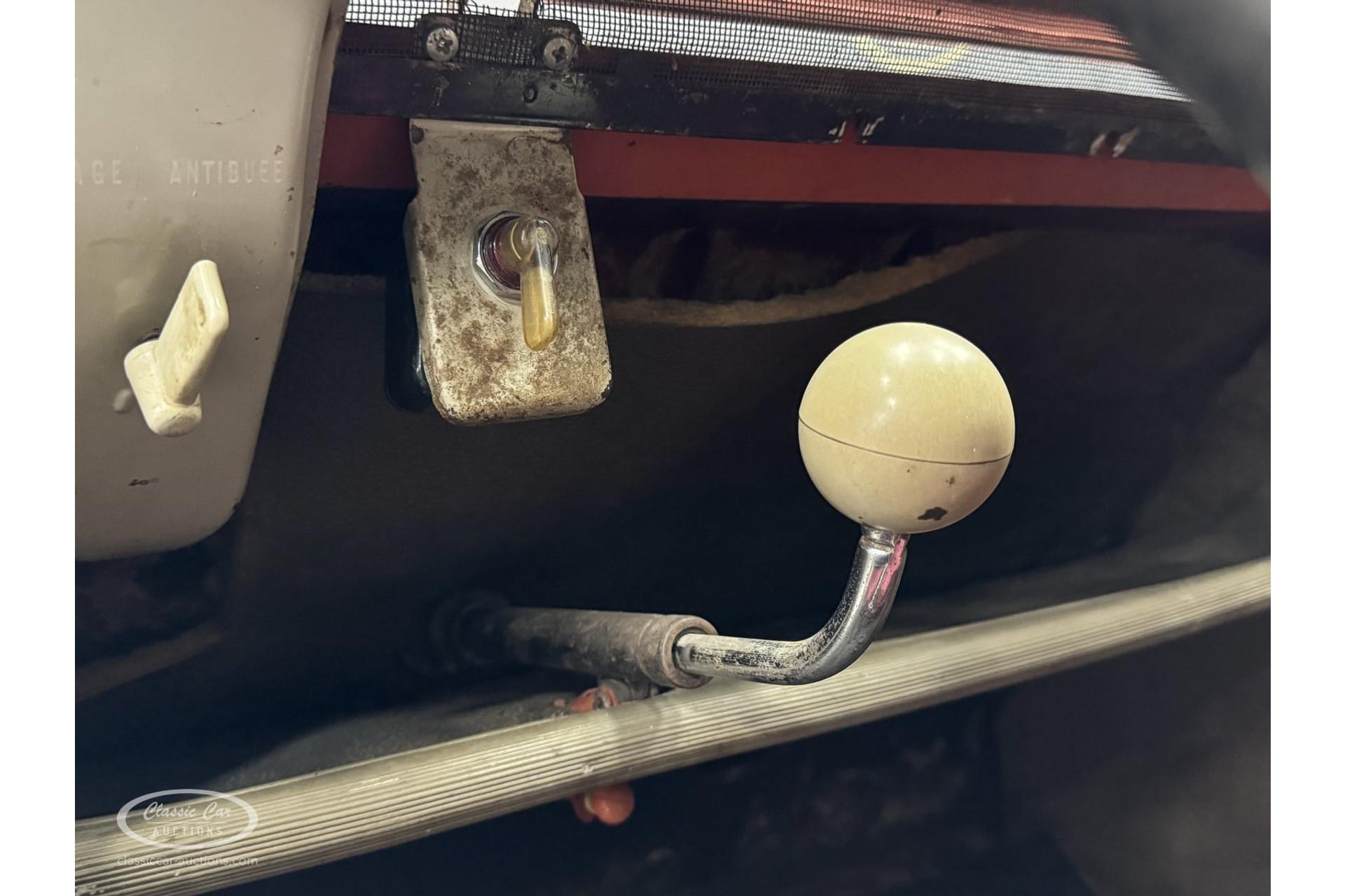 This 1959 Citroën 2CV AZ is one of the last examples with the characteristic ribbed hood, which gives it a unique and recognizable appearance. This particular model is finished in the charming color Rouge Bolero, which adds to the French charm of this car. The 2CV is known for its simplicity and unique character, and this example is a beautifully preserved icon in that.