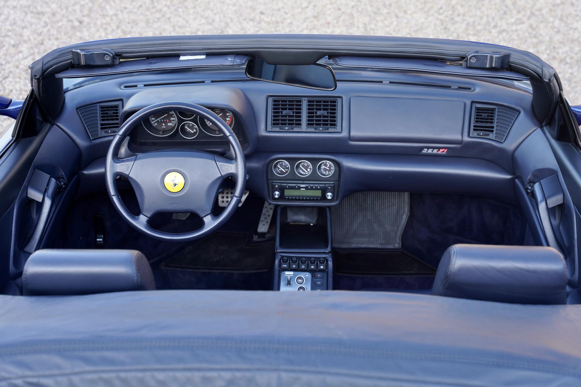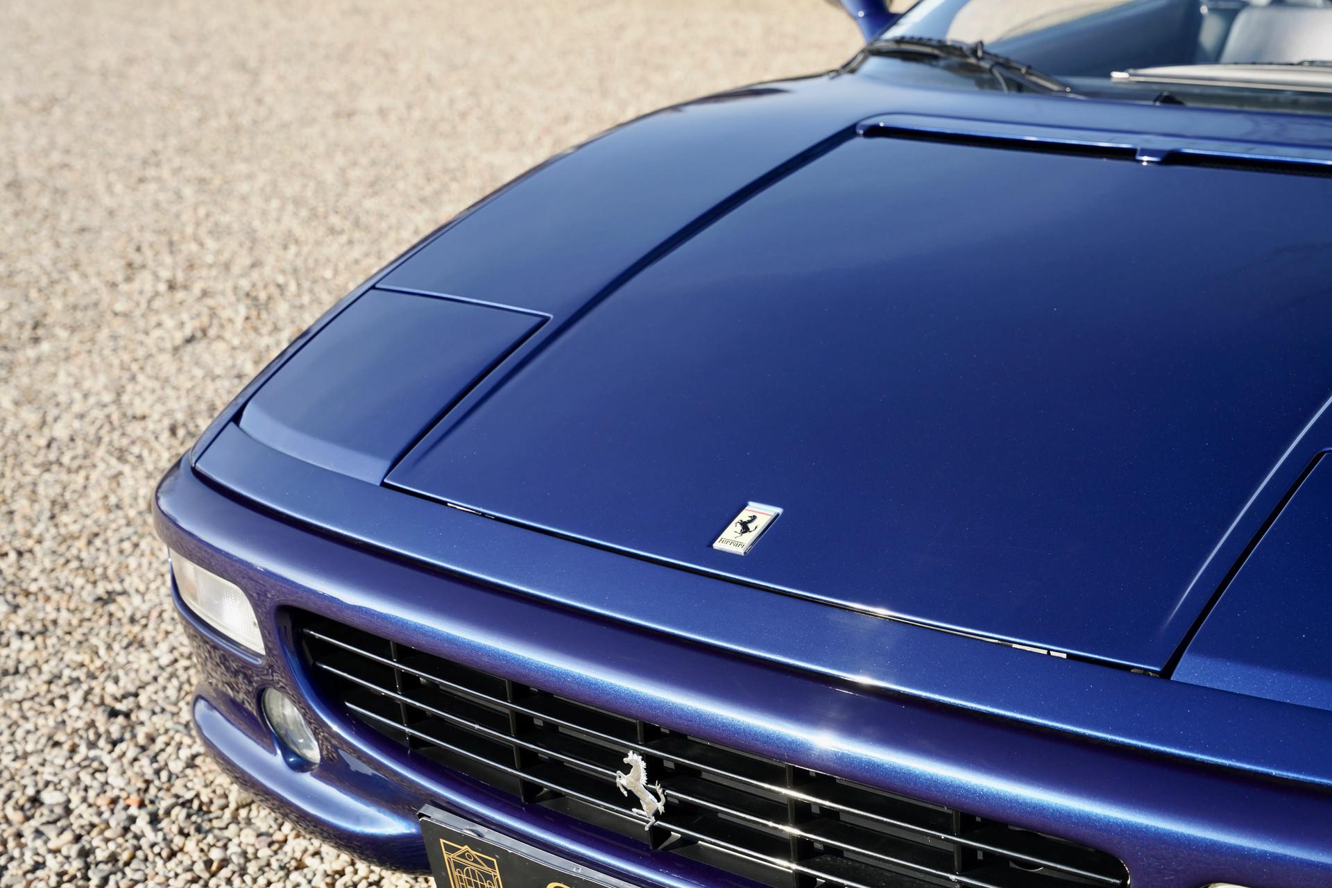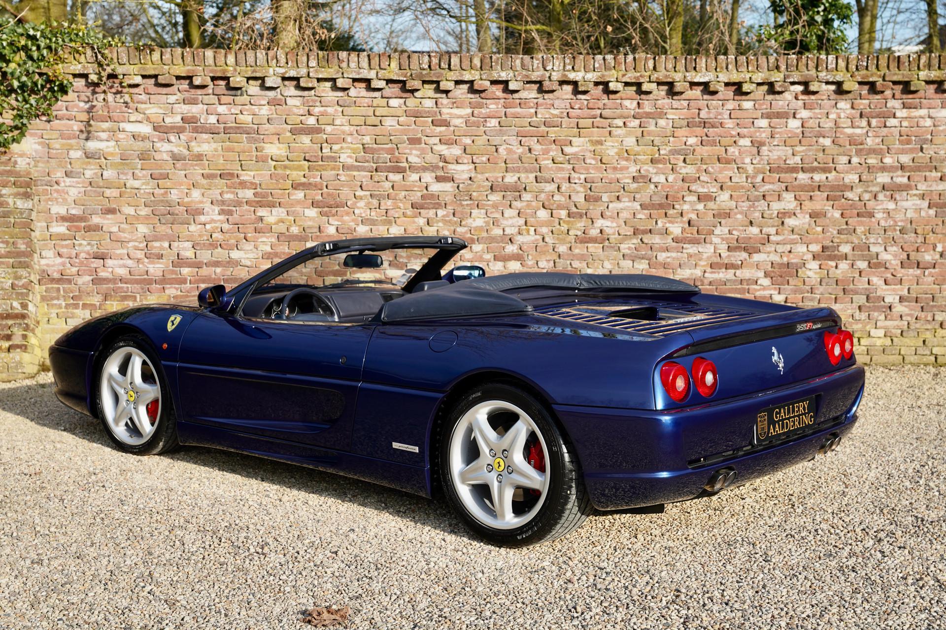 The Ferrari F355 Spider is the perfect example of the saying that fine wine gets better with age. And at Gallery Aaldering, we believe this holds true for this remarkable model. A stunning machine, with a color combination that makes it truly stand out—Blu Tour de France, perfectly complemented by a matching blue soft top. We always say the top should be down, but with this car, even with the top up, it's a beauty to behold!