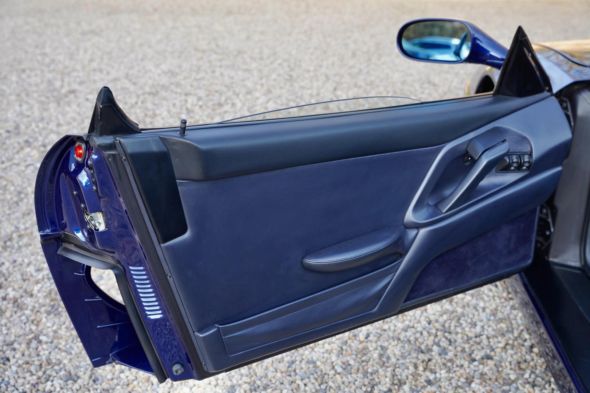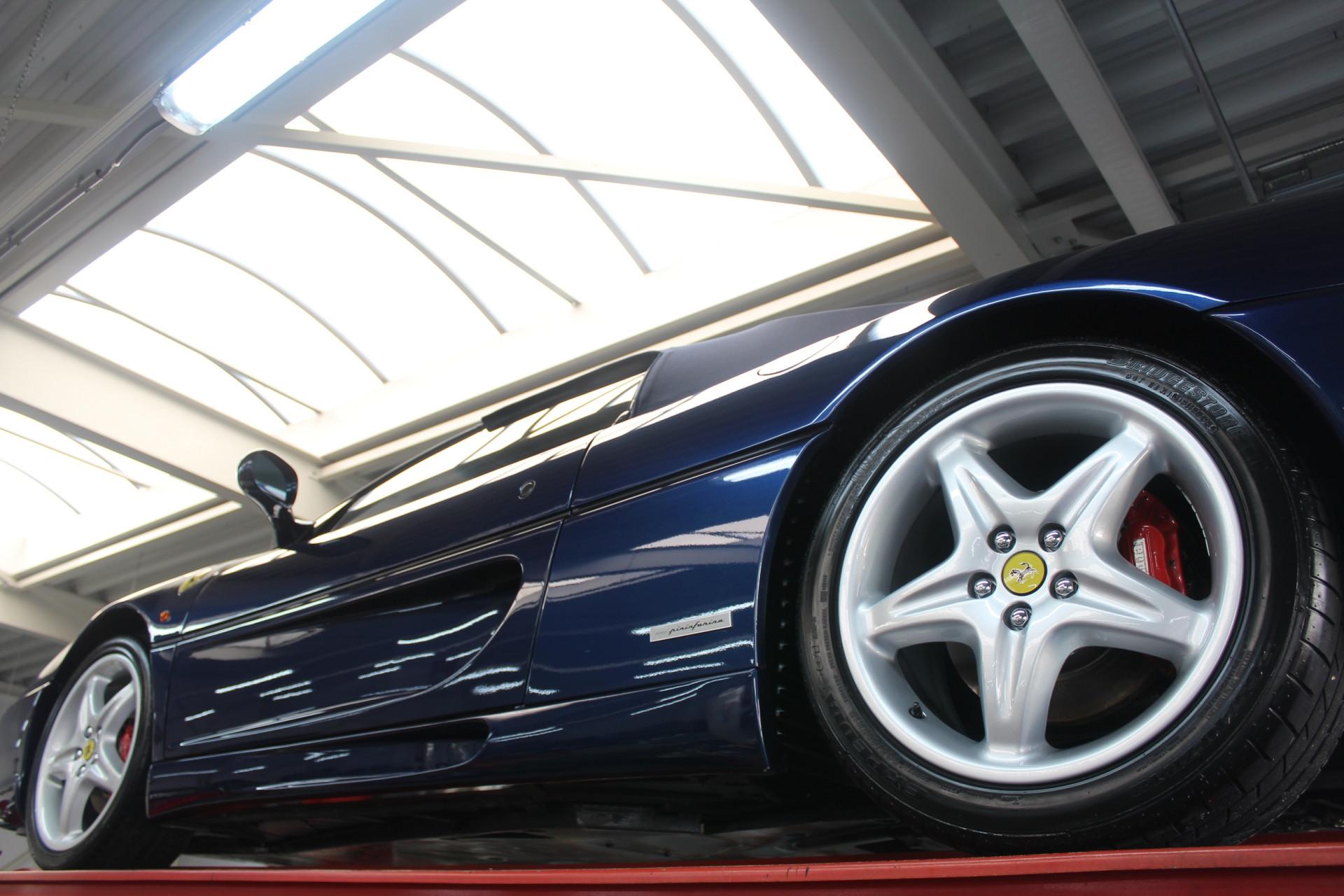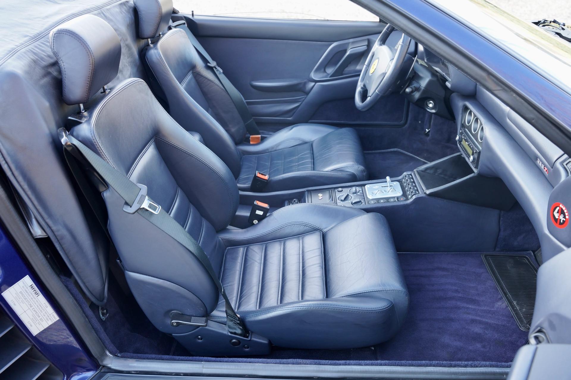 The Ferrari F355 Spider is the perfect example of the saying that fine wine gets better with age. And at Gallery Aaldering, we believe this holds true for this remarkable model. A stunning machine, with a color combination that makes it truly stand out—Blu Tour de France, perfectly complemented by a matching blue soft top. We always say the top should be down, but with this car, even with the top up, it's a beauty to behold!
