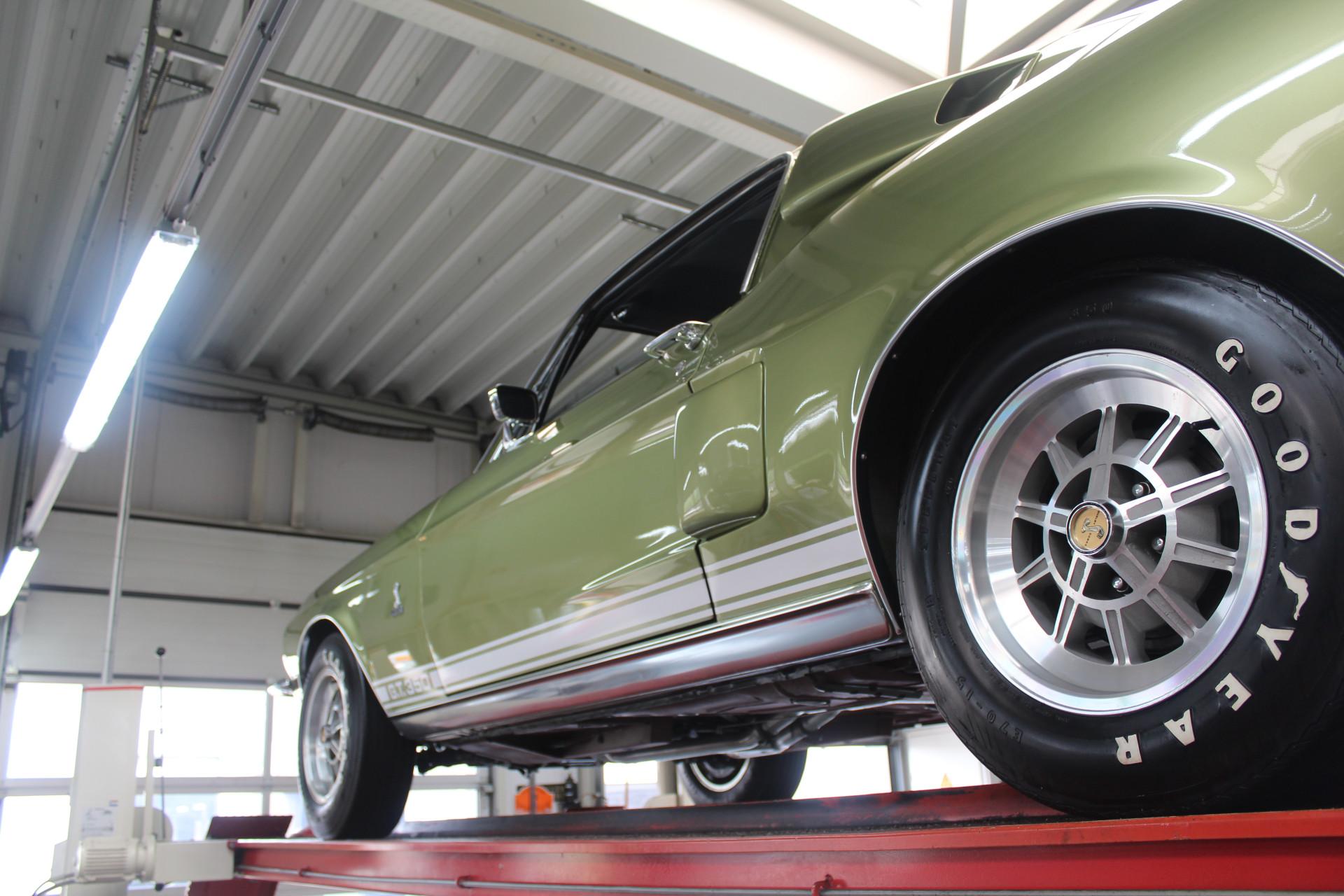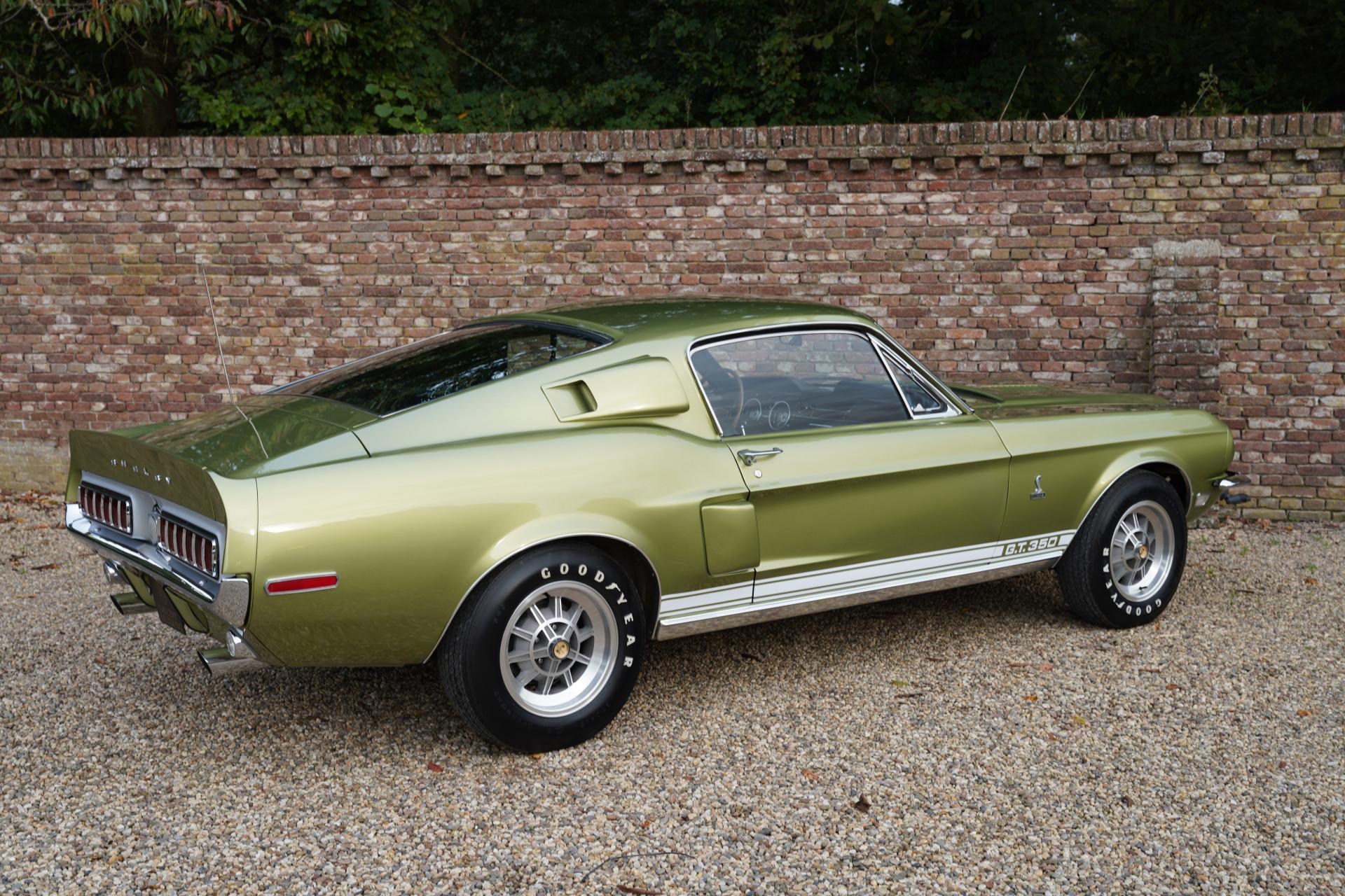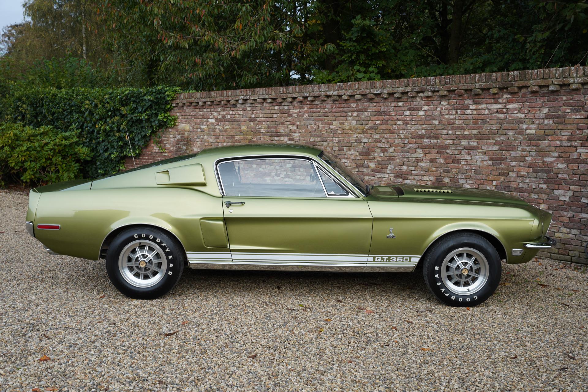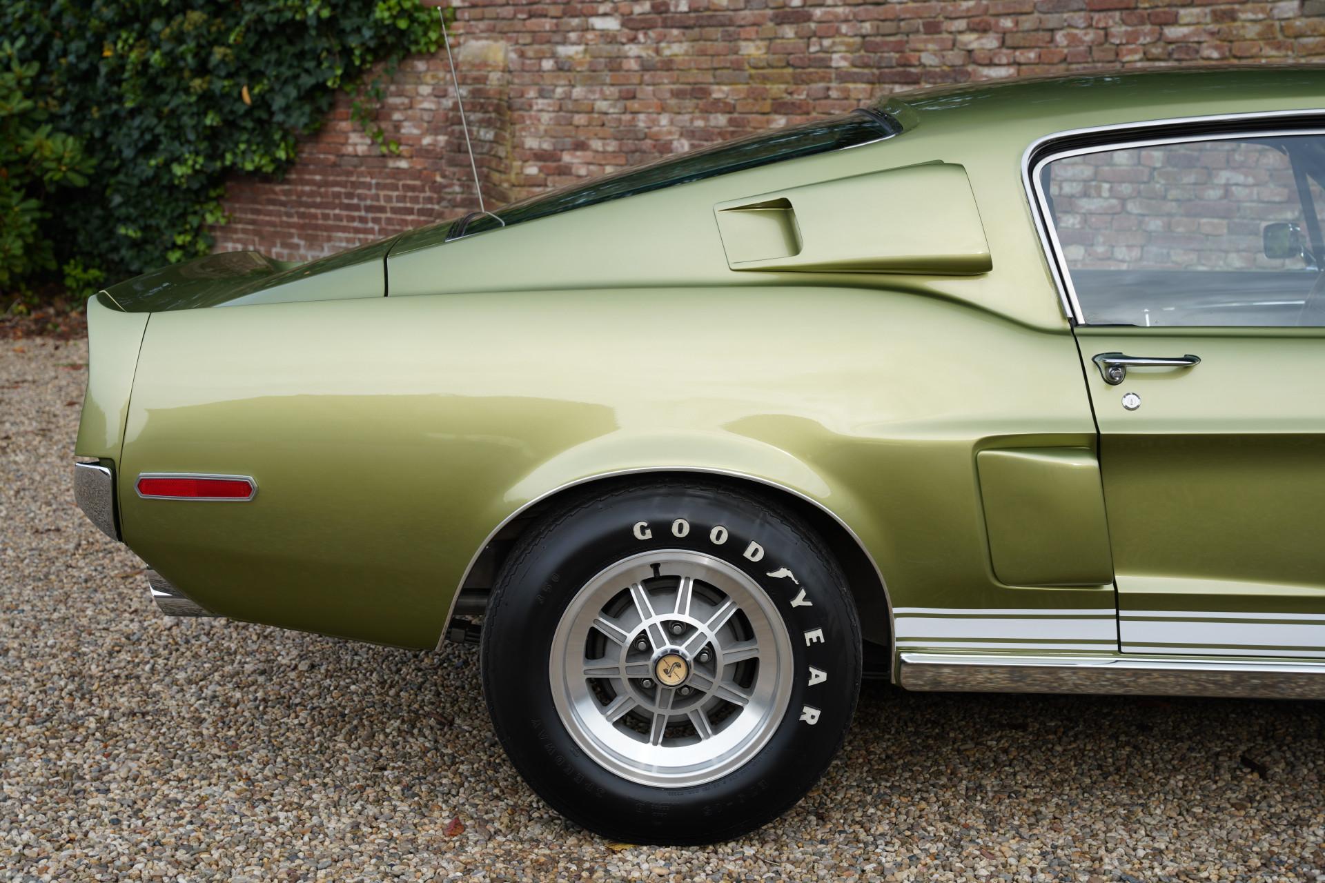 In mid-March 1968, this Shelby GT350 with production number 02802 rolled off the assembly line. Lime Green Metallic was the colour chosen by the first owner of the car, a doctor from Boise, Idaho. The car's history has been well-documented. In the early 2000's, the car underwent a full restoration, preserving many original parts, such as the gauges and other specific Cobra items. The restoration was done so thoroughly and well that the finish and fitment match factory specifications and even exceed them in some aspects. The car's colour springs into life in sunlight, truly magnificent! The condition of the bodywork can only be described as optimal, with the same applying equally to other exterior visible components. The beautiful ten-spoke wheels, chrome work, and lighting elements: everything is in excellent condition.