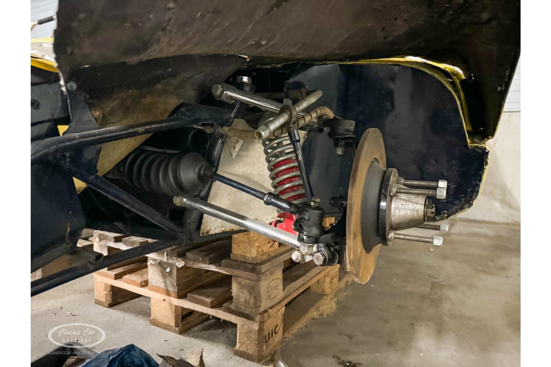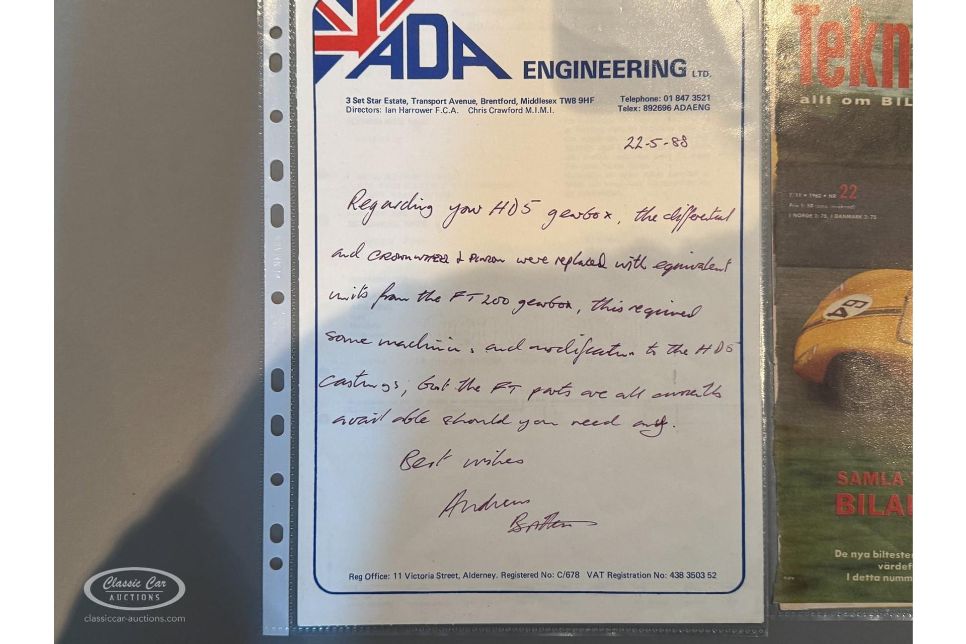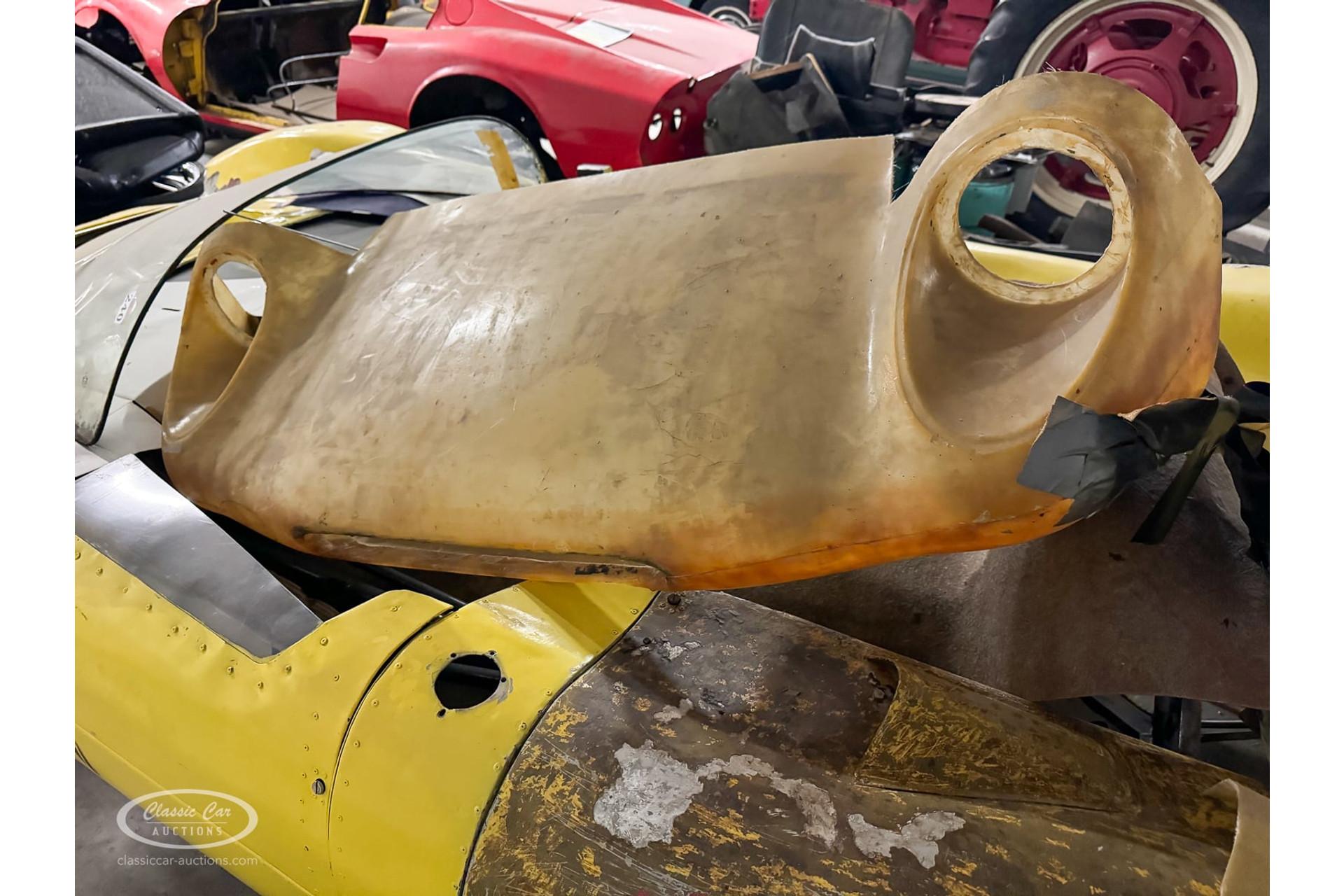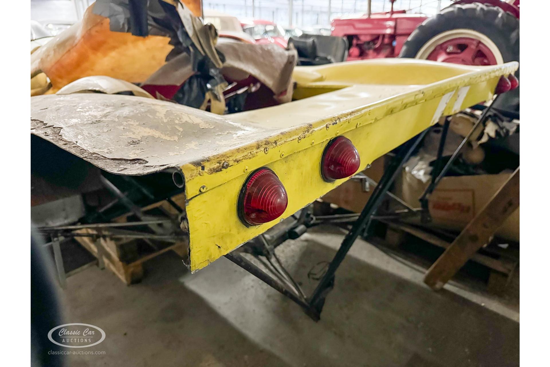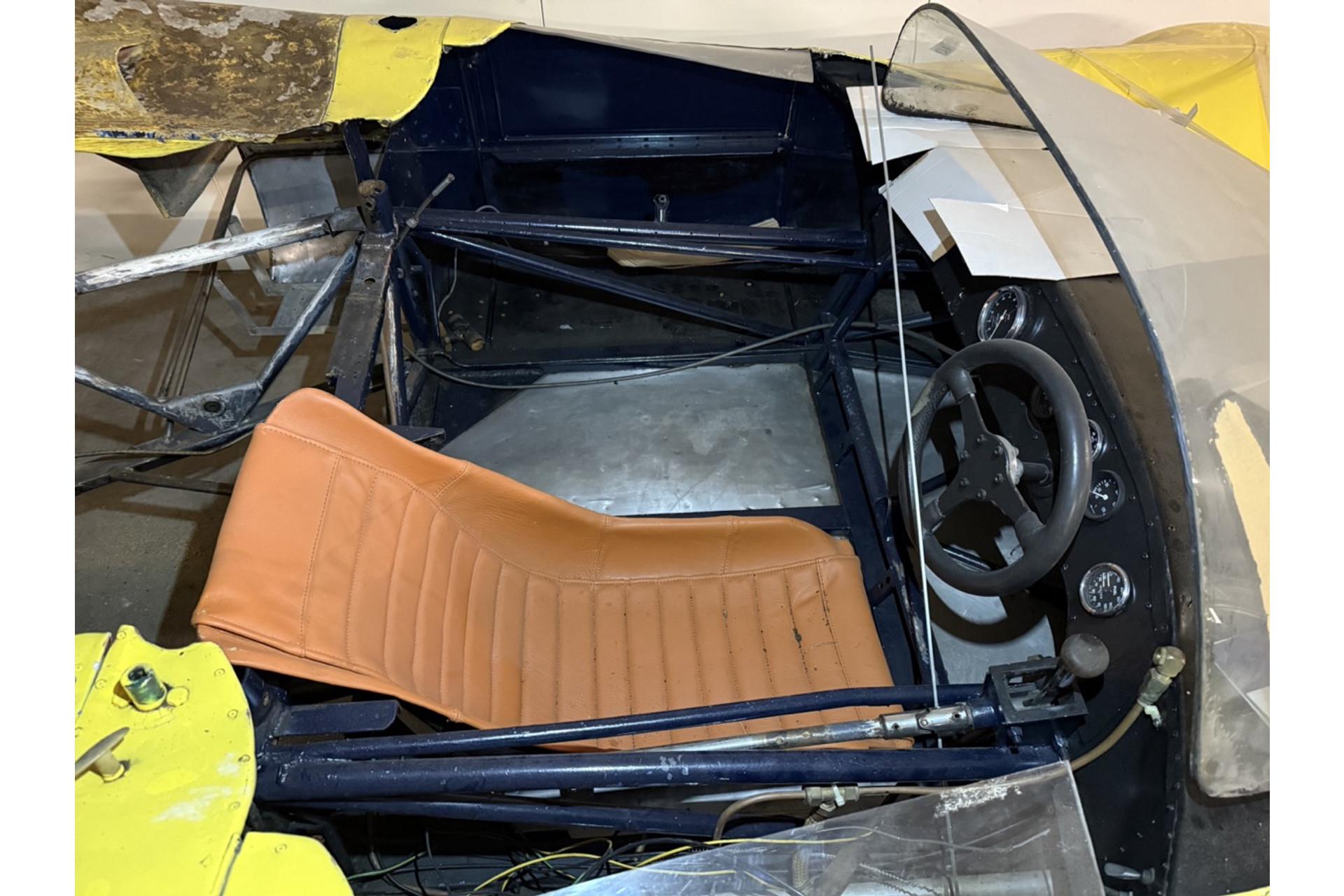 This unique racing project includes the chassis, the original aluminum body and the powerful Ford FVA engine, mated to a five-speed Hewland gearbox. With traces of its rich racing history and associated parts, such as the original racing wheels and two additional front ends, this car offers great potential for restoration. For the true enthusiast, this project is a rare opportunity to bring a piece of motorsports history to life.