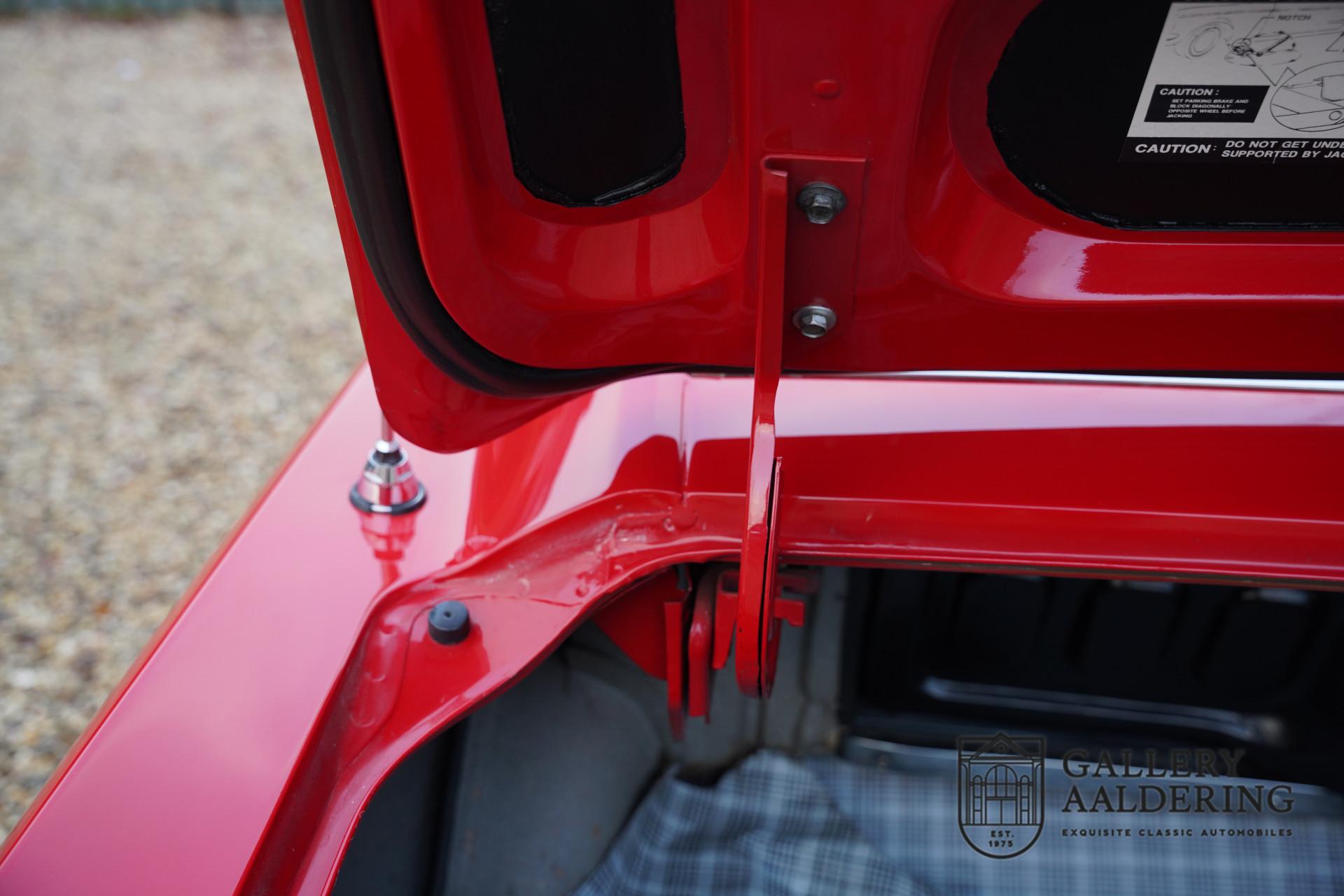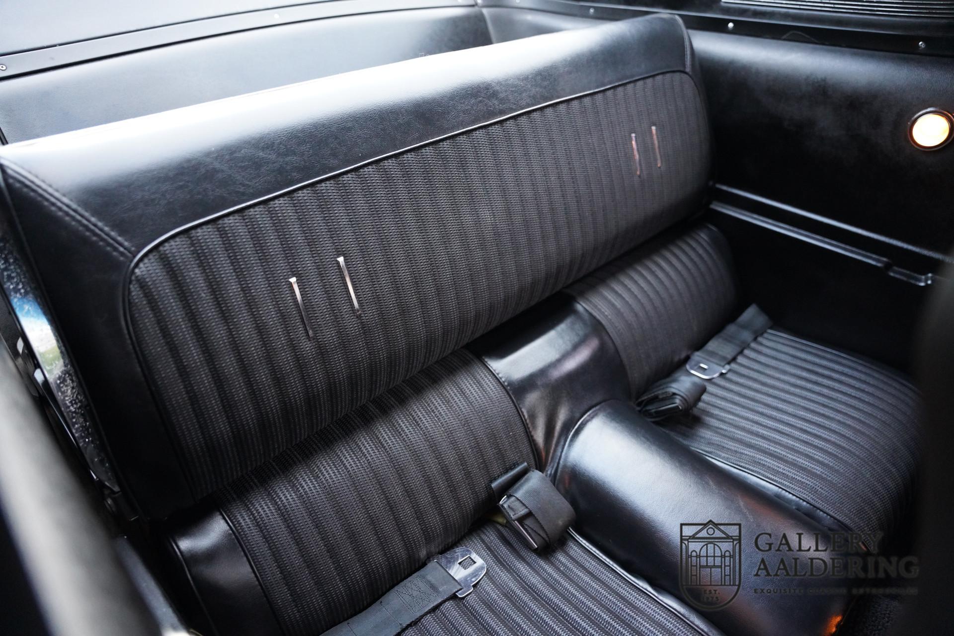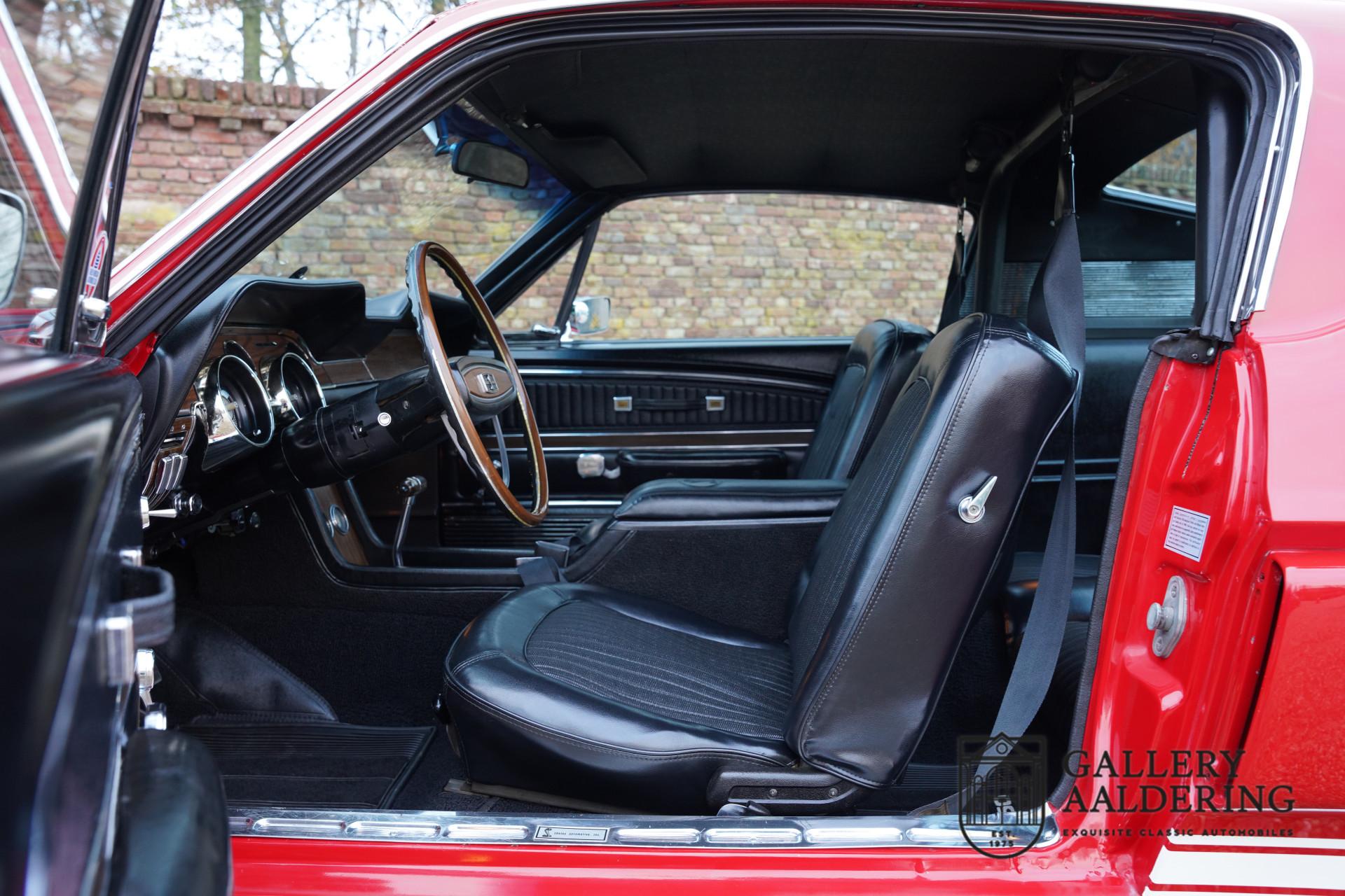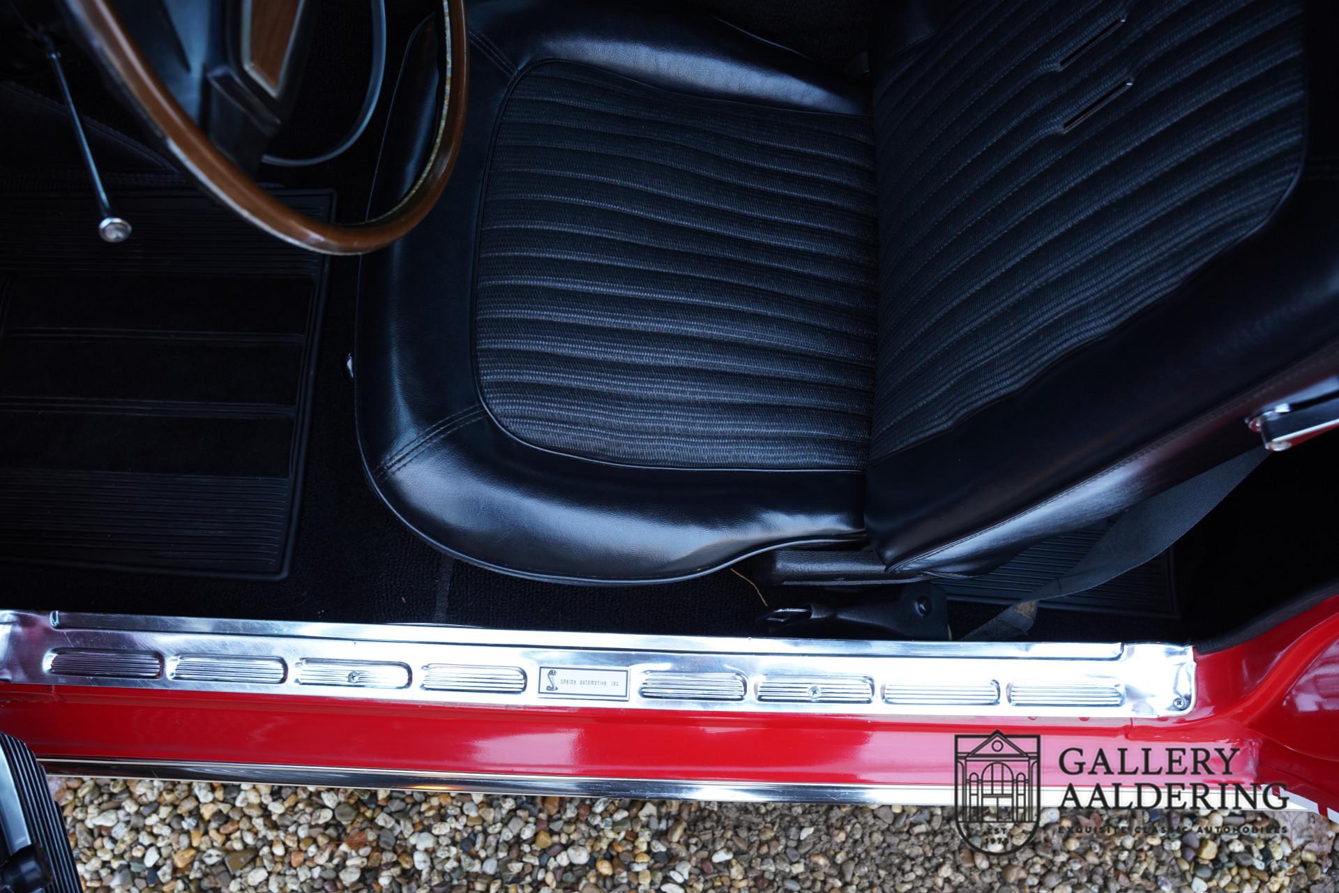 The example offered here, a stunning red 1968 Shelby GT350, is the ultimate specimen in a fantastic color scheme and in excellent condition. Painted in the eye-catching and classic Candy Apple Red and adorned with original Cobra logos, this car exudes both pure power and elegance. The bodywork has been perfectly restored, featuring the signature Shelby details such as the lightweight hood with air vents, the optional ten-spoke wheels, and the original striping. The details are spot-on, ensuring that this example has the correct appearance, which is so important for a car of this caliber.