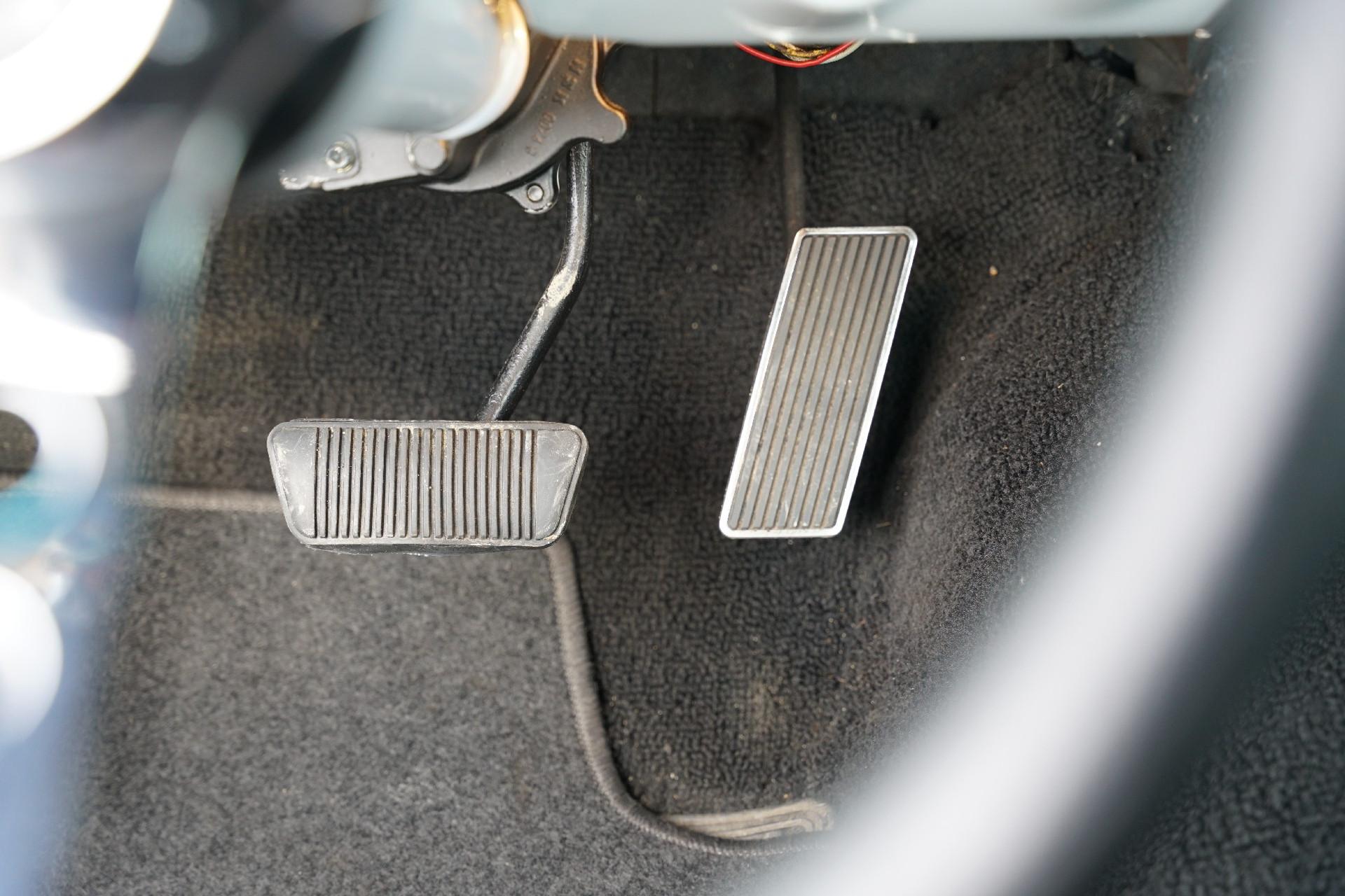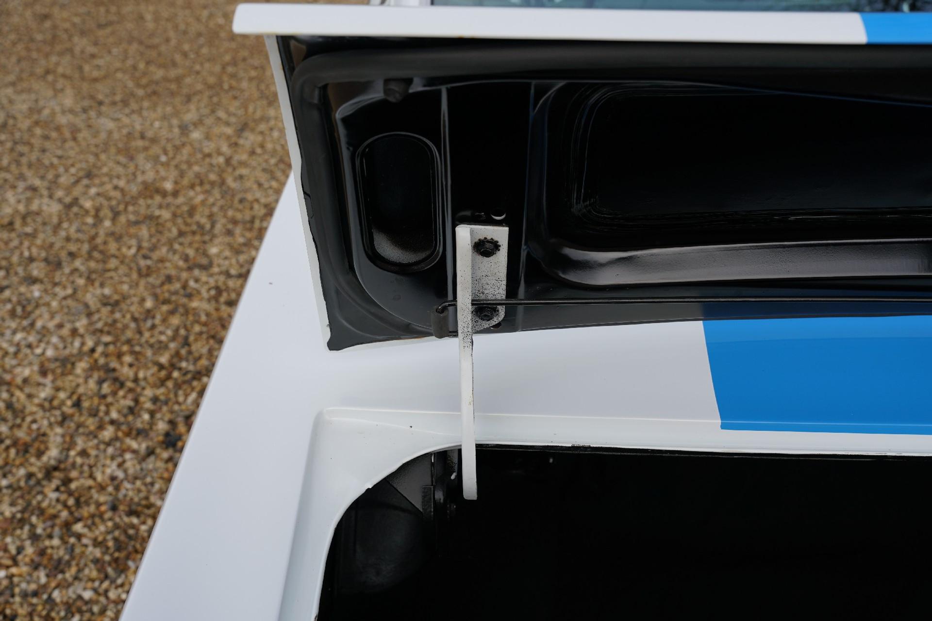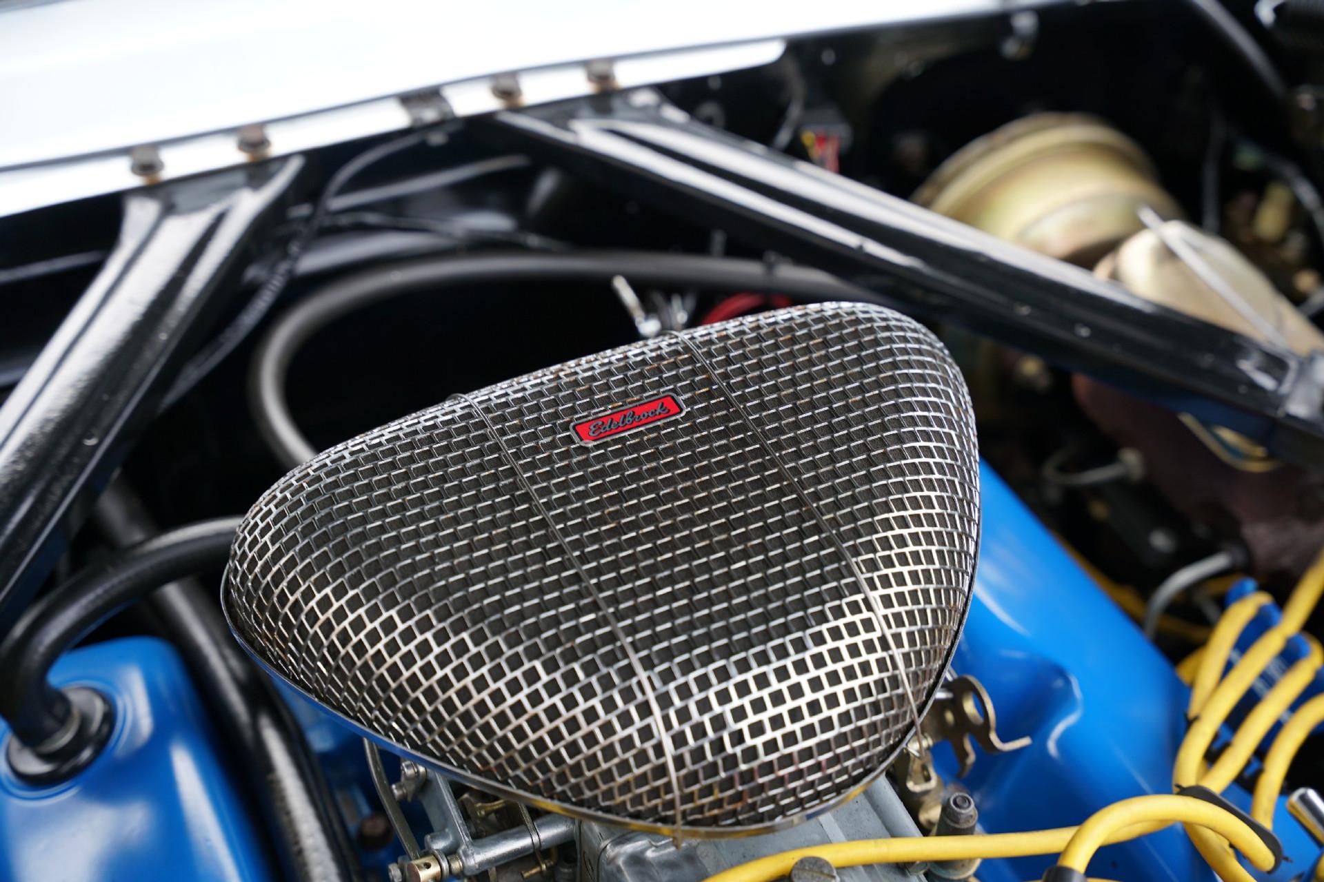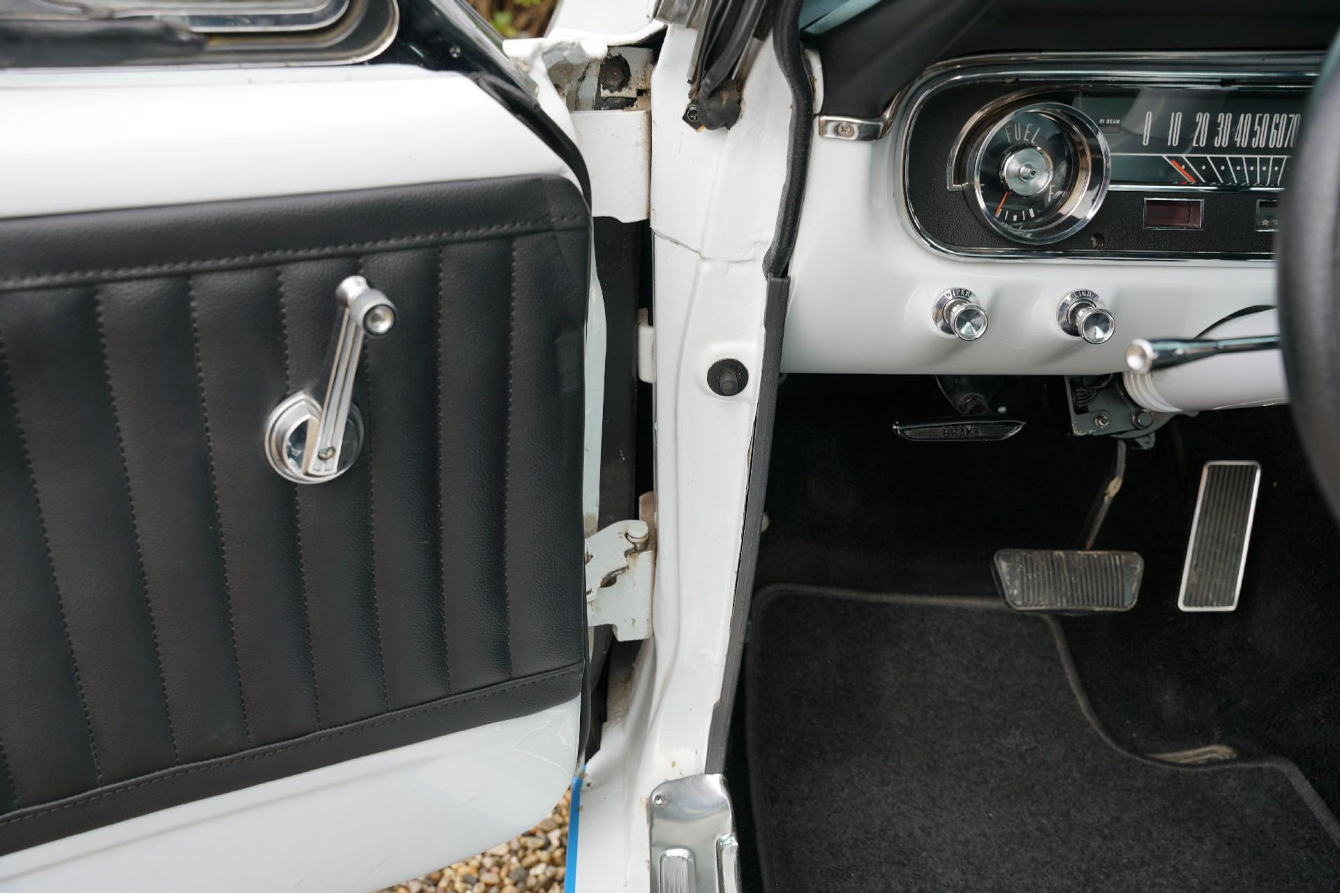 The interior has been completely reupholstered and is in new condition. The seats are upholstered in black leather. It is also striking that the seats are embroidered with the Cobra logo, a nice reference to the faster versions that were produced by Caroll Shelby. The car is of course equipped with new carpets that are also in new condition and fit perfectly everywhere. The instruments and controls all function as they should and also look beautiful. The dashboard is neatly cared for and the top has also been reupholstered. It forms a beautiful whole with a very nice appearance. The door panels have also been completely reupholstered and look beautiful.