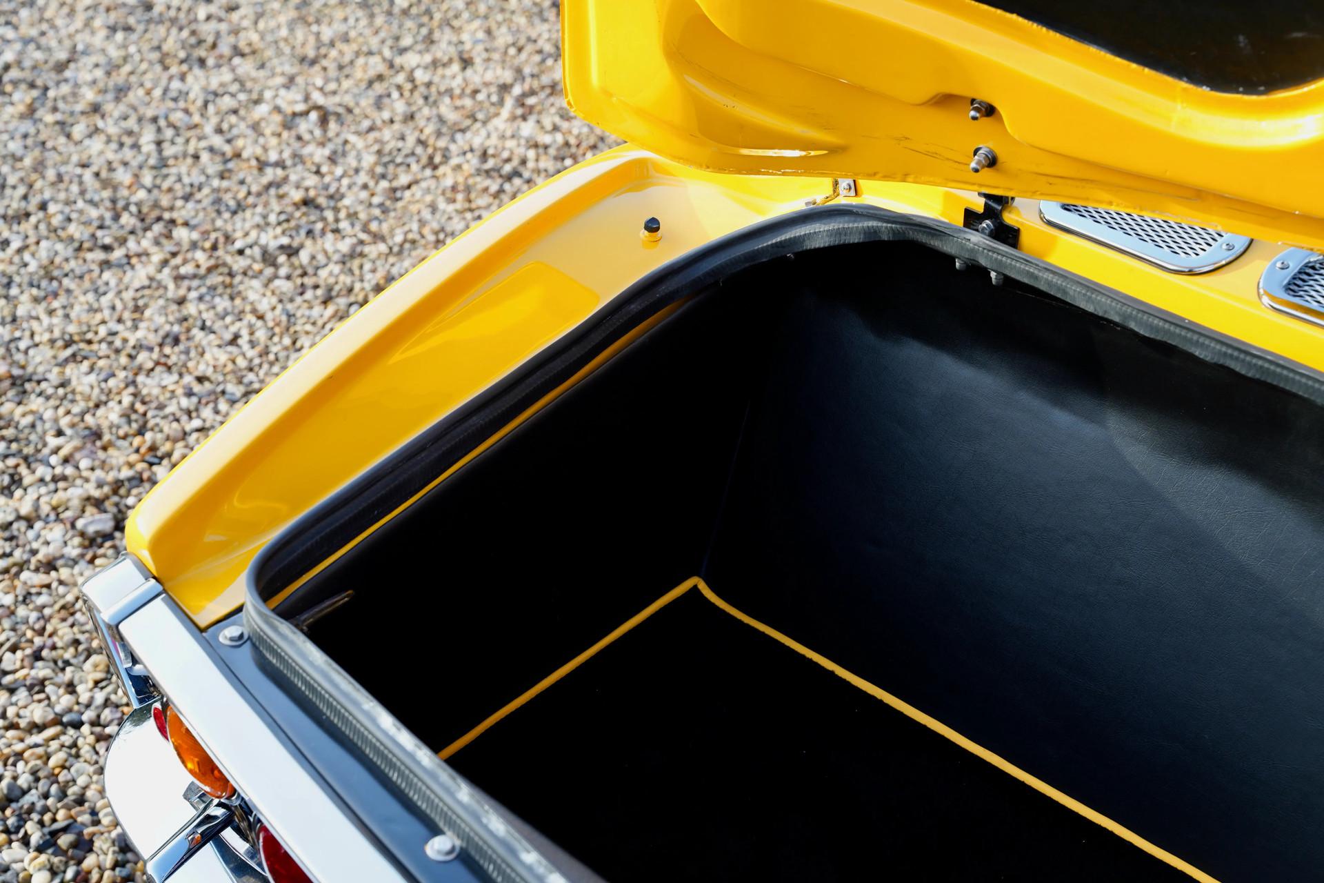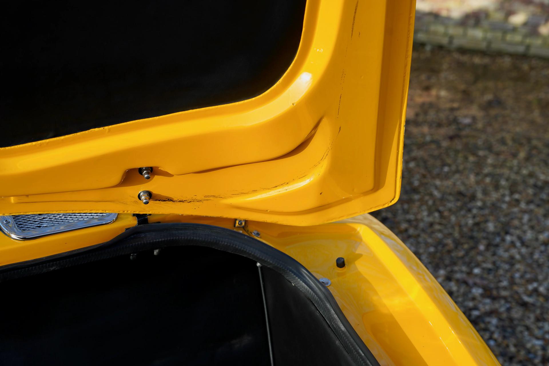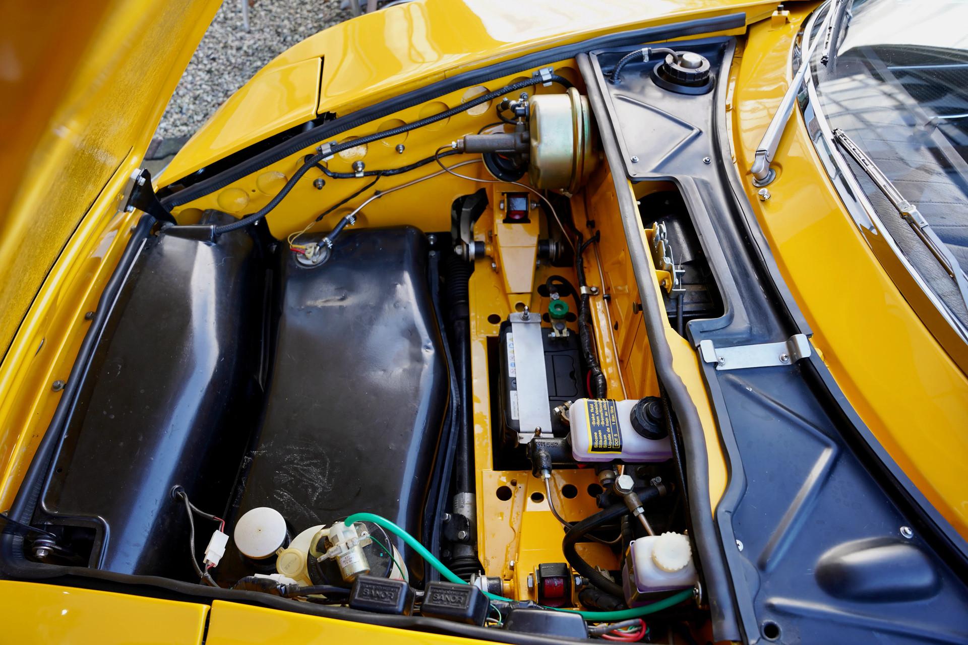 Our Matra is finished in that incredibly striking yellow hue, the same color featured in the original brochure included with this car. Speaking of which, it comes with a thick binder of documentation, ranging from original brochures to parts manuals. This example underwent restoration and overhaul work at a well-known classic car specialist, so it presents beautifully. The exterior boasts a tidy body with a lovely paint finish and an appealing gloss. The chrome bumpers look terrific, and the wheels appear fresh. Details such as the taillights and rubber components are all in neat condition. And if you've checked out the undercarriage photos on our website, you'll already have noticed that nothing was left untouched.