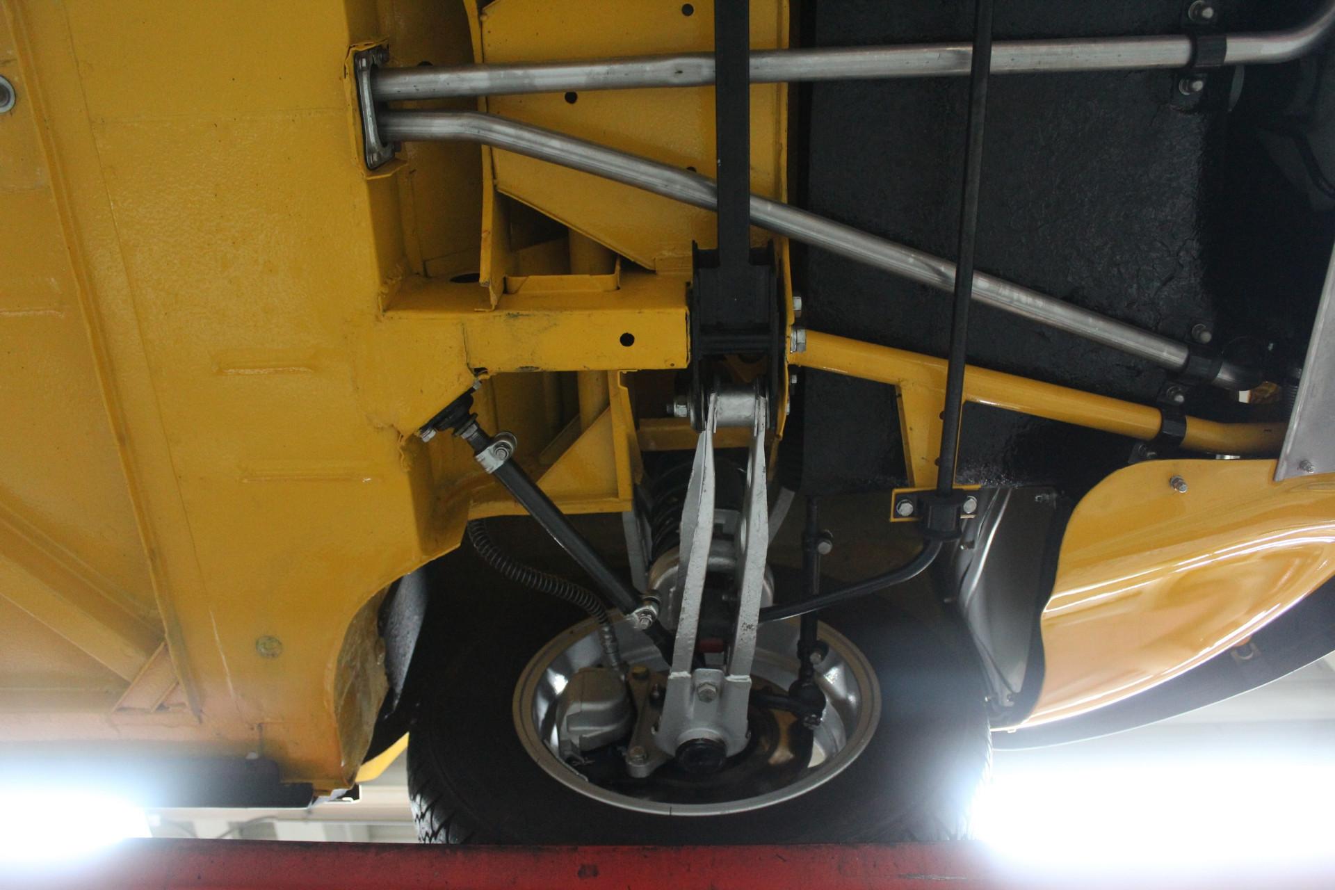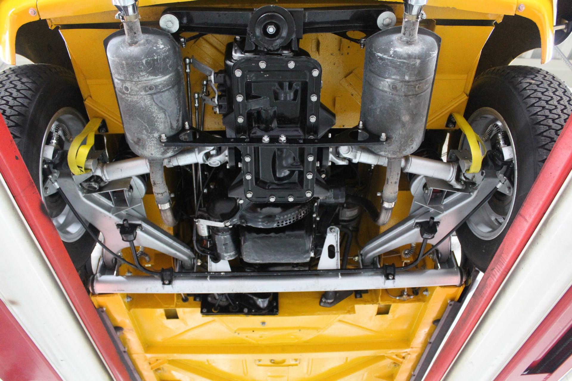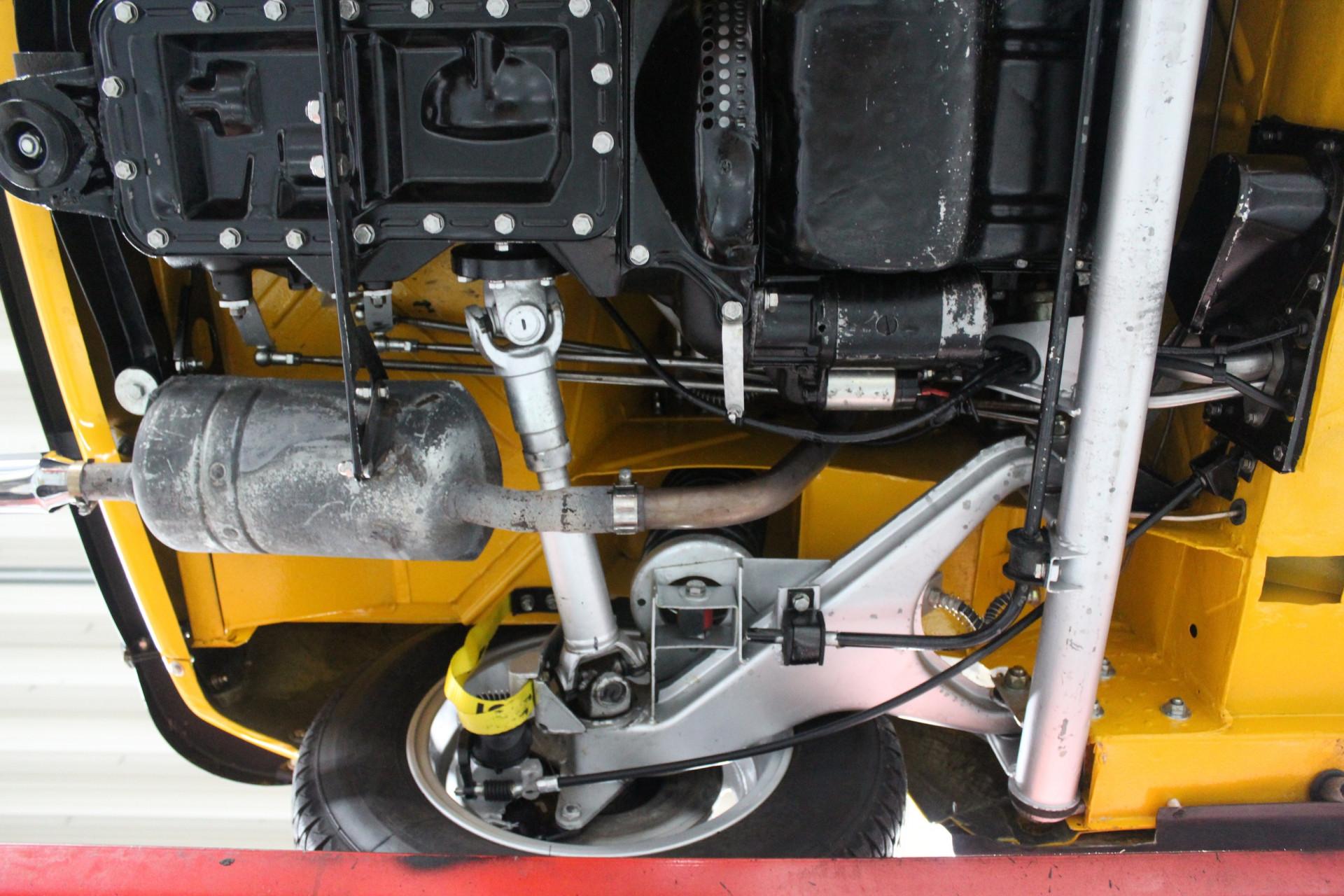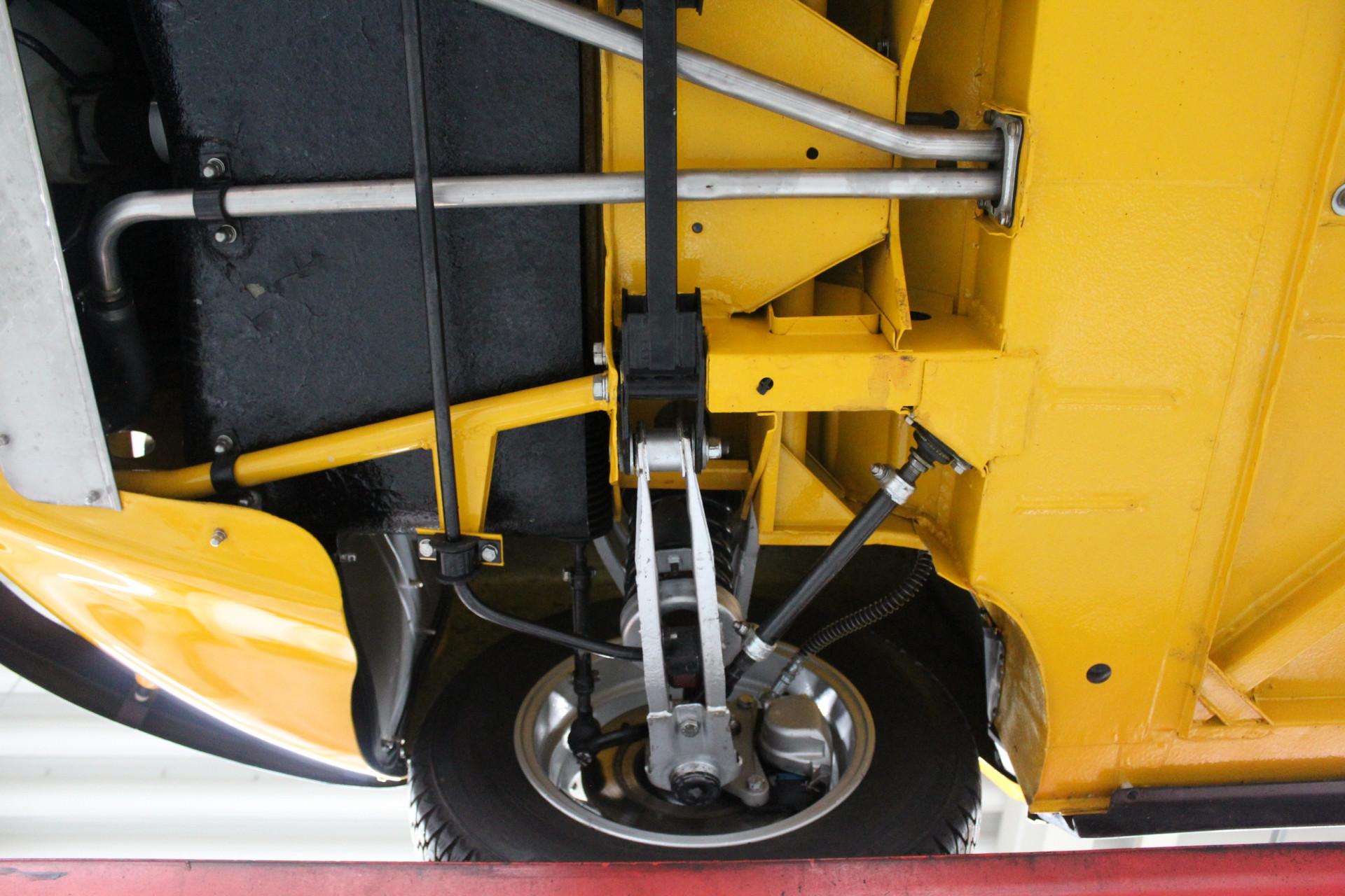 Our Matra is finished in that incredibly striking yellow hue, the same color featured in the original brochure included with this car. Speaking of which, it comes with a thick binder of documentation, ranging from original brochures to parts manuals. This example underwent restoration and overhaul work at a well-known classic car specialist, so it presents beautifully. The exterior boasts a tidy body with a lovely paint finish and an appealing gloss. The chrome bumpers look terrific, and the wheels appear fresh. Details such as the taillights and rubber components are all in neat condition. And if you've checked out the undercarriage photos on our website, you'll already have noticed that nothing was left untouched.