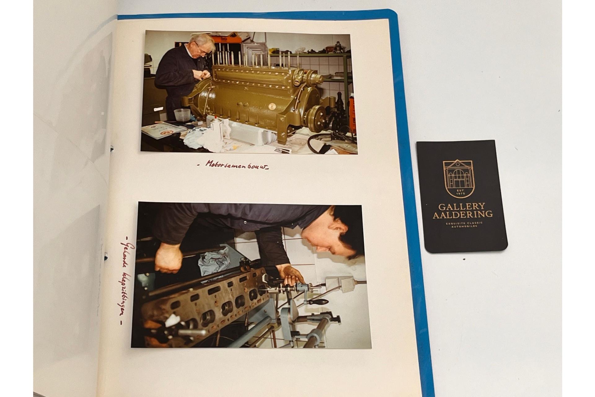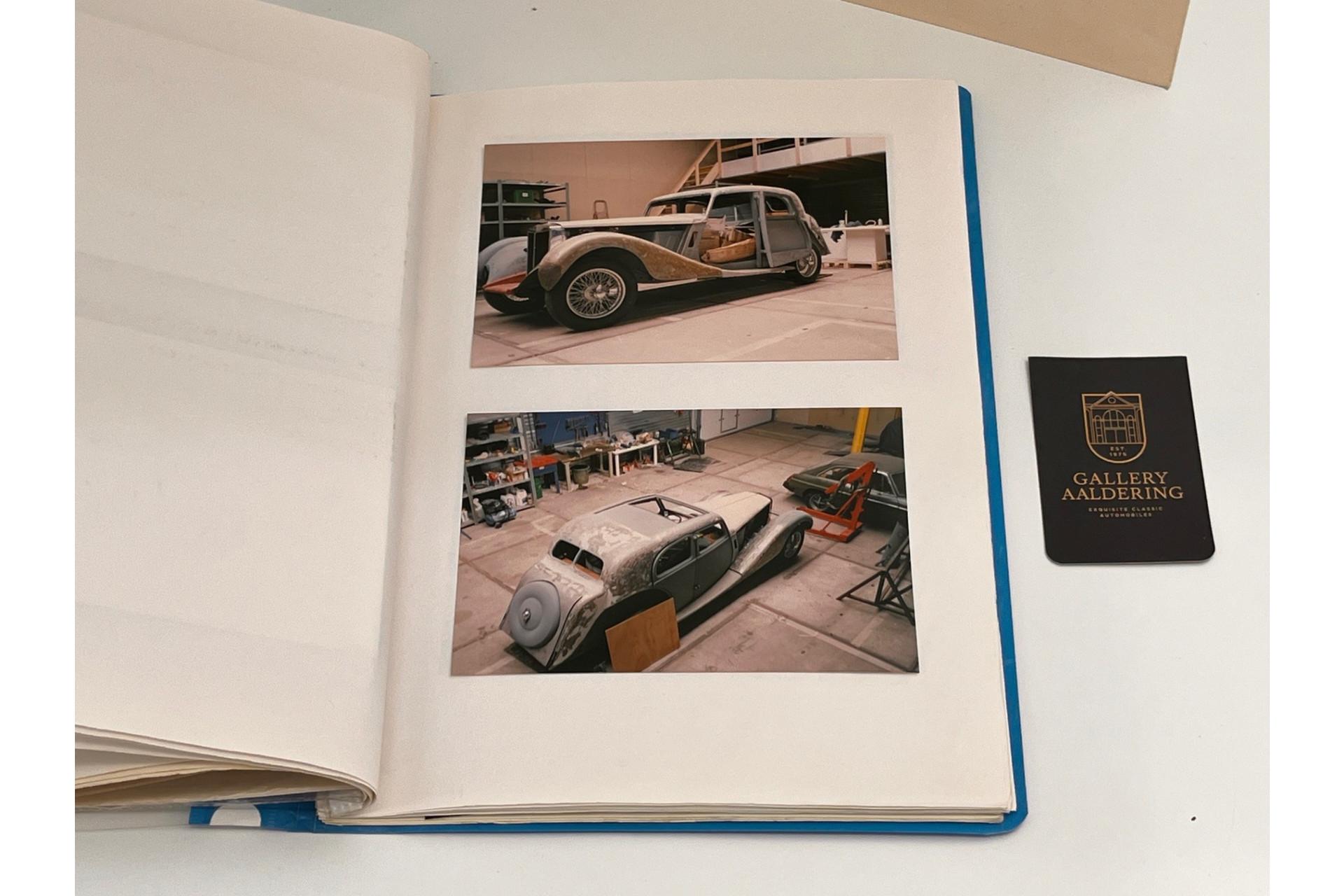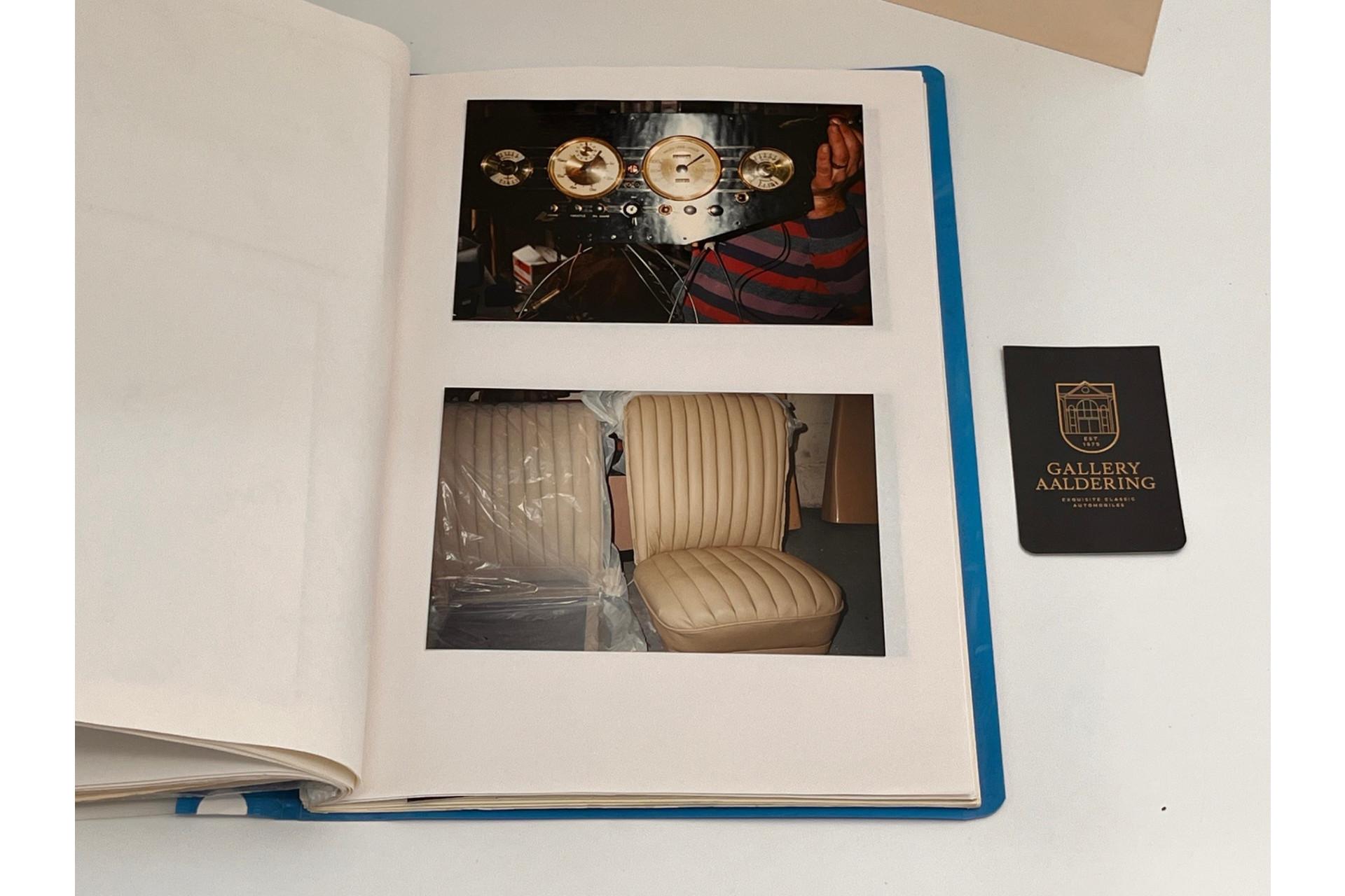 The bodywork is crisp and well-aligned, with the streamlined influences of the era perfectly captured in its design. The paint carries a deep, lustrous shine, and the brightwork gleams beautifully. The car is accompanied by extensive documentation, including the original owner's manual and photographic records of the restoration.