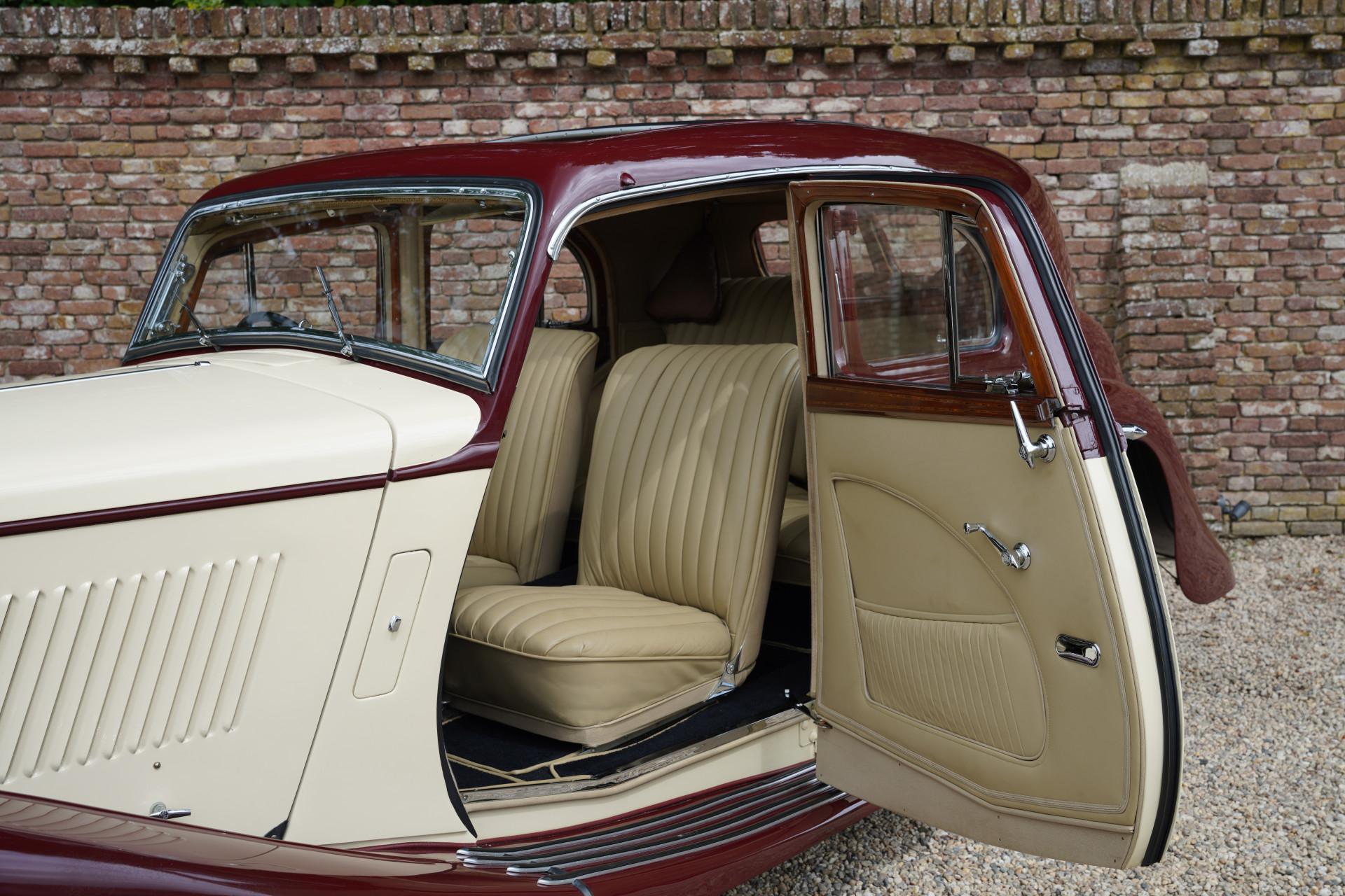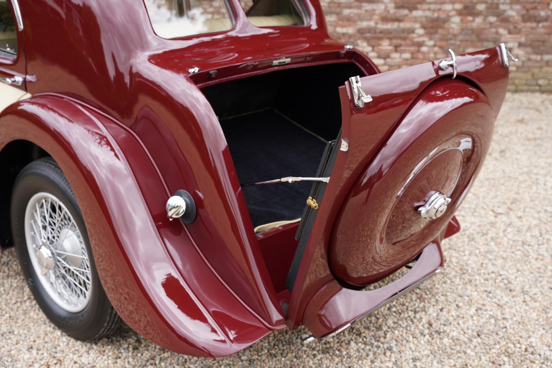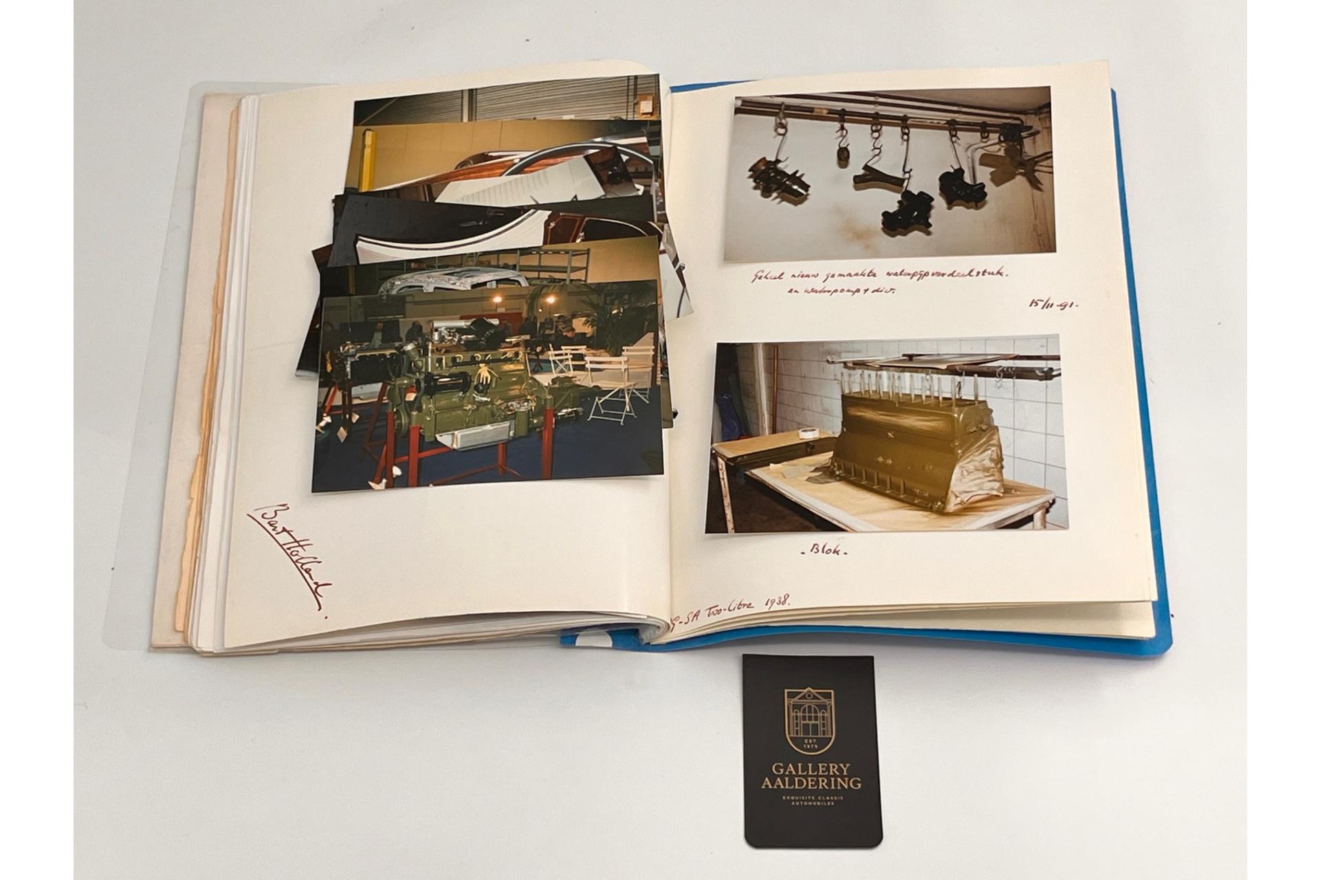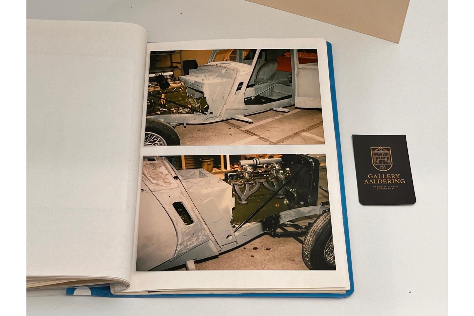 The bodywork is crisp and well-aligned, with the streamlined influences of the era perfectly captured in its design. The paint carries a deep, lustrous shine, and the brightwork gleams beautifully. The car is accompanied by extensive documentation, including the original owner's manual and photographic records of the restoration.