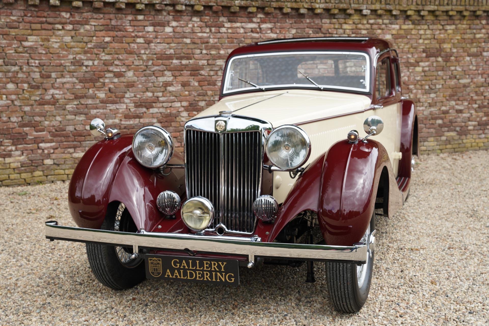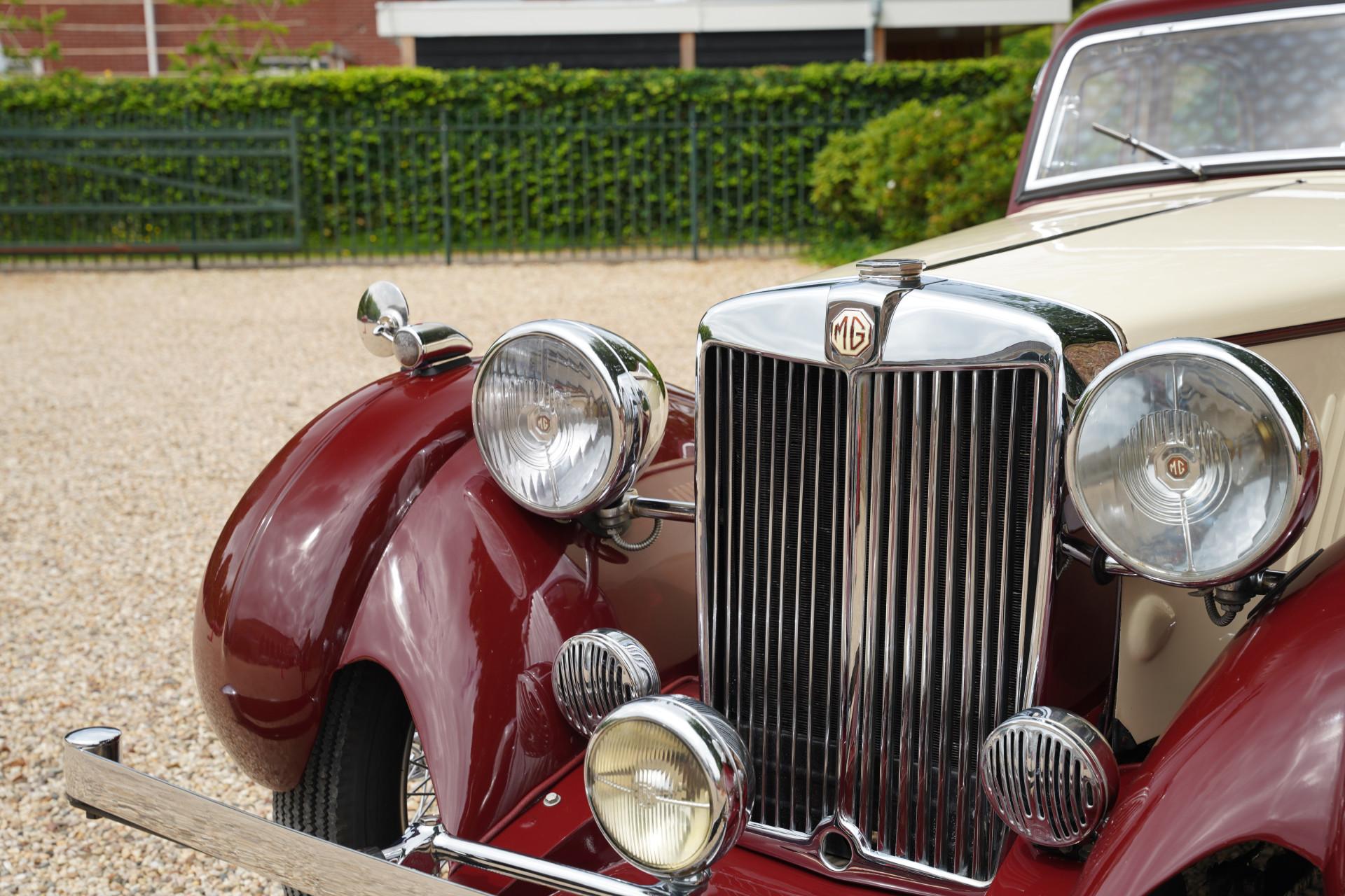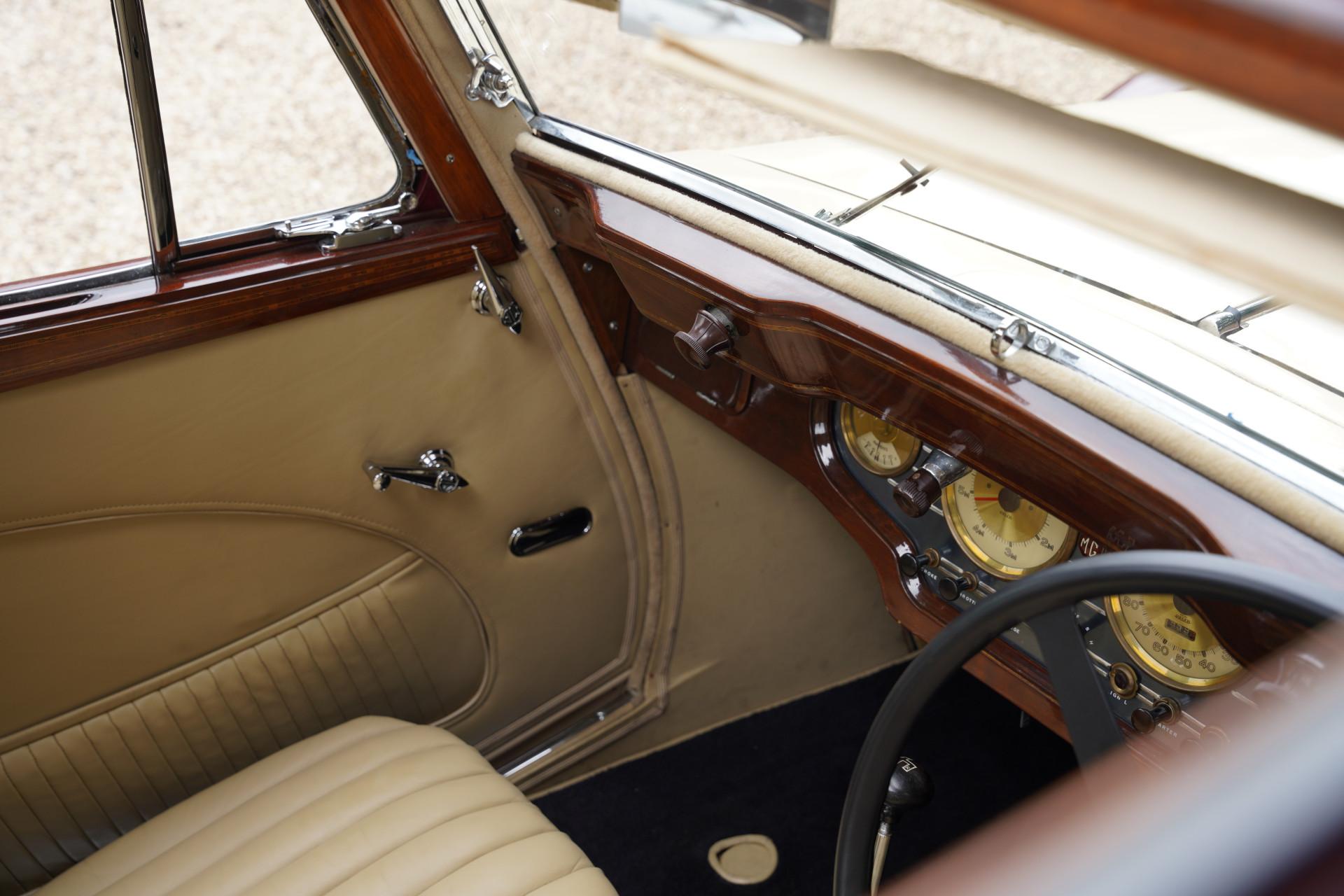 This 1937 MG SA Sport Saloon was fully restored in the 1990s by renowned specialist Bart Holland. Since then, it has been exceptionally well preserved, a fact that is evident in its elegant two-tone finish of Burgundy and “Cream Cracker.”