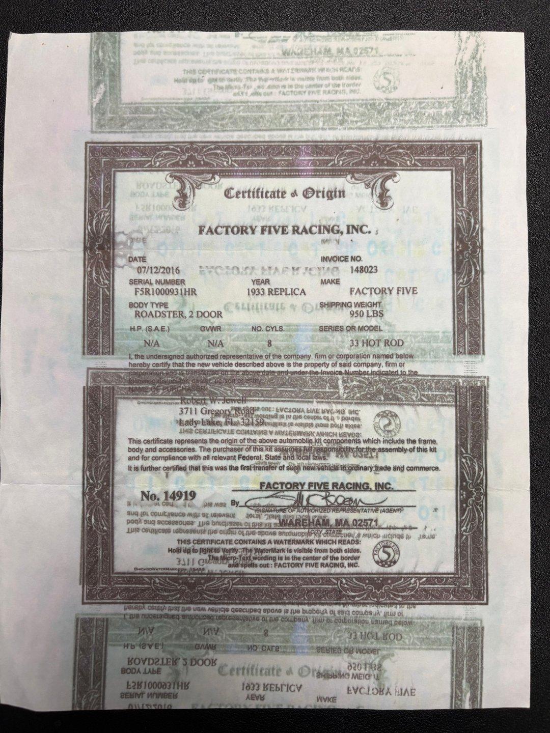 - VIN CodeF5R1000931HR