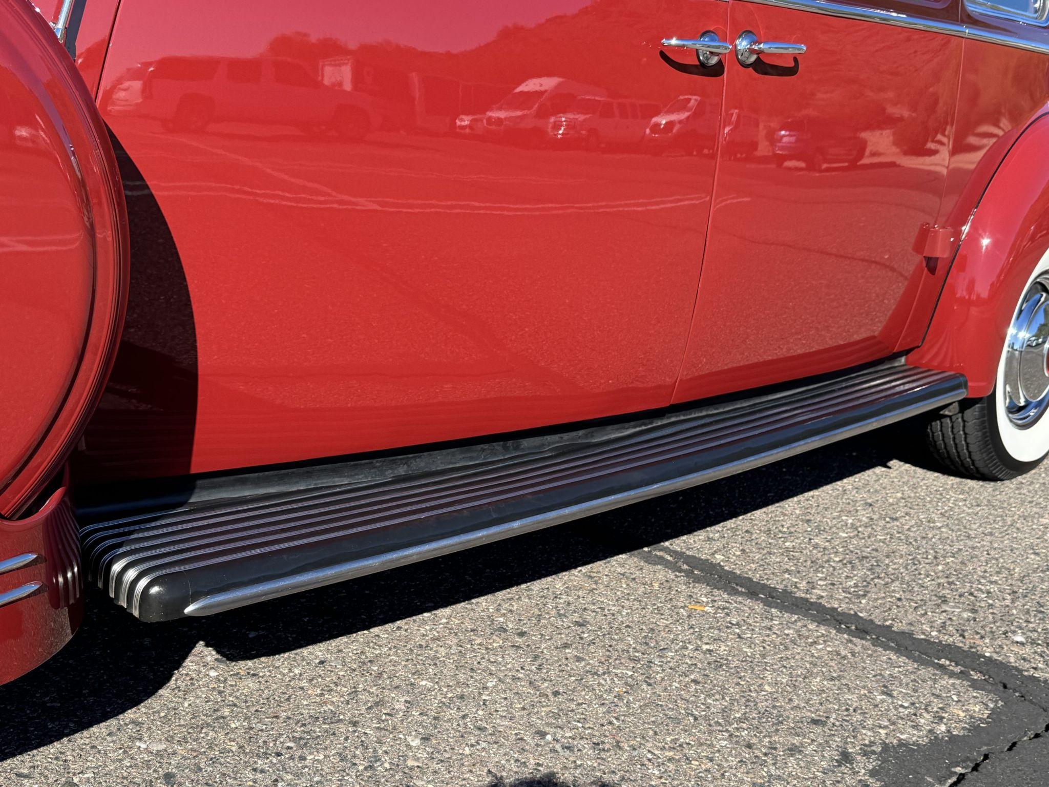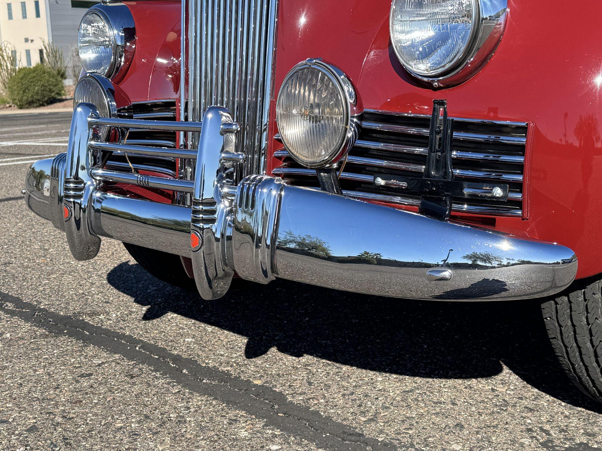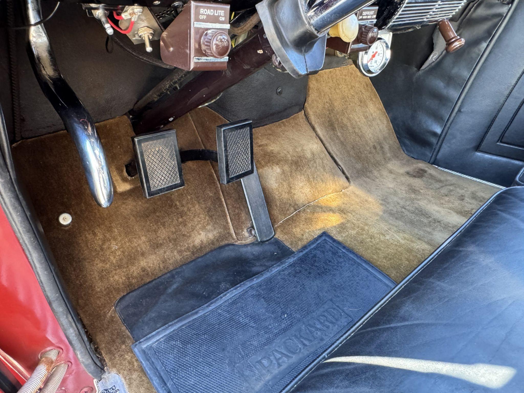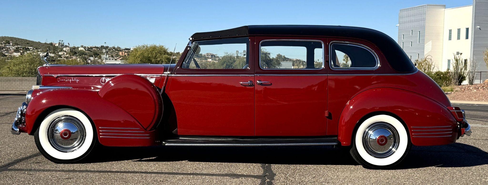 The 1942 Packard Super Eight One Eighty Rollson All-Weather Town Car is among the rarest and most desirable semi-custom Packards ever produced, representing the final chapter of Packards cataloged coachbuilt offerings. Built on the top-tier One Eighty chassis and powered by the exceptional 356-cubic-inch straight-eight, this Packard combines formal luxury with chauffeur-driven presence. Chassis 15502043 presents today as a beautifully mellowed, fully restored Full Classic with patina consistent with careful preservation. This Packard is ideal for tours, marque events, or as a standout entry at CCCA, AACA, or Packard club gatherings, where its extreme rarity guarantees attention. This Packard was completed in December 1941 and believed to be the final cataloged Packard town car. It is quite possibly the last cataloged Packard body style produced. The All-Weather Town Car was originally delivered new to the Cory family of New York, known for their innovations in the coffee percolator industry. Three examples were built at a price of $4,975, making the model accessible only to the most affluent buyers as America entered wartime production. The Packard has since passed through discerning owners, including a comprehensive seven-year restoration in the 1980s under Wyatt Peterson, who fabricated difficult-to-source components at a time when parts availability was limited. The Packard was acquired 2023 by the current owner who invested in further preservation and maintenance adding fewer than 250 miles with current mileage showing 42,565 miles. The exterior of the Packard presents in red with burgundy accents complete with the distinctive black leather covered hardtop which are in very good overall condition. The Packard has dual covered sidemounts, wide whitewall tires, and the original folding chrome luggage rack. The correct removable black canvas chauffeur top is in very good condition. Expected rock chips and minor wear on the running boards reflect normal use, while the body lines, trim, lenses, and formal proportions remain visually striking. All exterior lighting functions properly. The Packard maintains the dignified, authentic appearance from Rollson coachbuilder and would be welcome at local and regional shows! The chauffeurs compartment is trimmed in black leather paired with brown short-pile carpeting. The interior is in overall good condition from normal wear and use over the years with the front seat showing one tear and there is some fraying on the carpet. The instrument panel retains its Packard enamel emblem steering wheel and chrome trim with the original AM radio in place but nonfunctional. A secondary oil pressure gauge has been installed since the one on the dash does not work. The passenger compartment remains elegant in tan broadcloth with well-preserved jump seats, footrests, and attractive walnut trim, though the anterior vent panels show deterioration. The division glass is present, though its power mechanism operates inconsistently. Power windows function on the drivers side, and the cabin retains working dome lighting on one side as well as functional heater and defrost systems. Powered by Packards 356-cubic-inch straight-eight rated at 165 horsepower, the Packard retains the smooth and confident performance for which the One Eighty series is renowned. The column controlled three-speed manual transmission shifts cleanly, complimented by the Borg-Warner overdrive unit option, providing a higher gear ratio for highway cruising at lower engine speeds. The four-wheel drum brakes are in good working condition, and recent servicing included a fuel pump assembly replacement in July 2025. There is a 6V battery with the cutoff switch conveniently located under the driver's seat. The mechanical presentation reflects long-term preservation following the earlier frame-off restoration, making this an excellent candidate for continued touring or club events. Includes original Packard owners manual, partial maintenance, restoration and ownership records, some tools and small parts. For more information and details, please call or text Kendi Brown at 1.623.404.9042 or email us at sales@classicpromenade.com . This 1942 Packard Super Eight One Eighty Rollson All Weather Town Car is available for inspection at our showroom in Phoenix. We are pleased to offer FaceTime or WhatsApp live video inspections, and we help coordinate shipping worldwide. We also have financing partners if you are interested in financing.