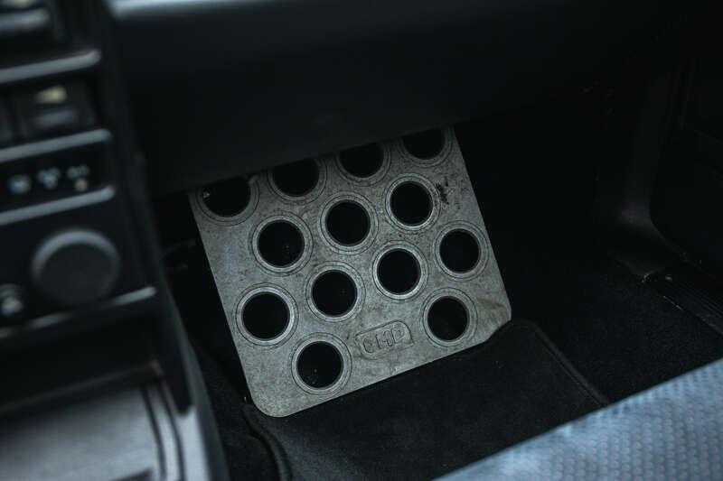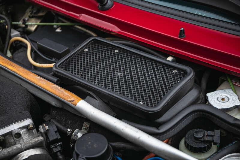 Named the Lancia Delta Integrale Evo II ‘Edizione Finale’, production was limited to just 250 examples, all finished in Rosso Amaranto (Bordeaux Red) with narrow yellow and blue stripes over the bonnet and roof. Influenced by the wildly enthusiastic Japanese ‘Deltisti’, who were inevitably going to be the biggest customers, the standard specification included high-back Recaro bucket seats, black fabric interior trim, 16” Speedline wheels finished in Anthracite, push-button start, carbon-fibre trim details, aluminium OMP pedals and passenger footrest, a Momo steering wheel, upgraded engine management to 250bhp, special Eibach springs front and rear, and an OMP strut brace. The engine and drivetrain were identical to the final Evo II, except for the upgraded engine management system, and retained permanent four-wheel drive.