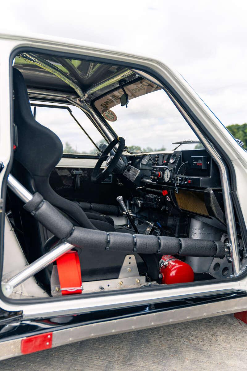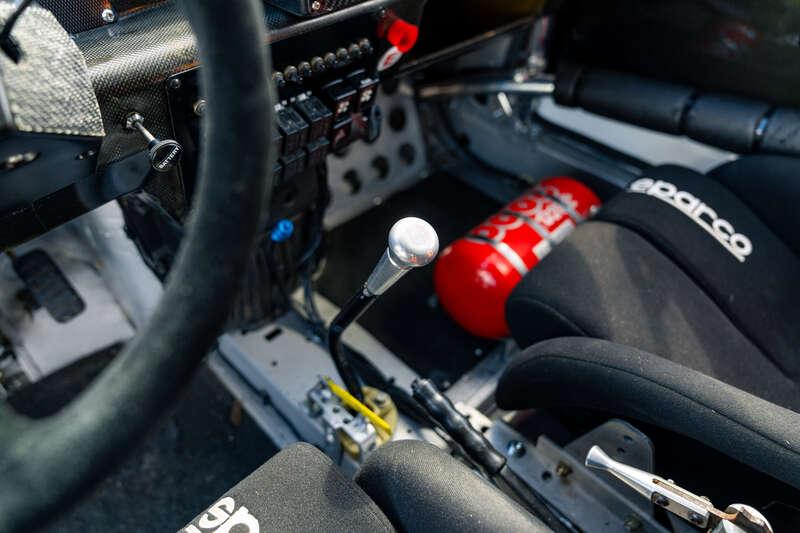 Mechanically, the car remains pretty much as it was at Prescott, with minor updates including slightly larger brake discs. It retains its genuine, factory body-shell, with original Kevlar, carbon-fibre, and aluminium panels preserved. The engine is a John Price Rallying 1527cc Maxi unit with Garratt T3 turbocharger, large-valve cylinder head, Bosch K-Tronic mechanical fuel injection, dry sump with remote oil cooler and intercooler, producing around 340bhp at 6,500rpm. The car is fitted with the factory Maxi magnesium-alloy gearbox, factory rally ratio gear-set, Maxi steering rack, Maxi brake discs, front steel suspension, Tour de Course rear alloy suspension uprights, and the original Matter aluminium roll cage.
