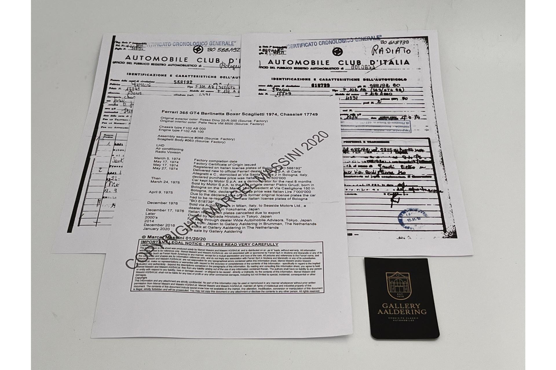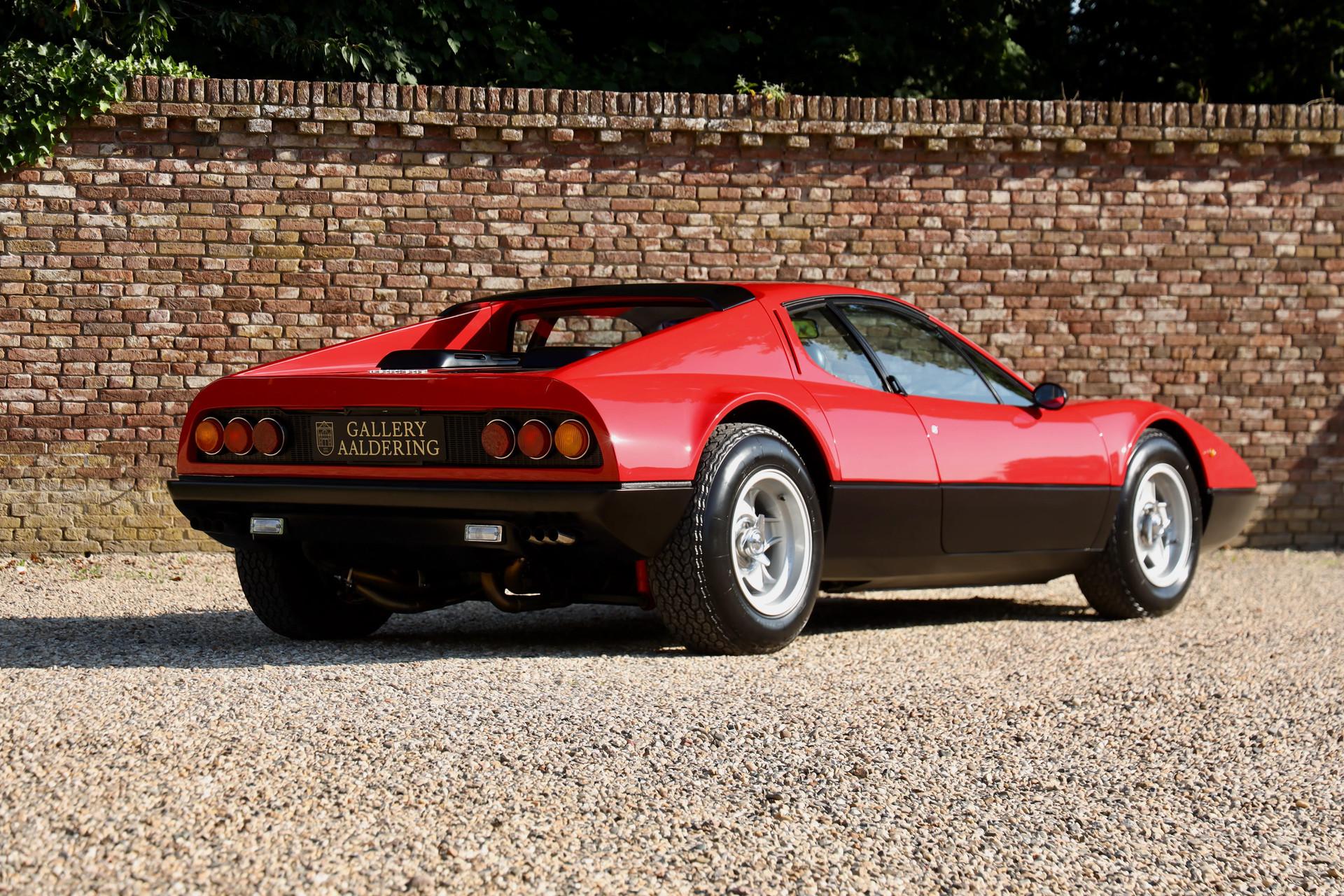 A wonderful Ferrari 365 GT4/BB aka the Berlinetta Boxer. This should not be confused with the later 512BB, which was modelled on the 365. The 365 BB was the first series produced Ferrari with a mid-engined 12 cylinder boxer engine. Over a three year course only 299 LHD Boxer Berlinetta Boxer's left the factory, making this BB the rarest of them all. Many details differ from the later 512 BB, like the six exhaust pipes, the characteristic 365 six rear taillights amongst various other body measurements and details. Production of this particular example was completed on the 5th March 1974. On the 27th May 1974 the Ferrari was delivered to the Italian Ferrari dealer Motor S.p.A. in Bologna. We still have a copy the original first registration document. Thanks to excellent care and maintenance this Ferrari has never been restored. The wonderful bodywork is nice and straight, well aligned with fine paintwork. The original underbody is completely rust-free. It has a 'Rosso' finish with a black leather interior trim. The interior trim is in a superbly original condition and excludes a lovely patina. It also has the popular 'Daytona' seats and Borletti aircon. Beautifull and fully original interior, first leather, original dashboard etc.! Original engine, perfectly working and driving. A legendary and now very rare first series Ferrari 365 GT4/BB Berlinetta Boxer. Gallery Aaldering is Europe's leading Classic Cars specialist since 1975! Always 300-350 Classic and Sportscars in stock, please visit www.gallery-aaldering.com for the current stock list (all offered cars are available in our showroom) and further information. We are located near the German border, 95 km from Düsseldorf and 90 km from Amsterdam. So easy traveling by plane, train, taxi and car. Transport and worldwide shipping can be arranged. No duties/import costs within Europe. We buy, sell and provide consignment sales (selling on behalf of the owner). We can arrange/provide registration/papers for our German (H-Kennzeichen, TÜV, Fahrzeugbrief, Wertgutachten usw.) and Benelux customers. Gallery Aaldering, Arnhemsestraat 47, 6971 AP Brummen, The Netherlands. Tel: 0031-575-564055. Quality, experience and transparency is what sets us apart. We look forward to welcoming you in our showroom