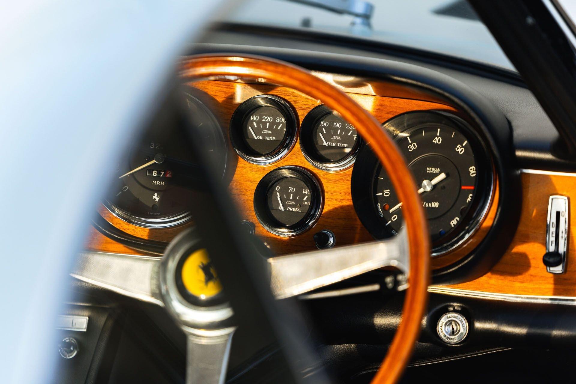 Engine No. 12721 This exceptional Ferrari 365 GTC, which publicly debuted at the London Motor Show and later formed part of rock legend Eric Clapton’s collection of important Ferraris, is a rare right-hand drive example with documented provenance that few examples can match. Just 168 examples of the more powerful, 4.4-liter V12-powered 365 GTC were built over a two-year period, with just 22 of those being completed in right-hand drive configuration. Chassis number 12721 is one such right-drive example, completed in 1969 wearing its current Bianco Polo (Polar White) and Pelle Blu (blue leather) livery and dispatched to Maranello Concessionaires Ltd. in Great Britain where it was due to appear at that year’s London Motor Show at Earl’s Court. It was subsequently delivered to its first private owner, a Mr. J.R. Knowles of Reading, who registered the car “APJ 14H” and had it diligently maintained by Maranello Concessionaires throughout his tenure, with an impressive file of maintenance records dating back to 1973. By 1987, the Ferrari had passed to a Mr. P.A. Teichman, who commissioned a complete restoration by the respected Phil Wood Specialist Services under the direction of Nick Cartwright, with all invoices preserved on file. Five years later, Mr. Peter Lloyd of Oxshott, Surrey, acquired the 365 GTC and promptly arranged a bare metal respray in silver by Maranello Concessionaires in 1993, at which time the odometer recorded just 23,373 miles. Mr. John Devine of London became the car’s next custodian in 1997, entrusting ongoing care to both Maranello Concessionaires and DK Engineering. The car was then briefly acquired by Raoul San Giorgi of Belgium before passing to rock legend Eric Clapton in 2003. The guitar virtuoso, whose passion for Ferrari was famously ignited by George Harrison's dark blue 365 GTC, commissioned DK Engineering to conduct a repaint in silver during his stewardship, with the odometer reading 28,374 miles at that time. Following its tenure in Clapton’s stable of rare Ferraris, Mr. Shamir Deen of Wembley acquired the Ferrari in 2006, changing the registration to “ENZ 365.” In 2010, the Rohan Fernando Family Foundation in Jersey purchased the car and presented it at the Goodwood Festival of Speed before undertaking a thoughtful restoration to its attractive original color scheme of Bianco Polo with Pelle Blu interior. In 2013, the 365 GTC was acquired by a new British owner who used the Ferrari sparingly over the following years, with Barkaways in East Peckham performing work in 2018 alongside maintenance by his dedicated collection mechanic. The current owner acquired the car in 2020 and has continued the tradition of regular maintenance, with all servicing handled by a full-time collection technician. Significantly, the car holds Ferrari Classiche certification, presented in the coveted “Red Book,” confirming its matching-numbers status. Furthermore, it is accompanied by an impressive and detailed history file containing invoices and MOT certificates dating back to the 1970s, validating the believed genuine mileage of 32,395 miles from new at the time of consignment. With its potent 320-horsepower V12 delivering the quintessential Ferrari Gran Turismo driving experience, decades of enthusiast ownership, and exceptional rarity as a right-drive example, chassis 12721 would be an ideal entrant to Ferrari Owners’ Club of Great Britain events and an ideal touring companion—equally at home on the show field as it is covering long distances with effortless pace and refinement.