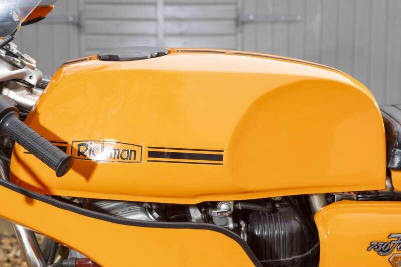 In 1974, the Rickman brothers introduced the CR kit for the Honda CB750, based on their bespoke Reynolds 531 manganese chrome-molybdenum tubing frame which was designed to take the CB750 engine