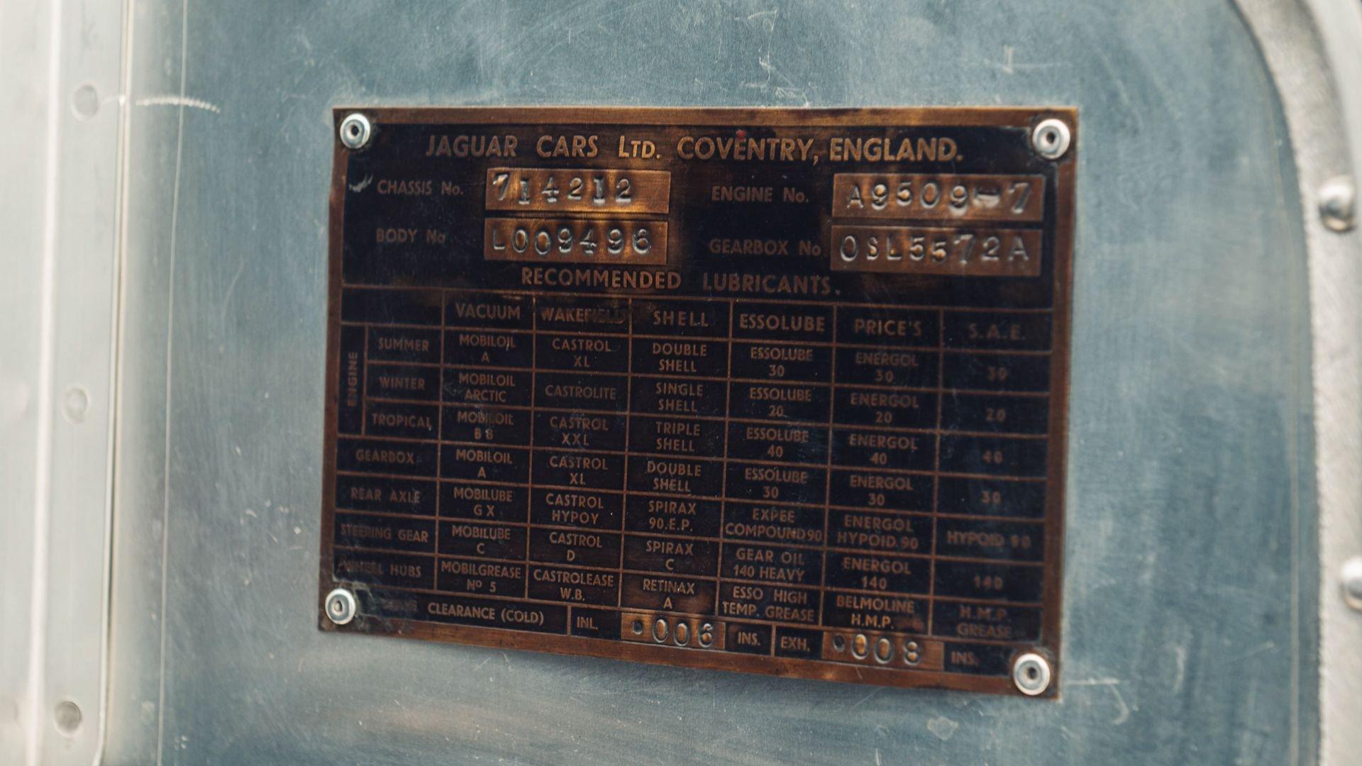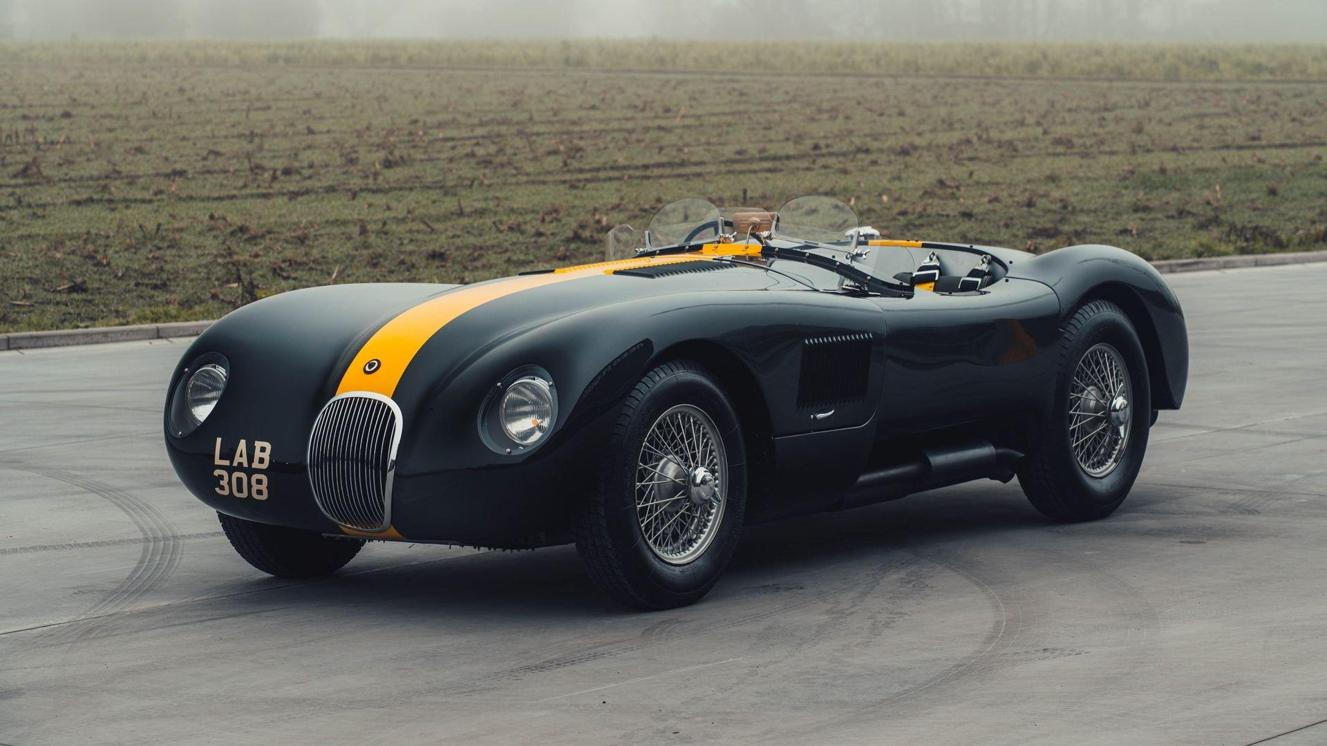 Chassis No. 714212 Engine No. A9509-7 Among the most respected names in the world of Jaguar recreations, Lynx Motors earned its reputation the hard way, first as a repair and restoration specialist for original Jaguar C- and D-Types before turning that intimate knowledge into exquisitely executed recreations. Often described as "tool-room copies," Lynx-built recreations are renowned for their authenticity, constructed using original factory blueprints and traditional coachbuilding techniques employed by Coventry’s craftsmen in the 1950s. The 1952 Jaguar C-Type Recreation offered here was commissioned new by the current owner, a Belgian collector of ‘50s and ‘60s competition cars, in 2010, created to capture the uncompromising driving experience of Jaguar’s two-time 24 Hours of Le Mans winner. Importantly, the donor car was a Jaguar Mark VII Saloon, meaning this Lynx is powered by a period-correct 3,442-cc DOHC straight-six XK engine breathing through twin S.U. carburetors. Finished by XK Engineering as it presents today, the car wears a period-appropriate shade of British Racing Green, sourced with the help of the Jaguar Heritage Trust to match the exact hue used in period, set off beautifully by a yellow center stripe. In total, the bespoke build cost £110,000—quite a sum in 2010! Upon completion, it was issued an FIA Historic Technical Passport in January 2011, certifying full compliance with period C-Type specifications and confirming eligibility for FIA-sanctioned historic racing events. Though expired at the time of cataloging, renewing this passport could open doors to some of the historic racing’s most coveted grids if accepted, such as the Goodwood Members’ Meeting, Masters Historic Racing, or Peter Auto events including Dix Mille Tours, Spa Classic, and Le Mans Classic. Accompanied by a previous U.K. V5 registration document, this C-Type could also readily obtain EU road registration, which would make it eligible for prestigious road rallies such as the Modena Cento Ore.