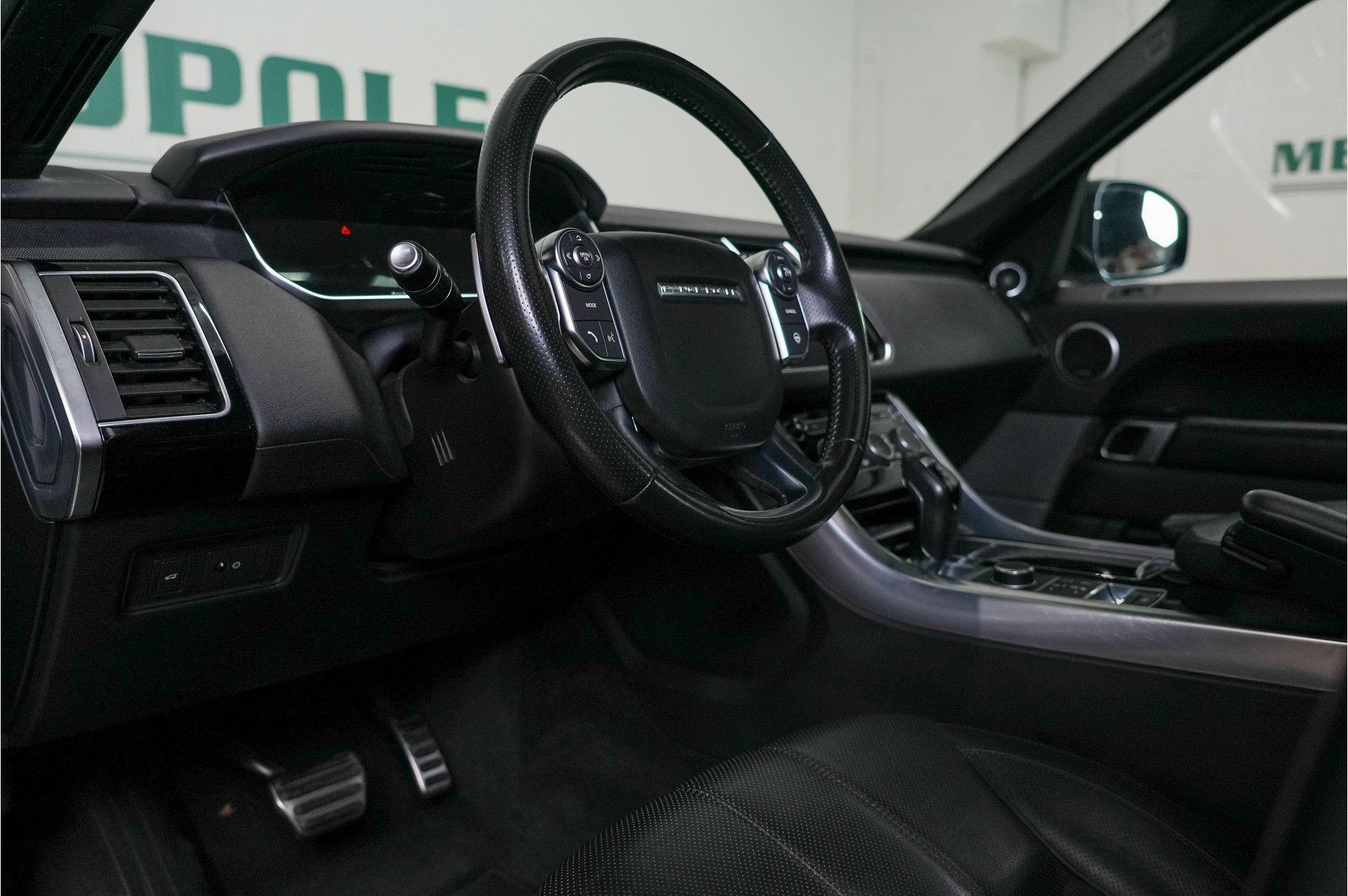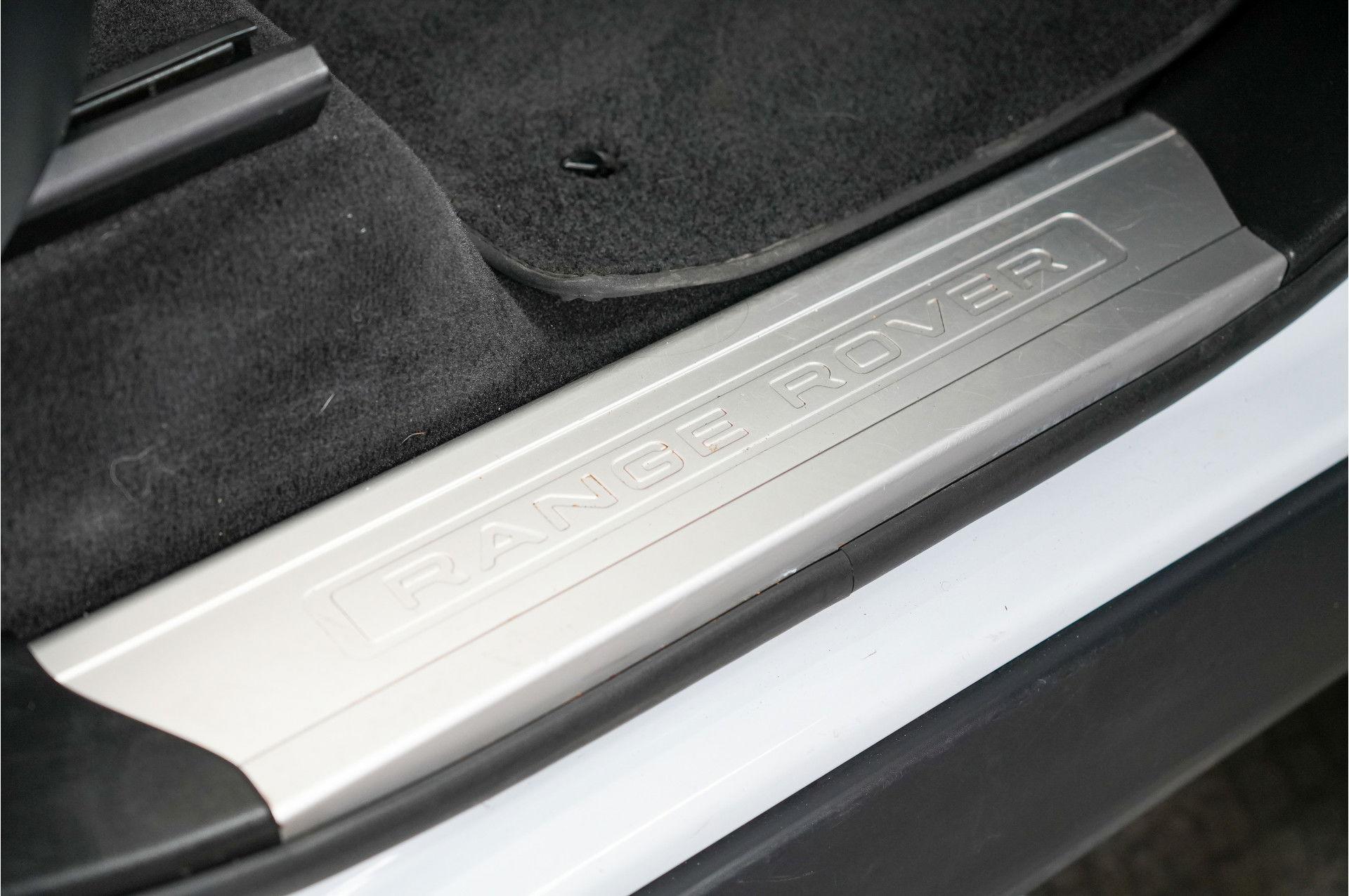 This Range Rover presented here is a super-luxury car, finished in beautiful white with stunning, luxurious black leather upholstery. The interior is still very nice. We also see the automatic transmission and the superb Meridian sound system! On the outside, the beautiful rims stand out, followed by the red brake calipers. The Range Rover is also equipped with a sunroof and electric seats, further enhancing its chic appearance.