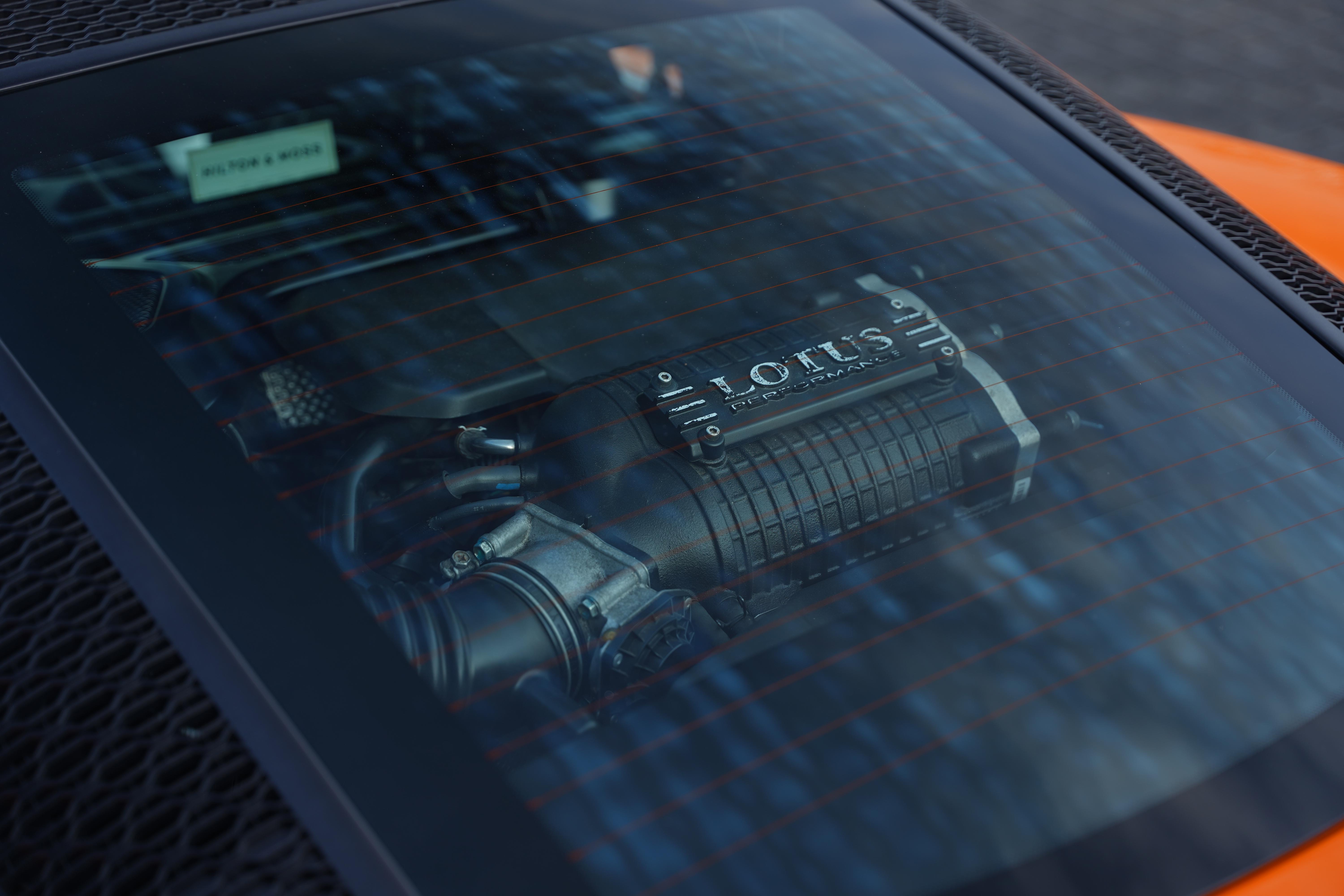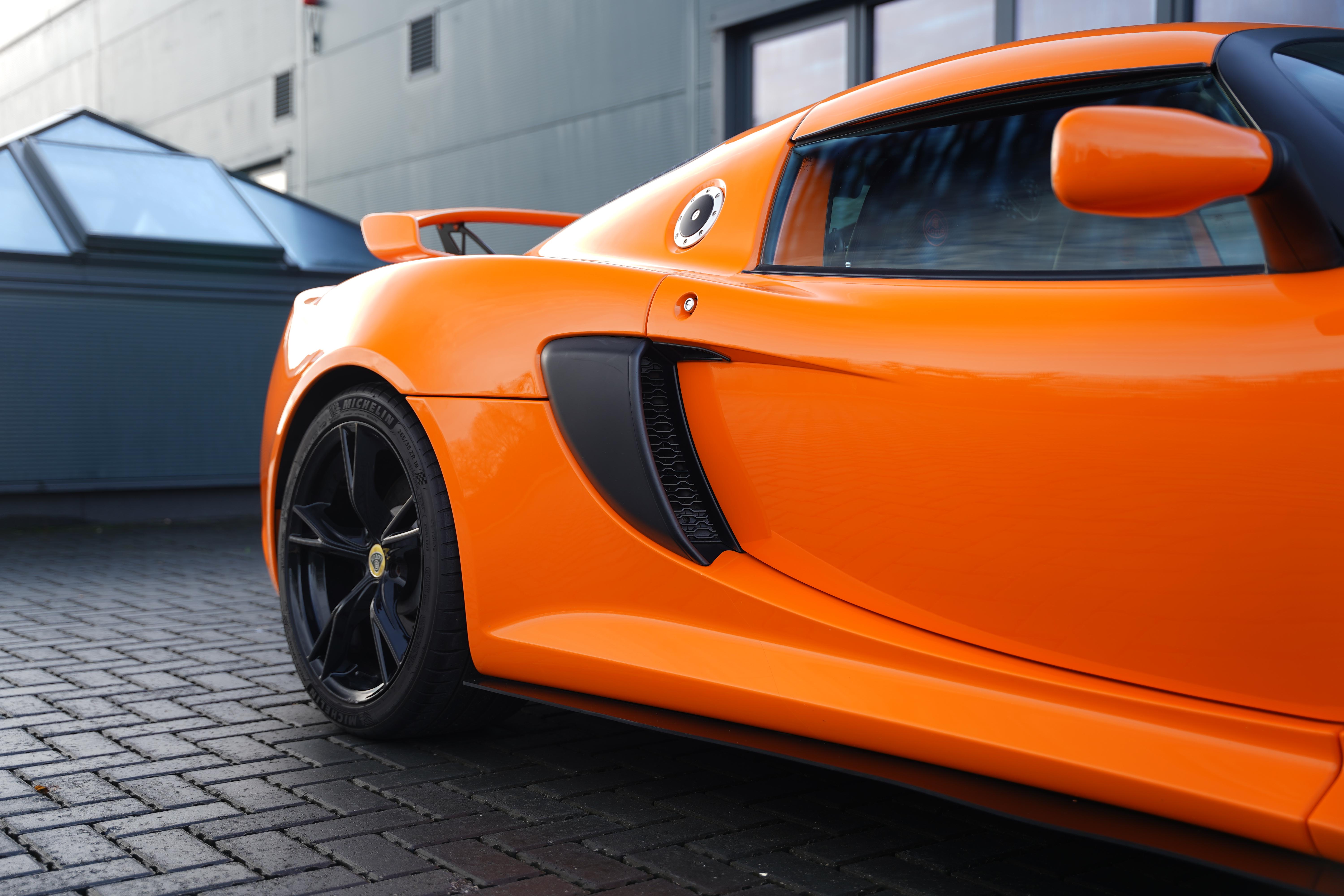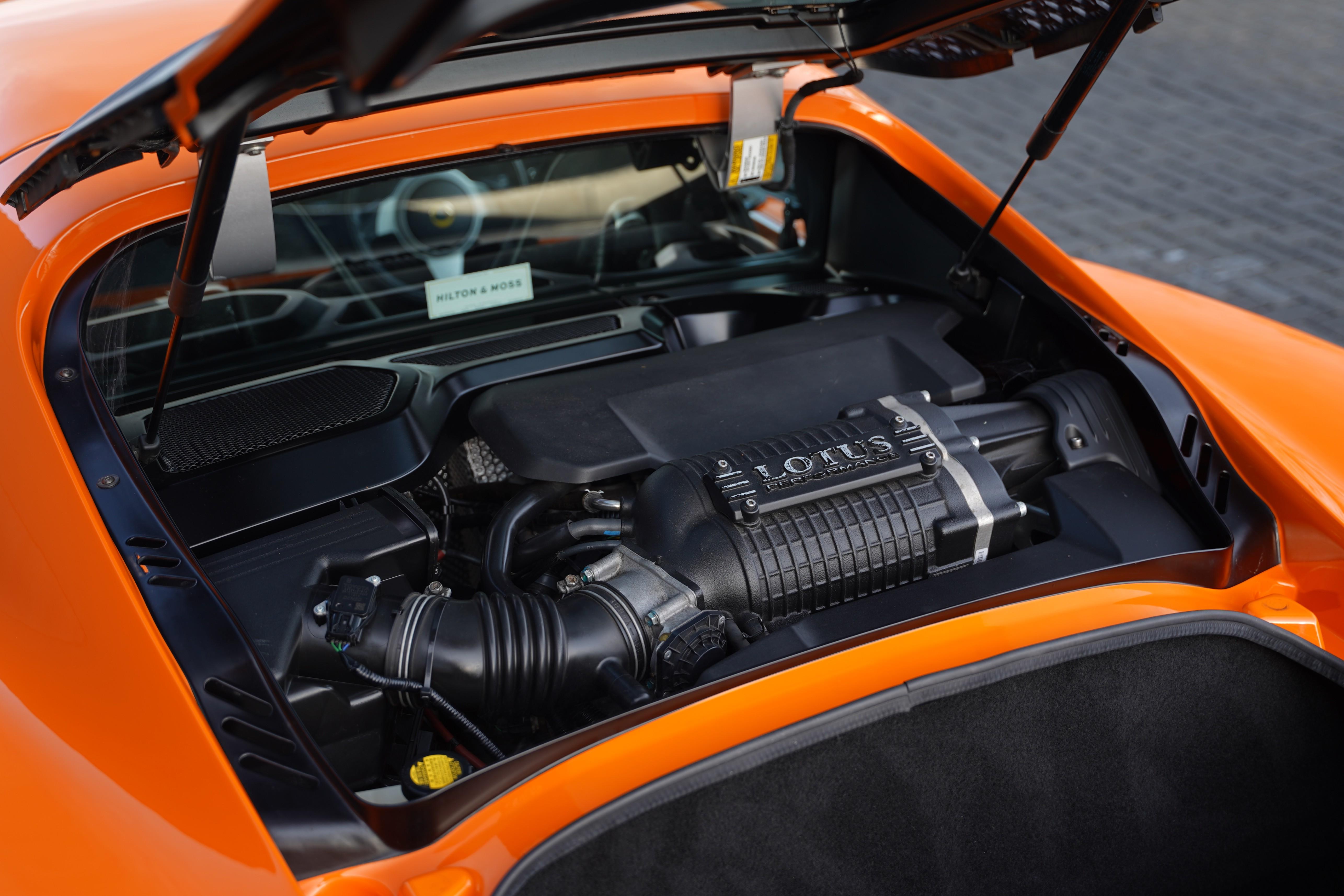 This particular Exige was first registered in February 2015 and has covered just 23,600 miles in this time. The car is finished in Lotus Metallic Orange with contrasting gloss black alloy wheels and brake calipers. The interior is finished in black Alcantara/leather and an orange contrast stitch runs throughout.