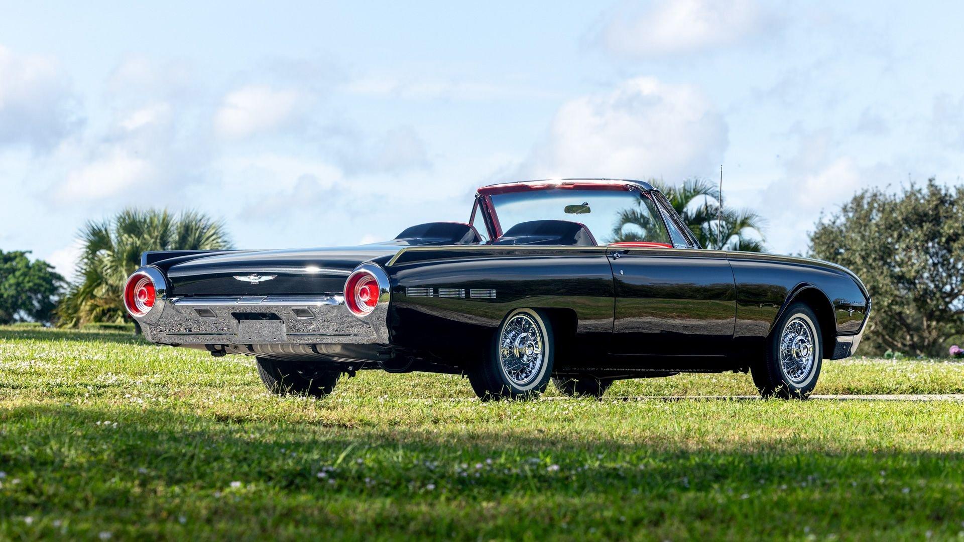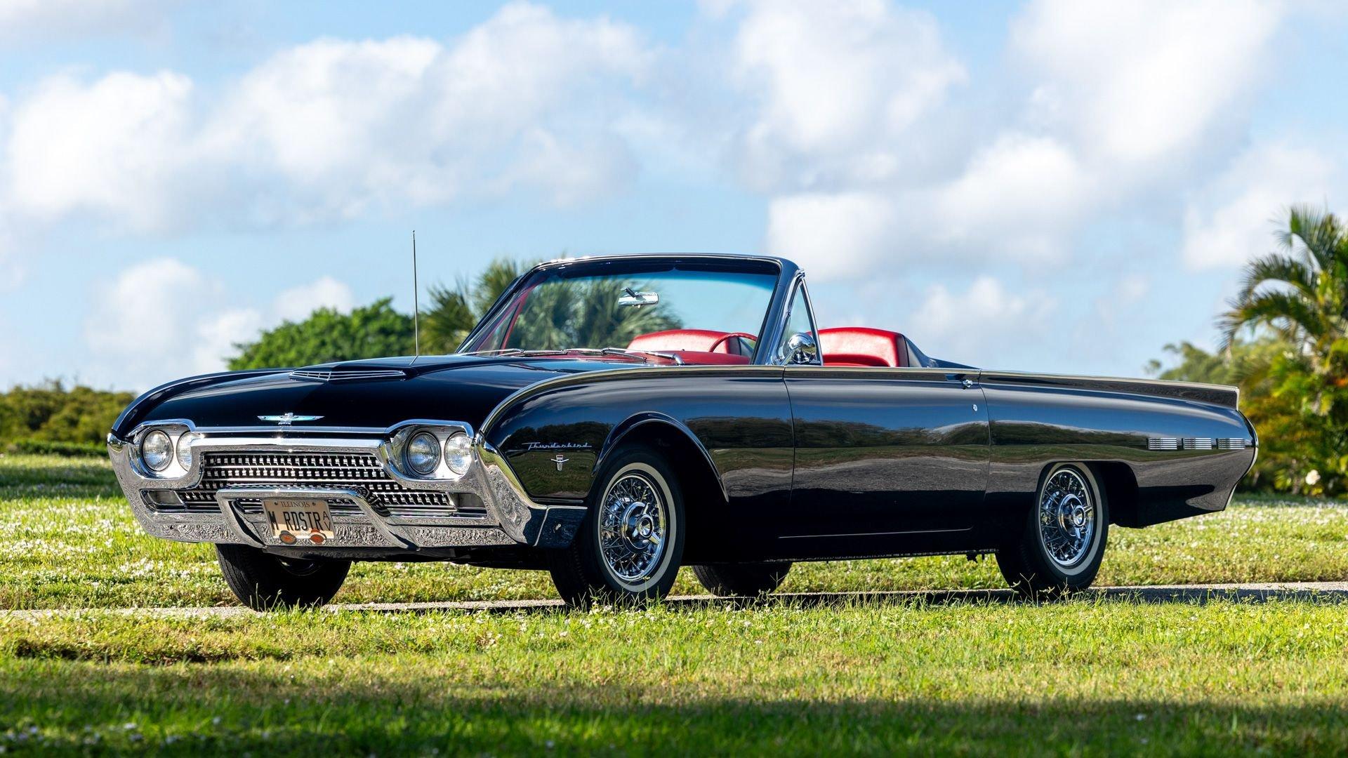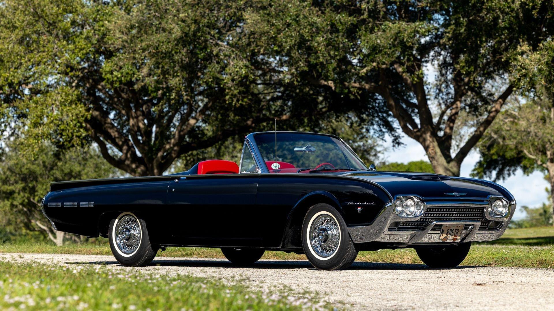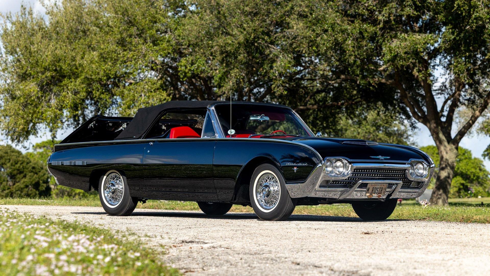 Chassis No. 2Y89M149460 The original Ford Thunderbird debuted in 1955 as a stylish, performance-minded two-seat roadster—prioritizing comfort, flair, and V8 power. After three years of the short-lived second generation “Square Bird,” the third generation "Bullet Bird" arrived in 1961, harkening back to the beloved original with a modern twist. For 1962 the limited-production two-seat Sports Roadster was distinguished by its fiberglass rear tonneau, passenger-side grab handle, chrome badging, fender skirt delete, and Kelsey-Hayes chrome wire wheels. Built only in 1962 and 1963, it became one of the era’s most exclusive Thunderbirds. Of the 1,427 produced for 1962, just 120 received the rare M-Code high compression 390 cu-in “Tri-Power” V8 with triple Holley carburetors, making them the most coveted of all. Focusing on rare and limited production variants, it was only natural for the renowned Ford and Lincoln collector Jerry Capizzi to add this exceptional M-Code Sports Roadster to his collection. Capizzi demanded the best and, as a result, it was treated to a full and comprehensive restoration to return the car to better than new condition. Restored in stunning Raven Black over a Red interior, it was rewarded with success at shows across the country, earning First Place as well as the Larry Seyfarth Best of Show award at the 1993 Vintage Thunderbird Club International (VTCI) National Convention. A slew of AACA awards followed, including its First Junior at the AACA Central Division Spring Meet in Clear Lake, Iowa, then its Senior Award at the Eastern Division Fall Meet in Hershey, Pennsylvania, and a First Place Senior at the 1994 VTCI National Convention in Syracuse, New York. Additional AACA honors follow in 1995 and 1996 with a Grand National First Place at the Annual Grand Nationals in Moline, Illinois and a Senior Grand National during the Annual Grand Nationals meet in Huntsville, Alabama—the club's highest honors and toughest to receive. Capizzi’s success showing his cars was so prolific it was often said that the other entrants in his class were only there to fight over second place! One of just 120 M-Code Sport Roadsters ever produced, this powerful and luxurious Thunderbird is no doubt one of the finest examples currently on offer. Displaying just 105 miles since its restoration over 30 years ago, the car is noted to still look fresh today. Its highly decorated AACA and VTCI pedigree coupled with marque expert Jerry Capizzi’s long-term ownership marks this rare Bullet Bird as a special find for those seeking only the most intriguing and beautifully restored mid-century American collector cars.