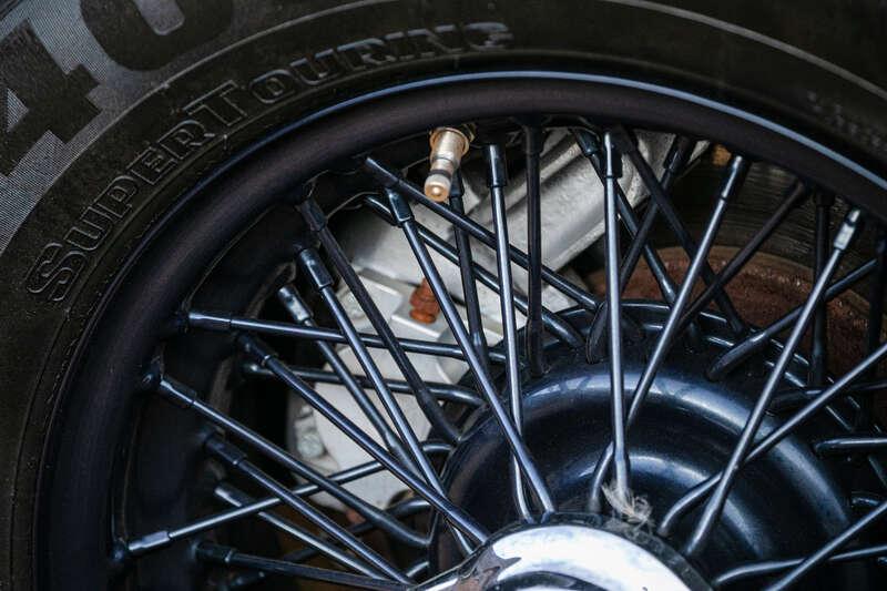 Complementing the powertrain is a range of mechanical upgrades designed to bring handling and braking in line with the performance on offer. These include larger brakes, uprated anti-roll bar, a limited-slip differential, and GAZ shock absorbers. Steering is transformed by a Vicarage rack and pinion setup with EZ electric assistance, vastly improving feedback and precision over the original system. The car sits on body-coloured 6x15 outer-laced competition wire wheels shod with grippy Pirelli P4000 205/70 R15 tyres, offering both visual appeal and enhanced roadholding.