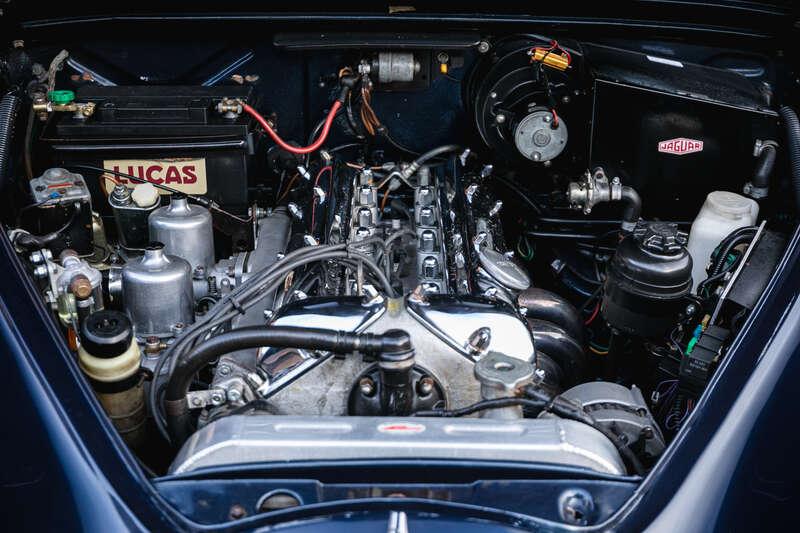 Originally delivered as a 2.4-litre automatic from Jaguar’s Browns Lane factory, this MK2 has been the subject of a comprehensive and well-documented transformation that elevates it far beyond its standard specification. At the heart of the car lies a period-correct but extensively modified 4.2-litre XK engine, benefitting from a lightened and balanced flywheel, fast road camshaft, and straight-port cylinder head. Twin 2” HD8 SU carburettors with open trumpets ensure ample air intake, while a stainless steel six-branch manifold handles the exhaust with efficiency and style. The engine bay also features modern enhancements including a 123 electronic ignition system, upgraded alloy radiator and a subtly louvered bonnet to aid cooling – each selected to improve reliability without compromising the car’s period appearance.