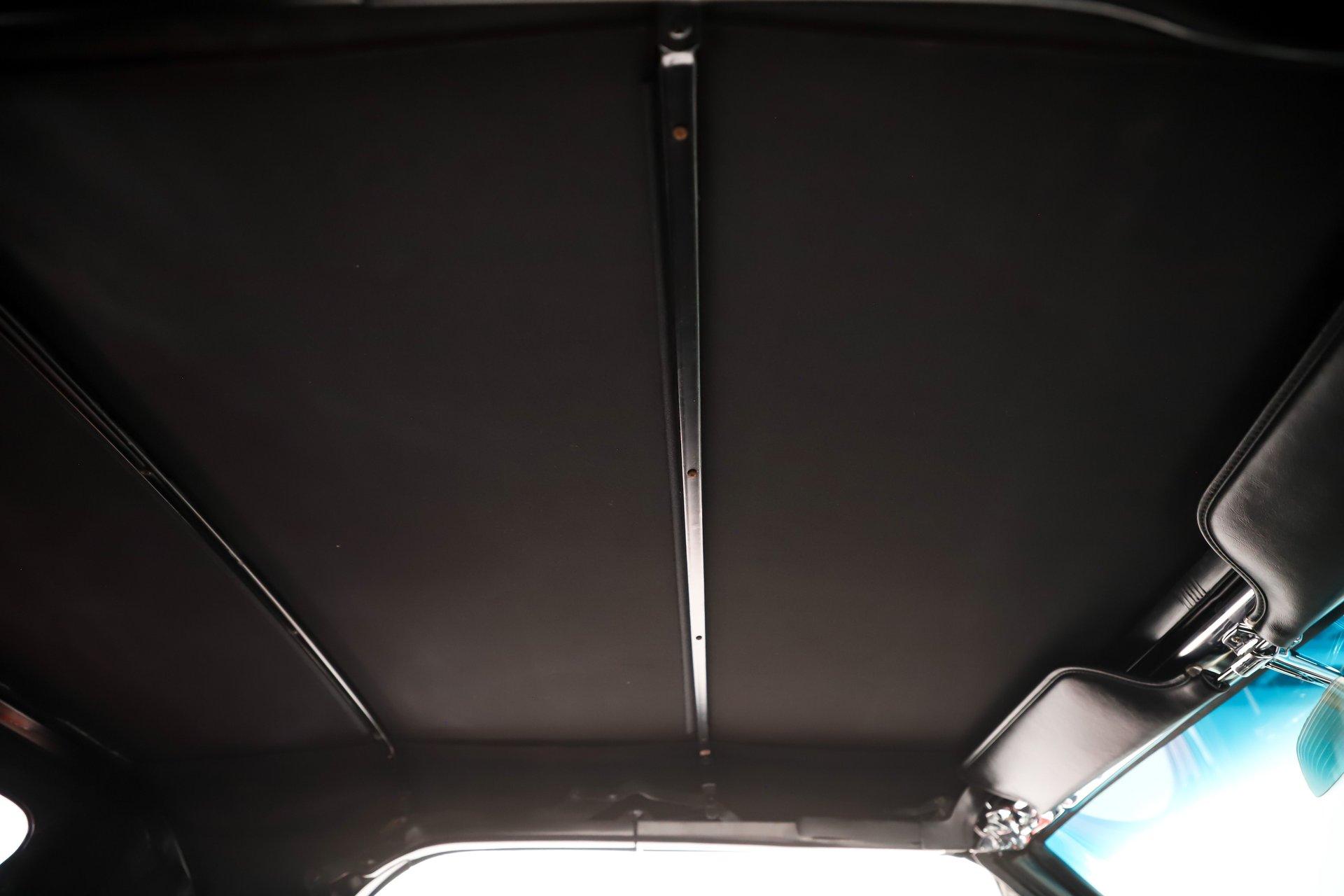 INTERIOR: Here's some nostalgia, a deluxe pony interior. This would include molded door panels with knife handle door openers, deluxe upholstery with running ponies and woodgrain trim. Just about everything has been replaced: dash bezels, dash pad, deluxe steering wheel, carpet pony floor mats etc. Right in front of the console is the a/c unit that will drop ice cubes in your lap!