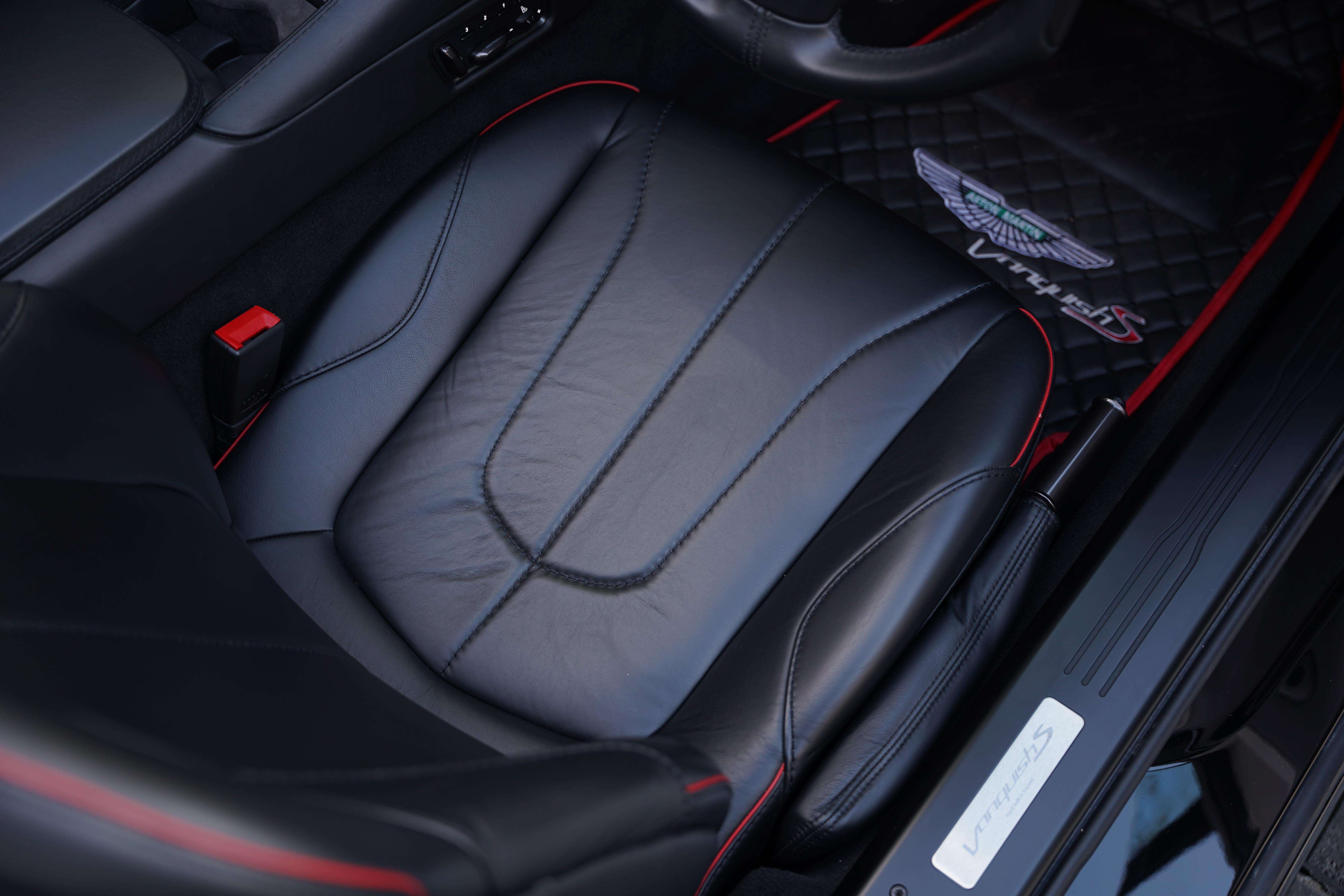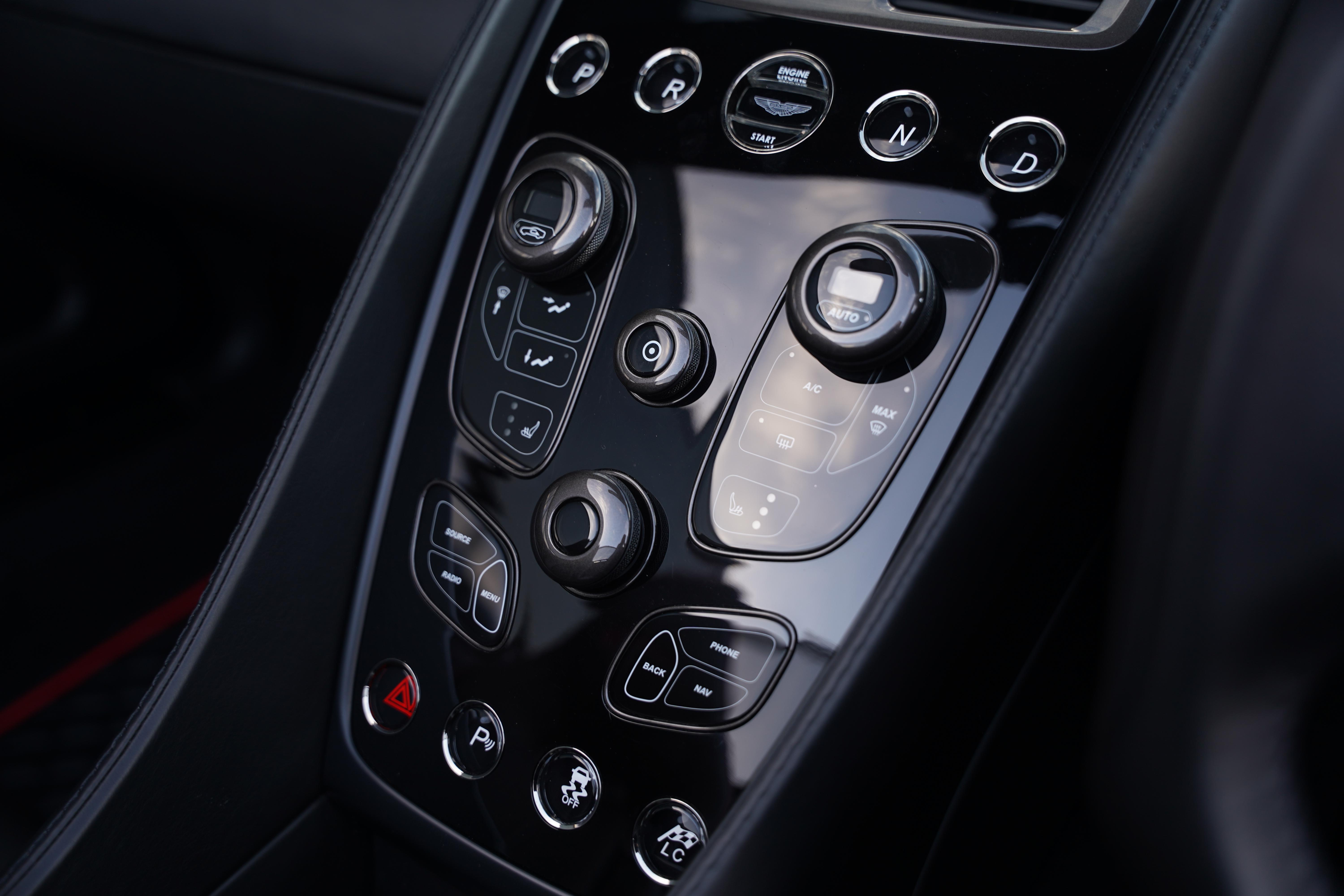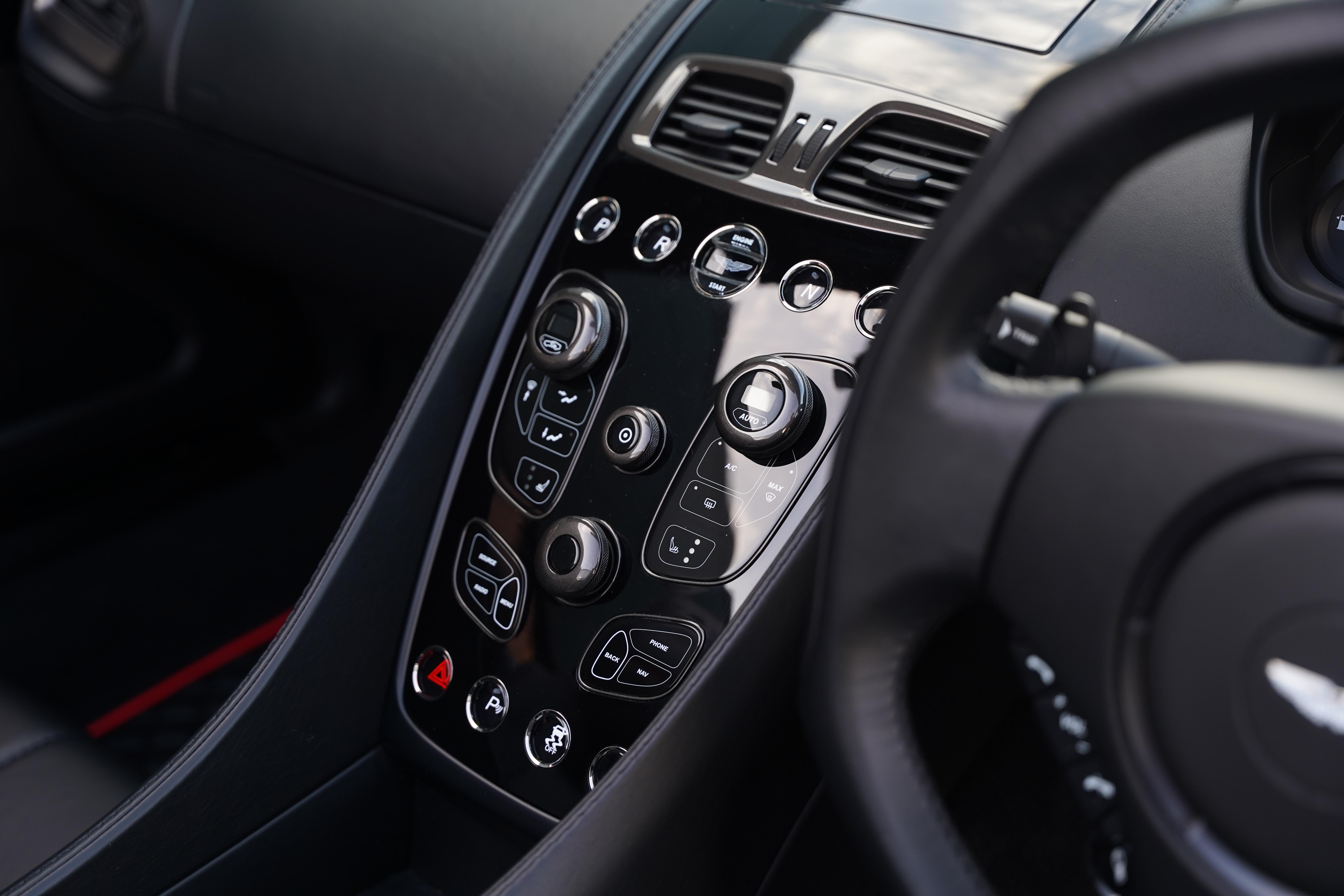 A Pure Black full leather interior compliments the exterior perfectly, with only minimal Spicy Red outer piping and Vanquish S logo embroidering on the seats to tie in the theme throughout the car. A Shadow Bronze Jewellery Pack provides a subtle contrast against the Piano Black centre console facia, further elevating the luxurious feel alongside the Glass Switch option.