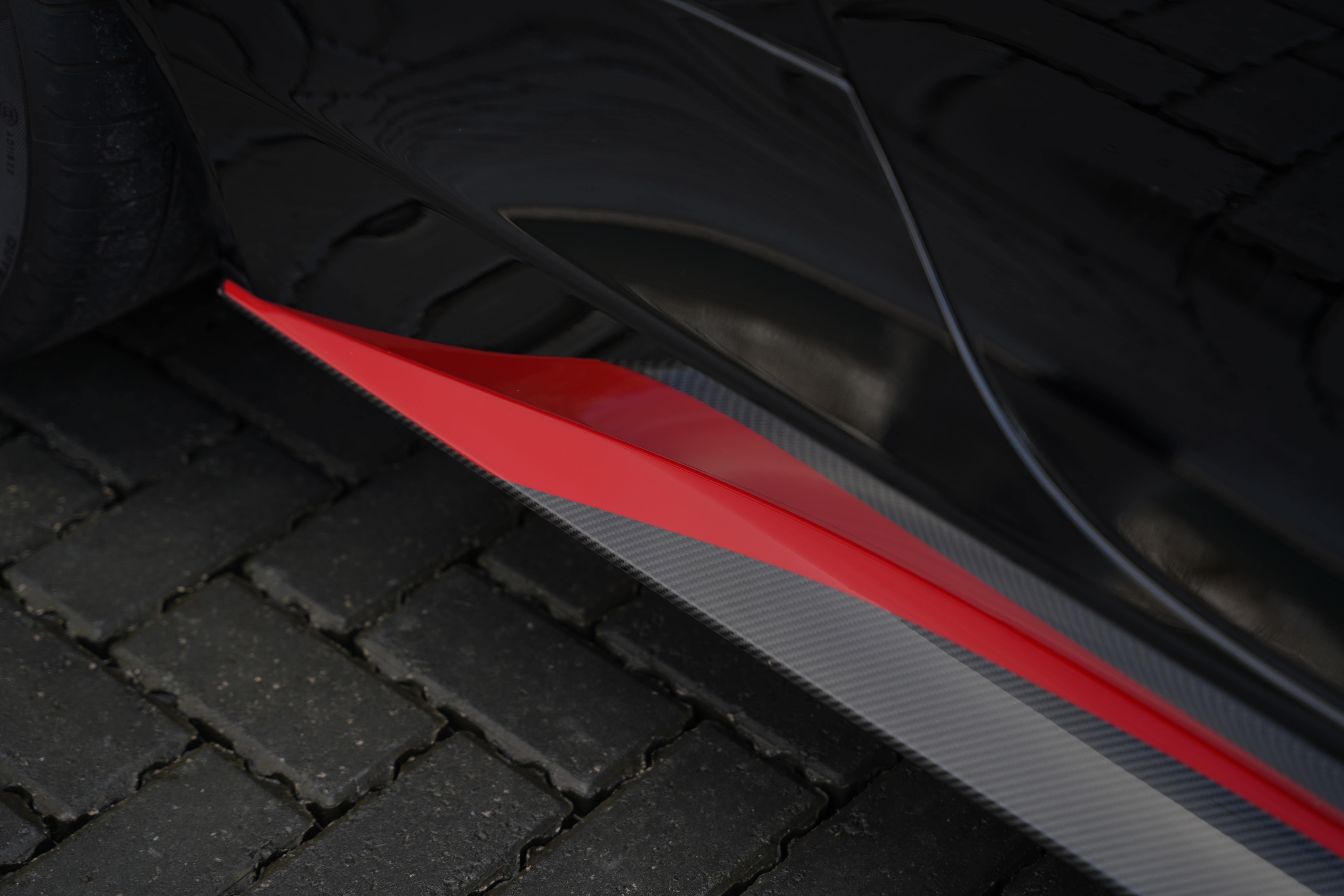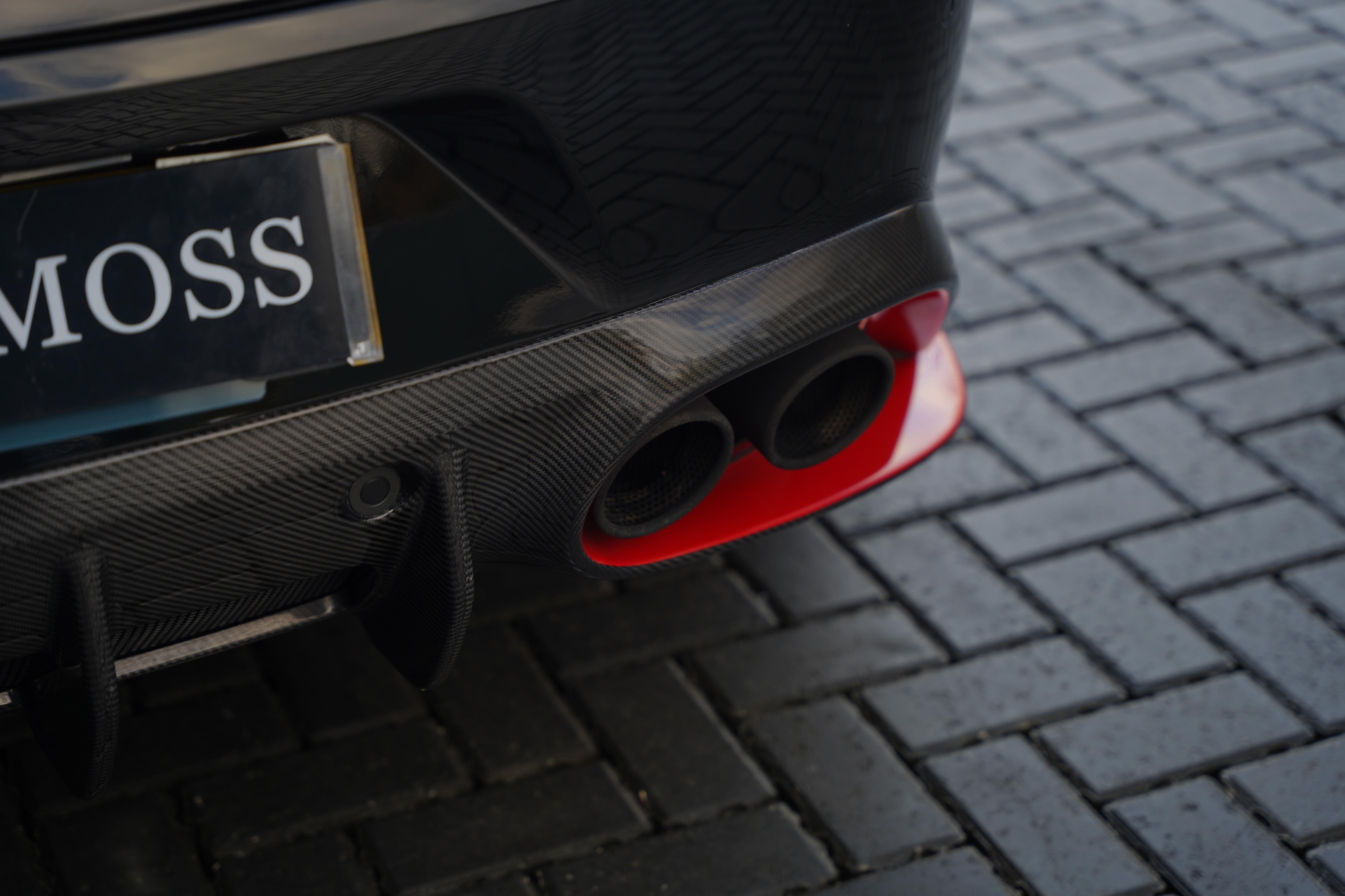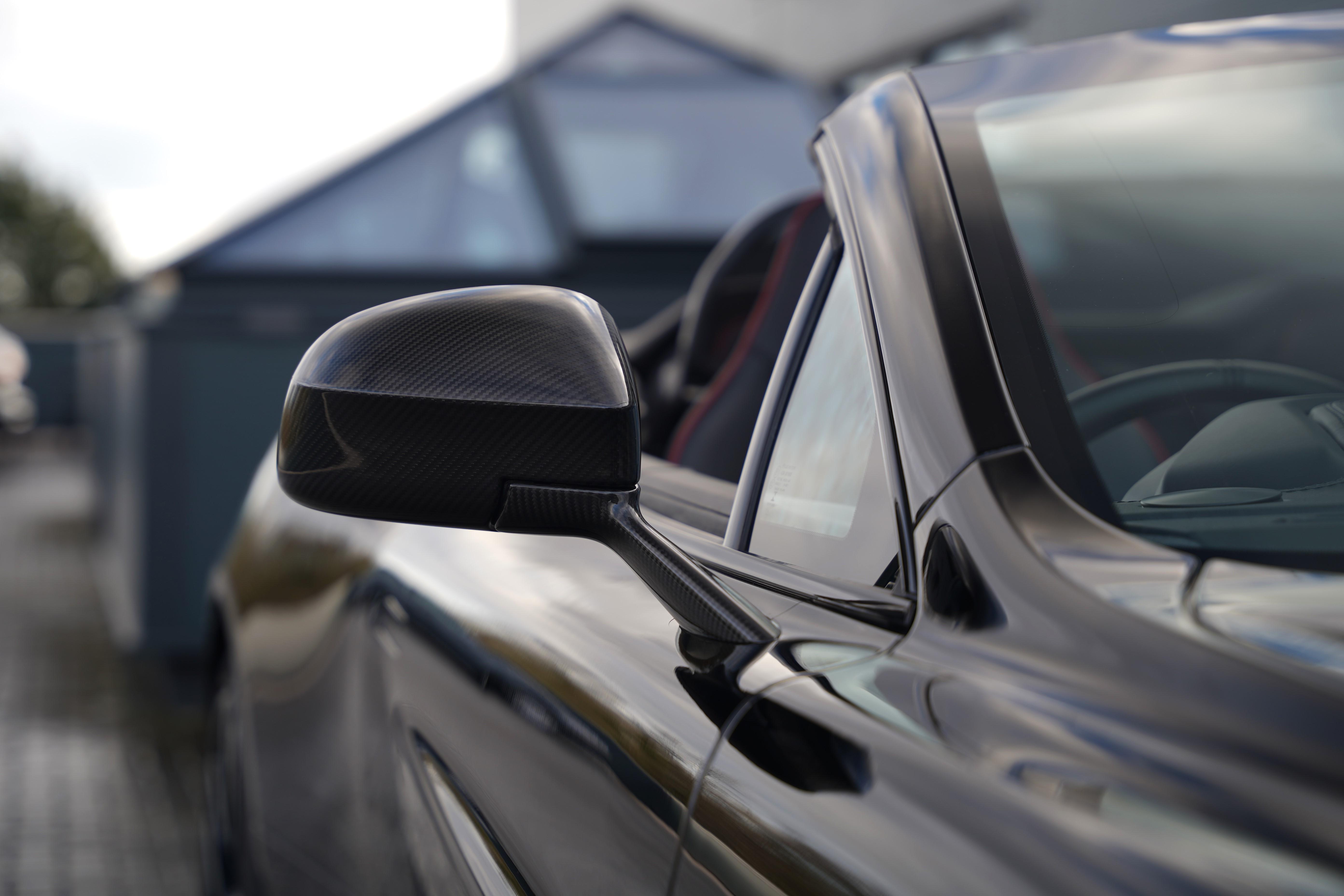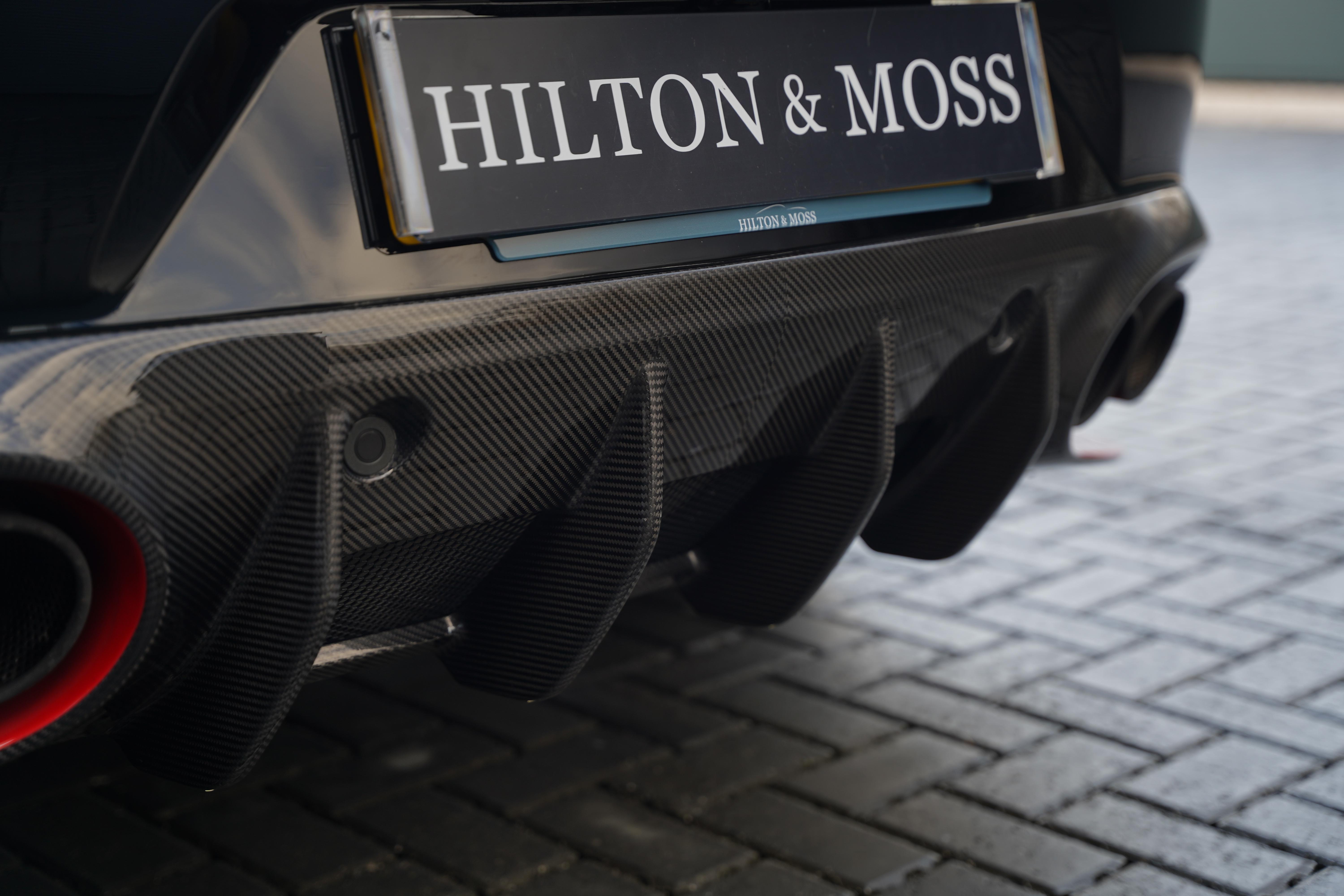 The Vanquish presented here is a truly wonderful example. Having covered just 6,950 miles since first registration in June 2018, the condition is undoubtedly fantastic throughout. The car is finished in Jet Black, with a full Rosso Corsa Graphic Pack and extensive carbon fibre elements that include the front splitter and grille surround, bonnet vents and side strakes, side skirts, mirror covers and the rear diffuser. The 10 spoke, gloss black and diamond cut wheels house the carbon ceramic brakes, with their large Red calipers. Another important consideration for this car is the application of a full exterior PPF covering, ensuring the condition of the car is preserved for many miles to come.