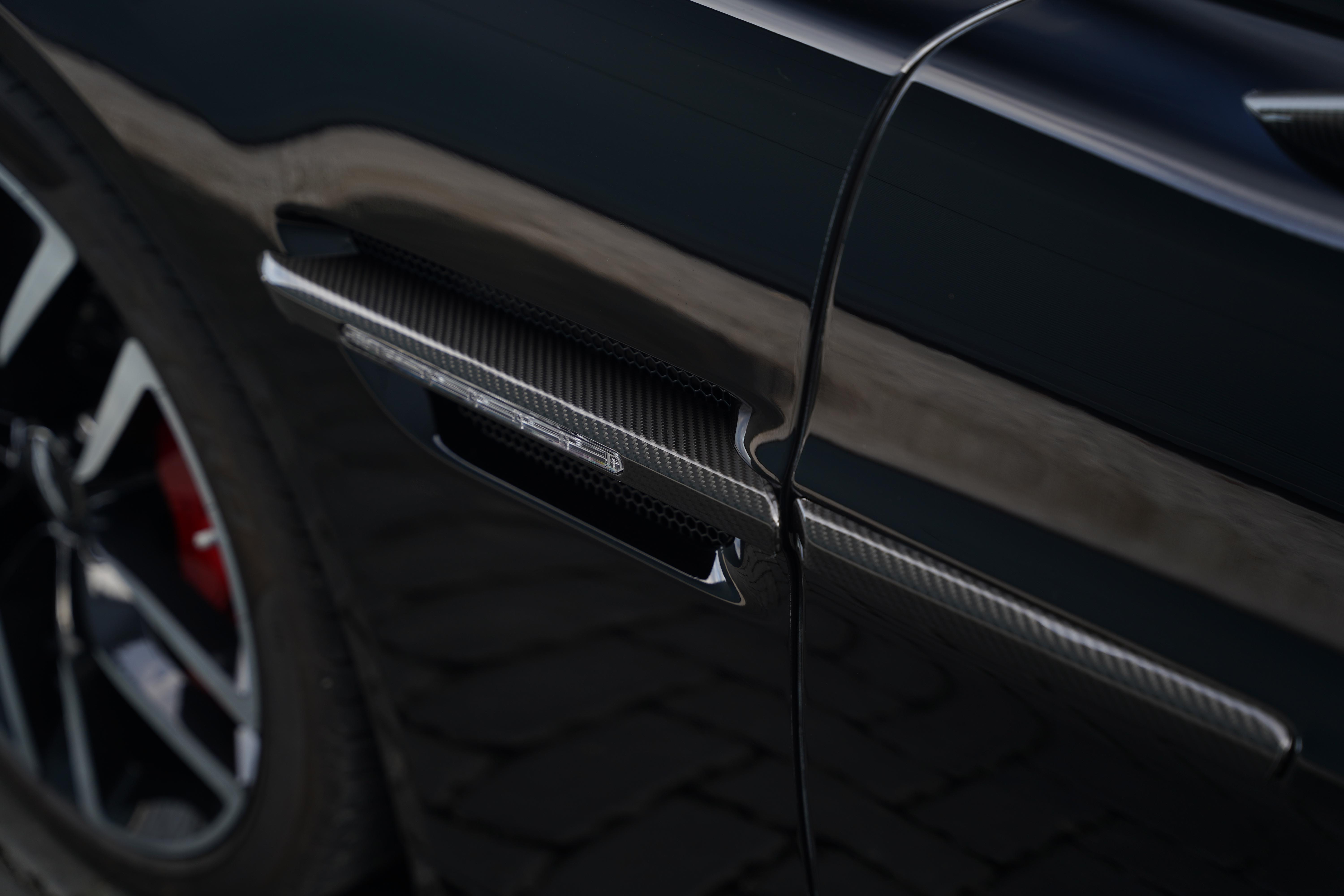 Inside, the cabin is a showcase of Aston Martin craftsmanship. Hand-stitched leather, carbon-fibre detailing and beautifully machined switchgear create an atmosphere of understated luxury. The Vanquish S specification brings sports seats, distinctive trim finishes and subtle ‘S’ badging, reinforcing its position at the very top of the Aston Martin range.