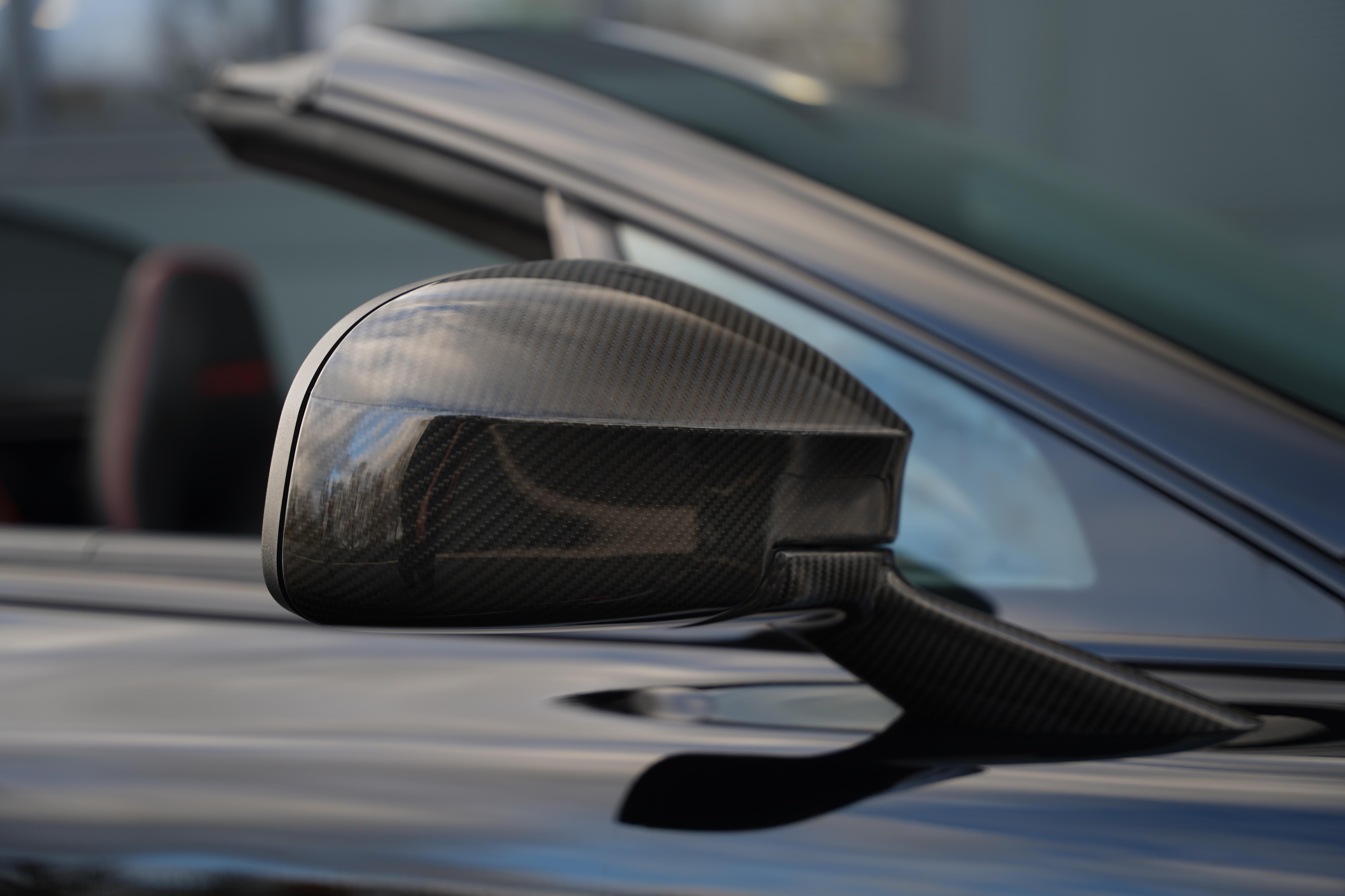 Visually, the Vanquish S Volante is unmistakable. A more aggressive aerodynamic treatment, including a redesigned front splitter, side sills and rear diffuser, gives the car added presence without compromising its inherent grace. The lightweight carbon-fibre structure ensures exceptional rigidity, allowing the Volante to retain the poise and precision of the Coupe, even with the roof stowed. The electrically operated fabric roof opens in just 14 seconds, transforming the car from a refined GT to an exhilarating open-air V12 experience at the touch of a button.