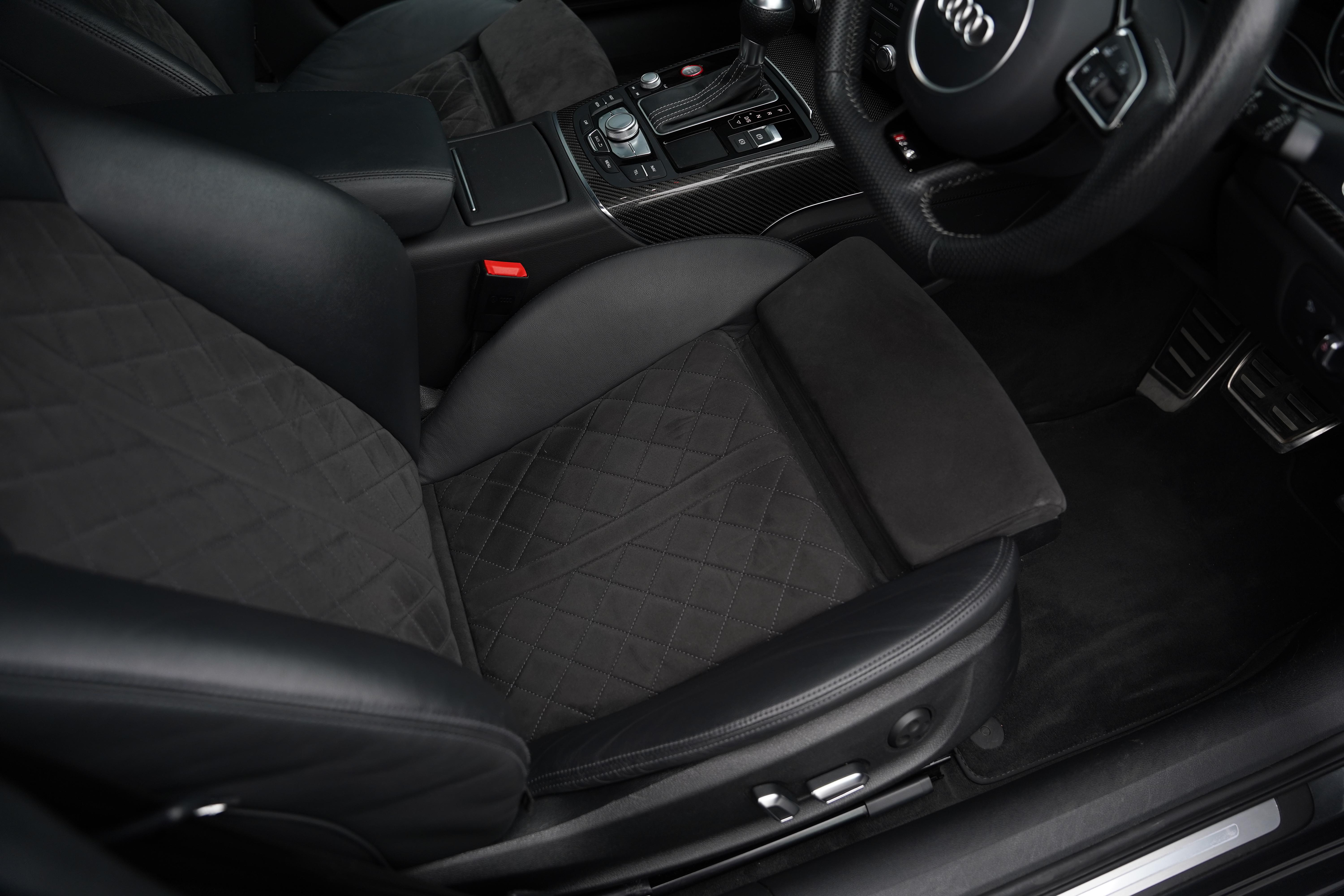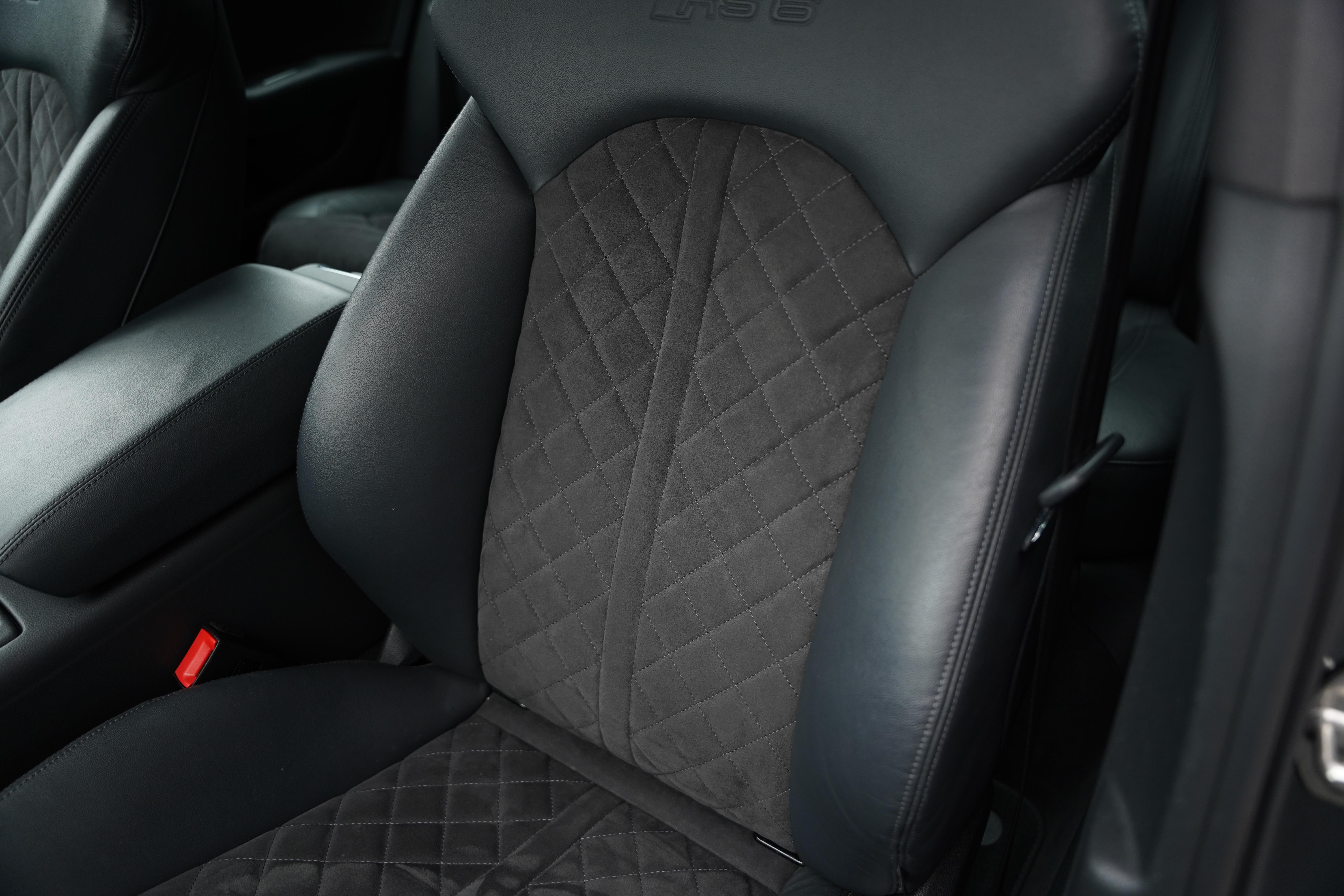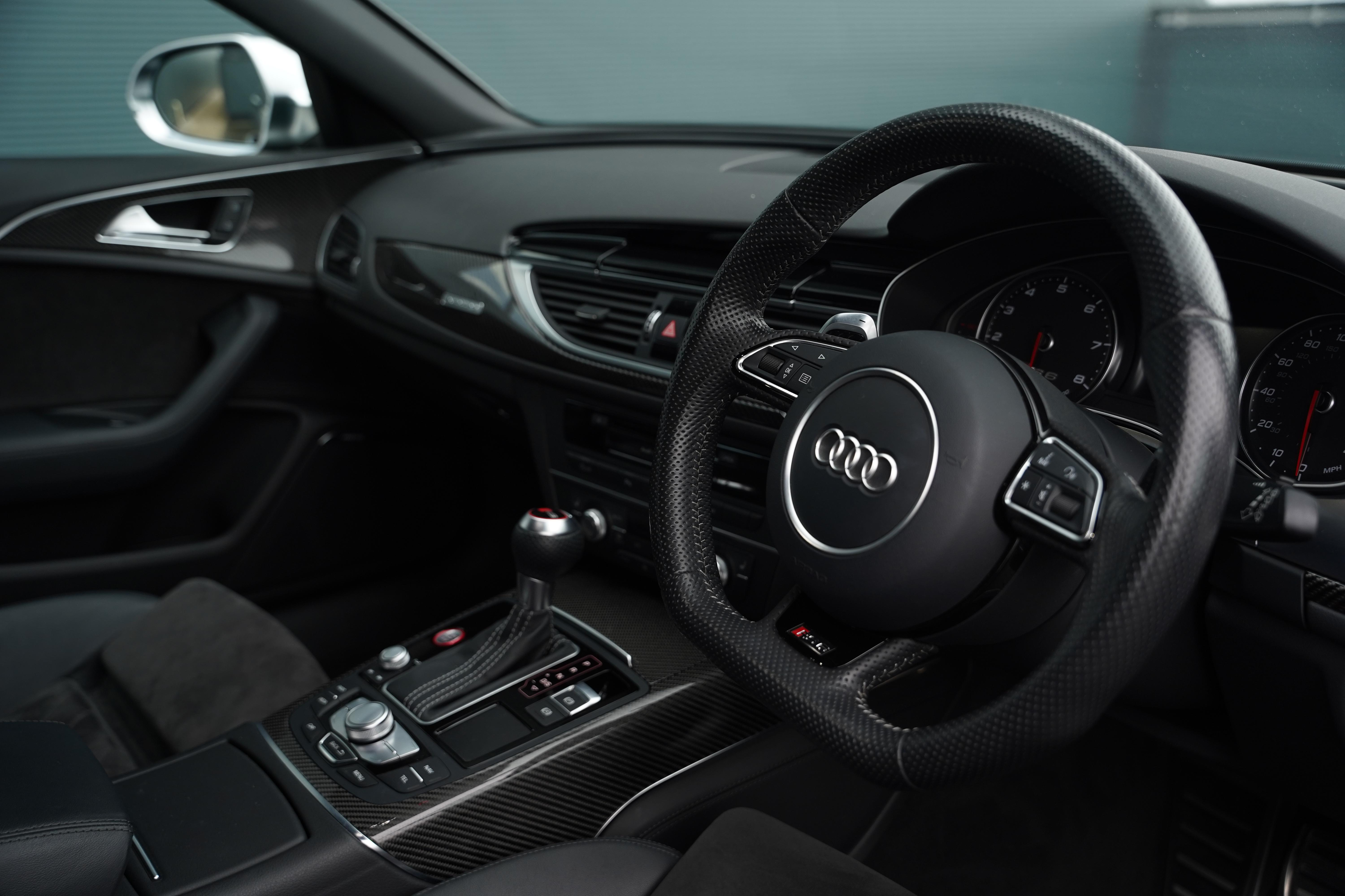 Our car here, is presented in the elegant Daytona Pearl Grey, with the forged 7-twin spoke diamond-cut wheels and black brake calipers housed within. Complimenting silver accents can be found on the wing mirrors, front splitter and roof rails. The interior is nothing short of fantastic. The front Sports Seats (With heating and memory function) are finished in black leather, featuring a quilted alcantara centre panel and RS6 embossing to the headrests. The rear seats are equally comfortable, also being heated, and benefitting from ISOFIX and rear dual climate control.