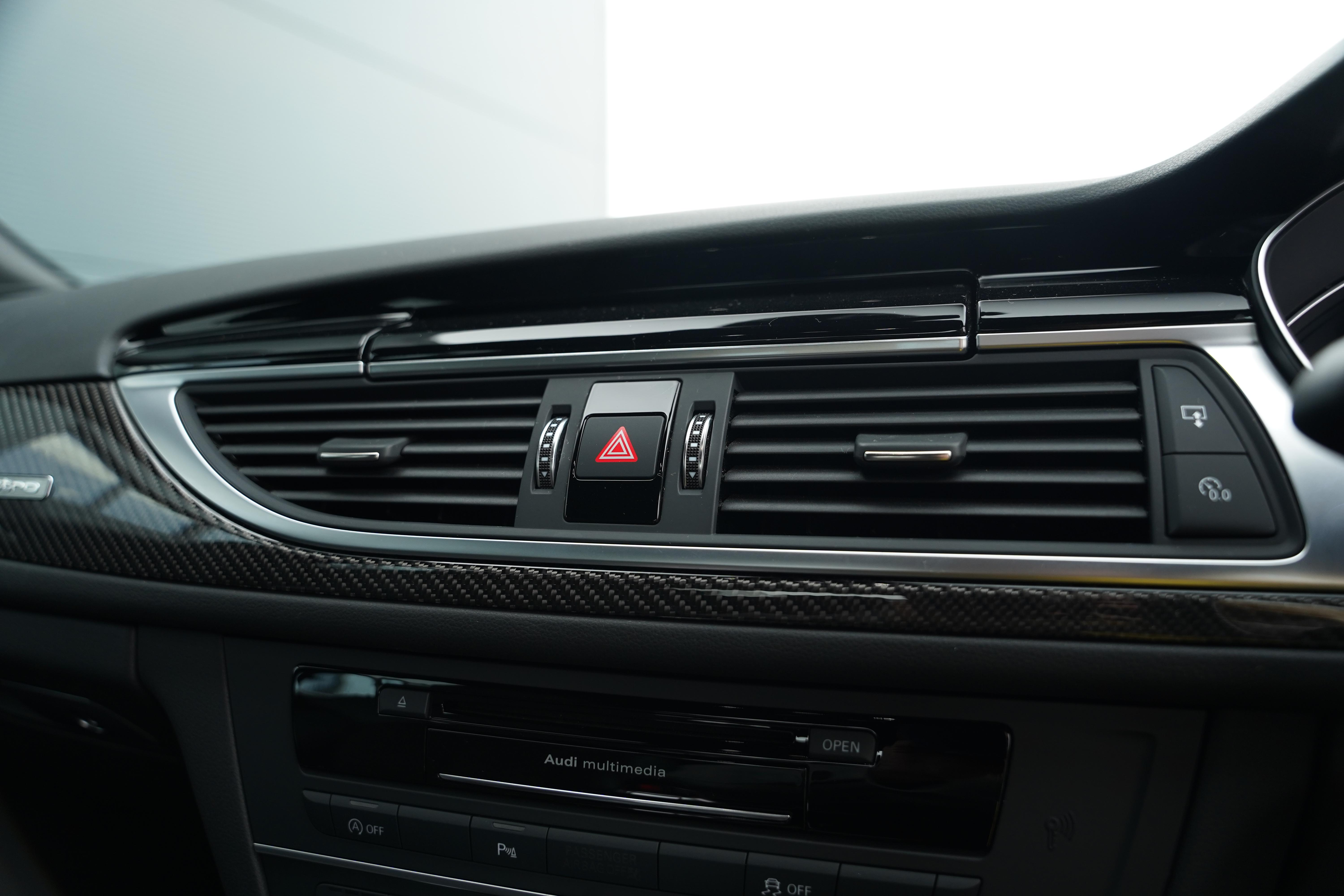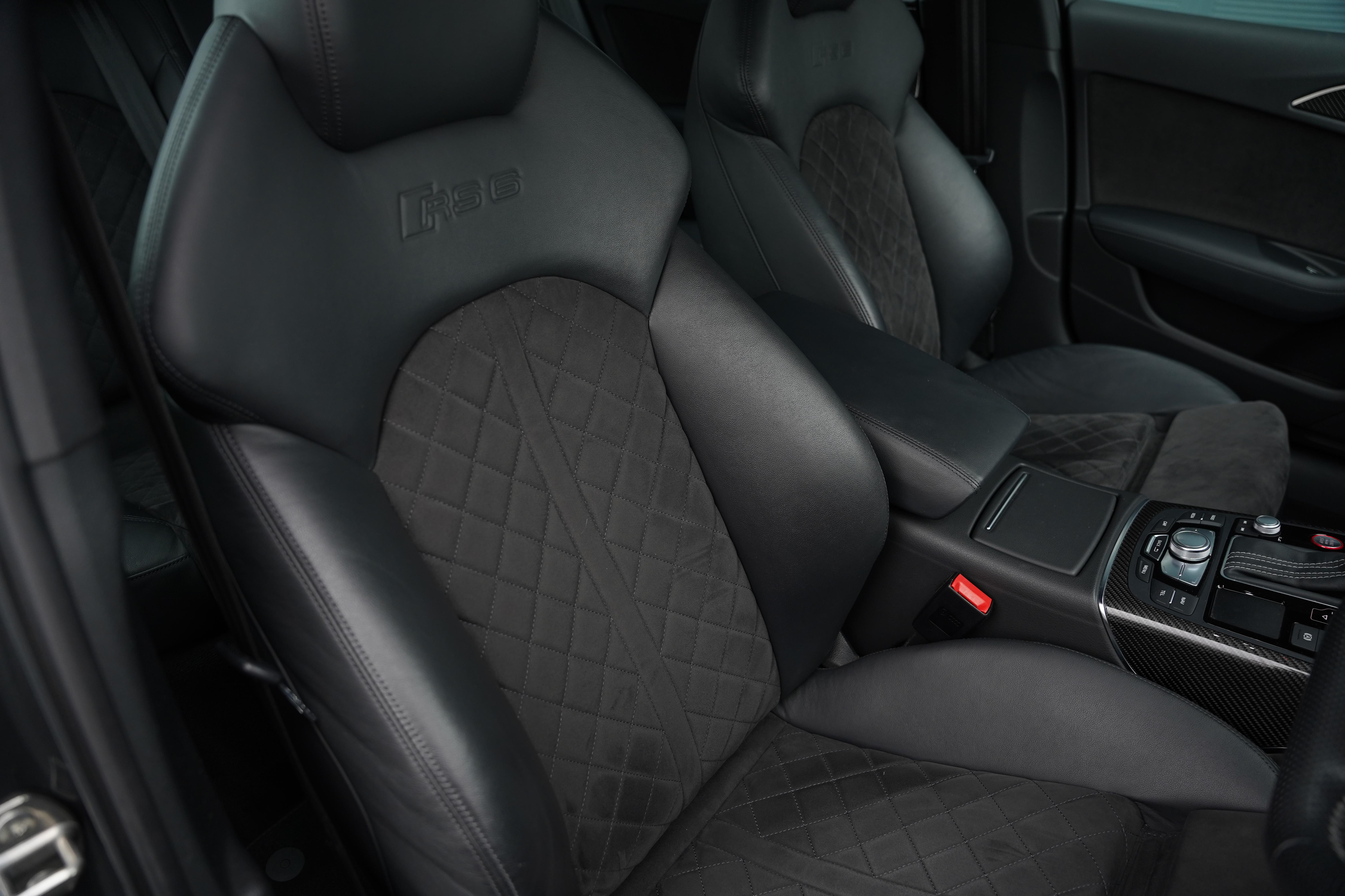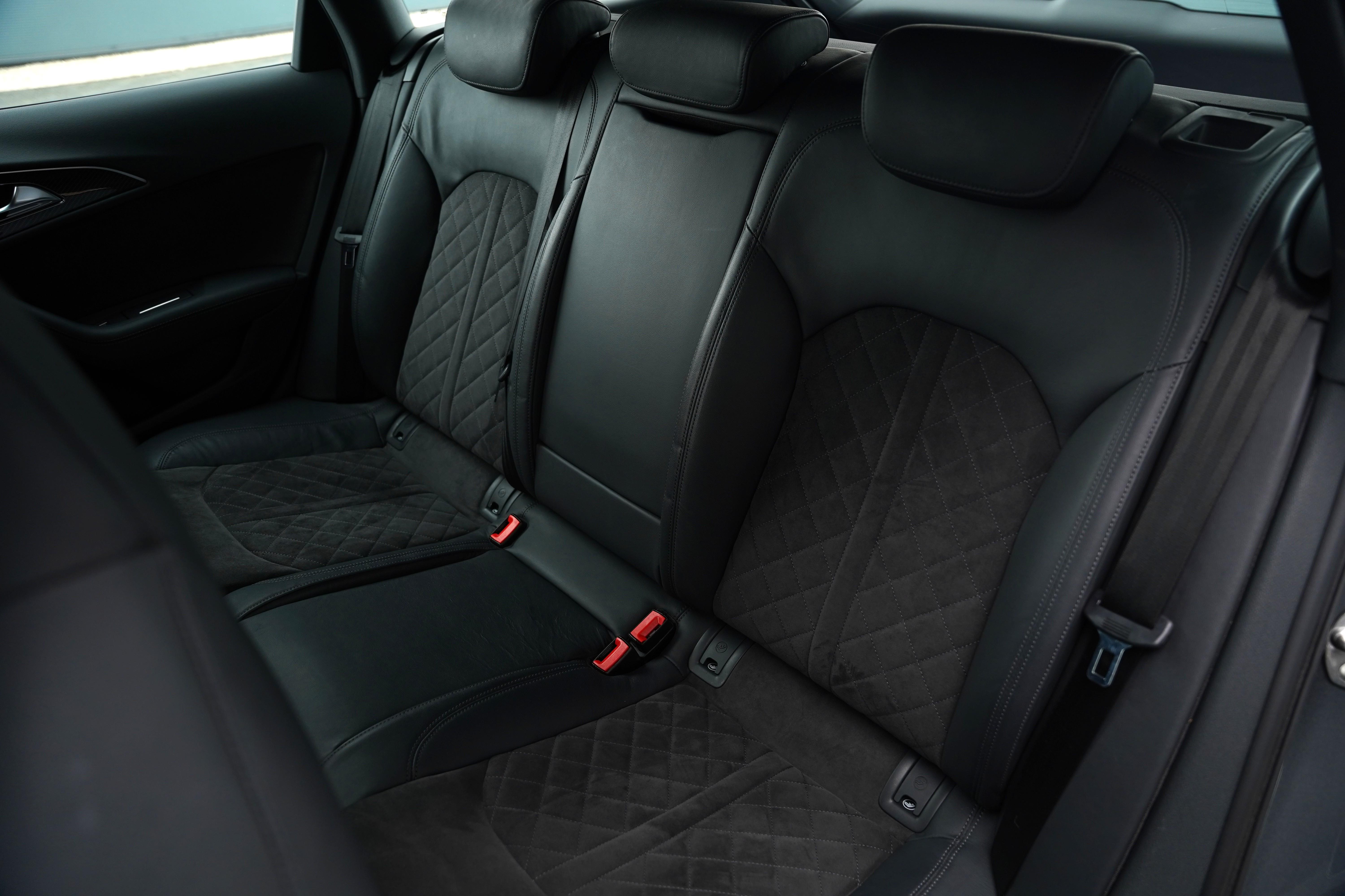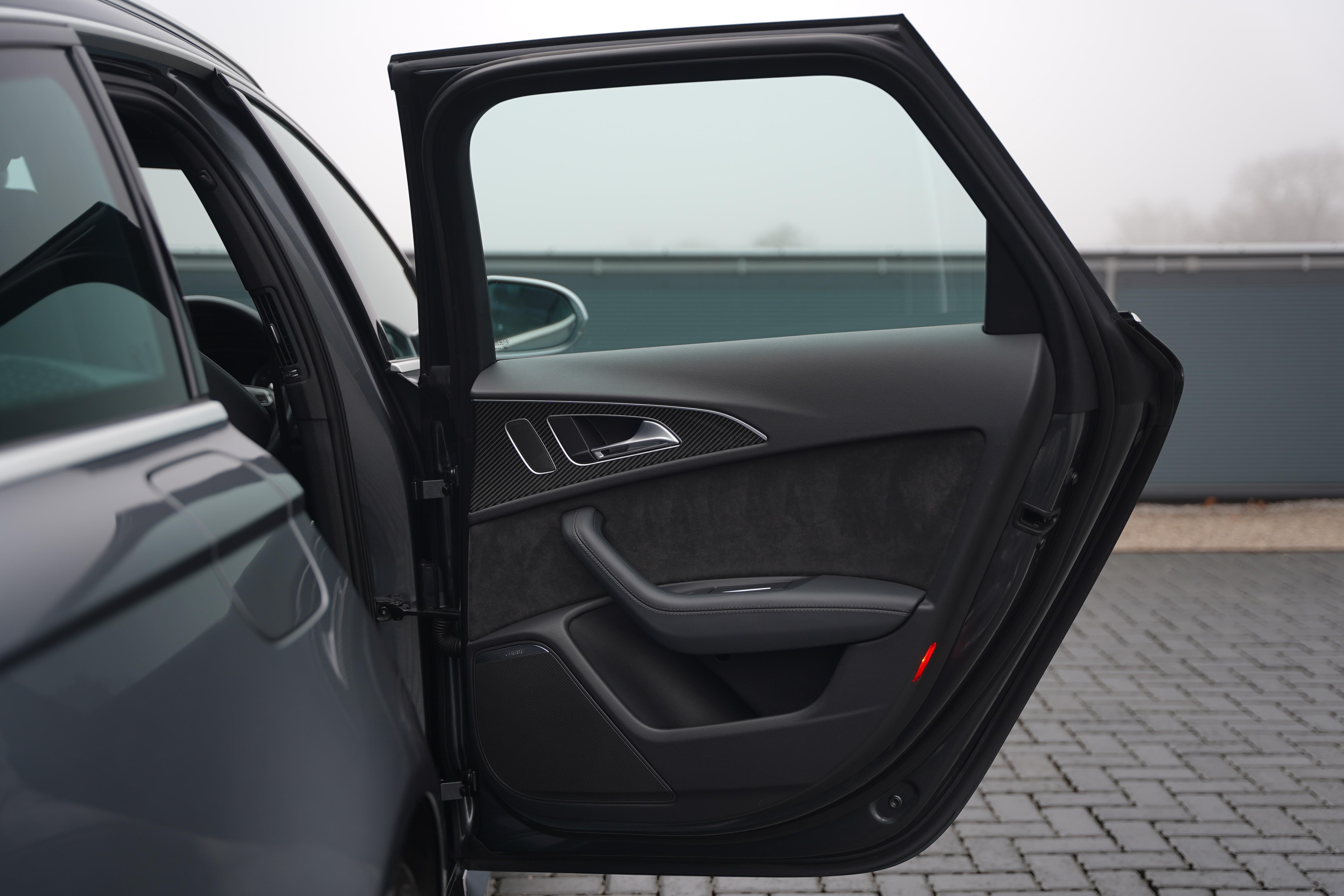 Our car here, is presented in the elegant Daytona Pearl Grey, with the forged 7-twin spoke diamond-cut wheels and black brake calipers housed within. Complimenting silver accents can be found on the wing mirrors, front splitter and roof rails. The interior is nothing short of fantastic. The front Sports Seats (With heating and memory function) are finished in black leather, featuring a quilted alcantara centre panel and RS6 embossing to the headrests. The rear seats are equally comfortable, also being heated, and benefitting from ISOFIX and rear dual climate control.