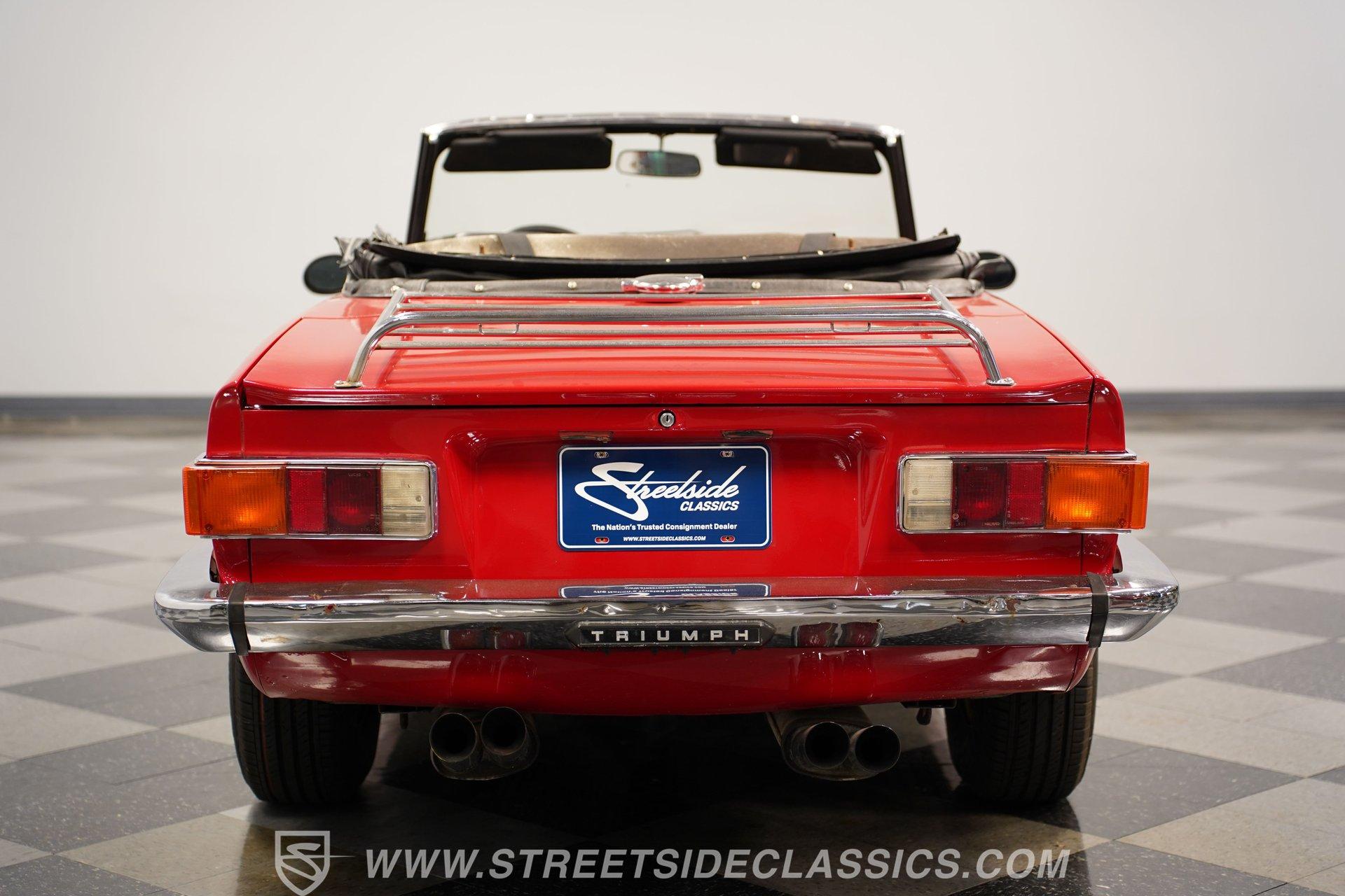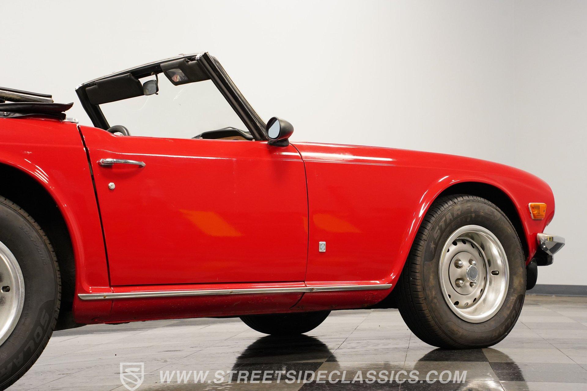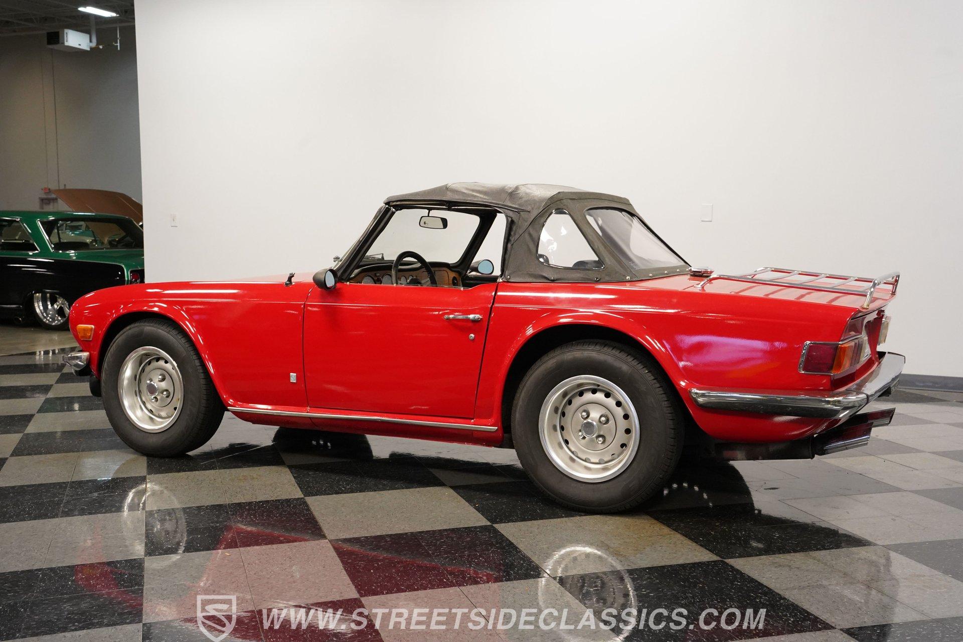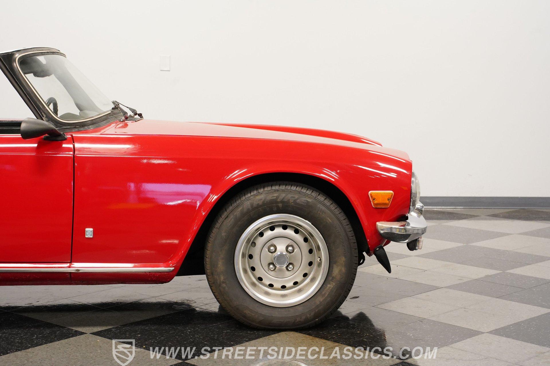 This 1974 Triumph TR6 is the right mix of originality and care. It makes for the kind of value-priced classic that turns back the clock the moment you turn the key. The racy red paint color looks great on this classic roadster. The body has a straight and clean look of quality and the chrome luggage rack adds character. The clean black interior has a good look against the classic red exterior. You know this is a driver's car from the moment you sit down. The grippy sports steering wheel, well-placed shifter, and a wood-faced dash full of Smiths gauges engage the enthusiast in you.