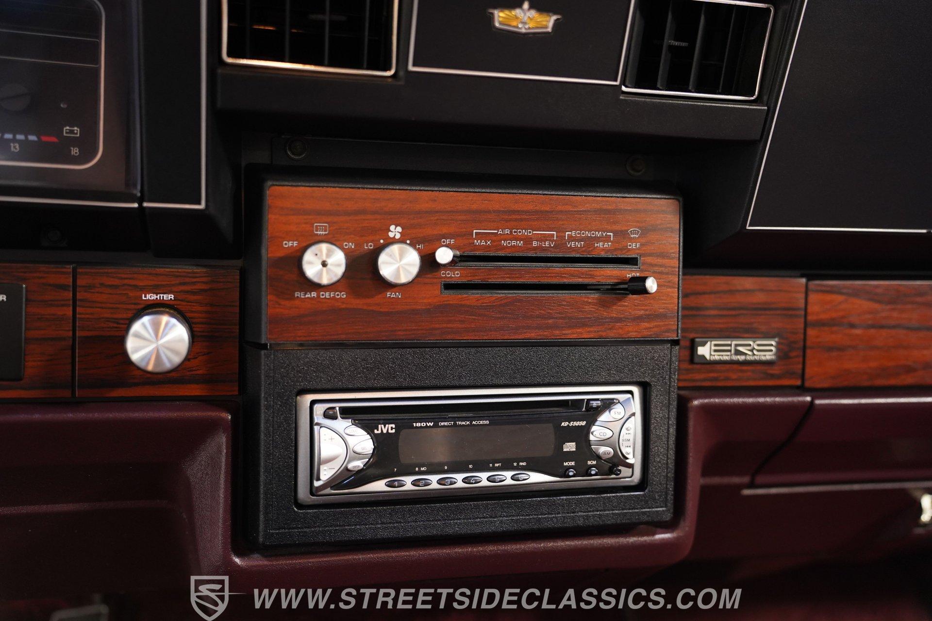 Slide inside and you will find a luxurious interior that speaks to comfort and style. Deep Burgundy vinyl covers a split bench and dual power front seating that remain comfortable and well kept. The wood grain trim is intact, and features such as tilt steering, cruise control, power windows and locks, and an upgraded JVC CD player radio adds to the driving experience.