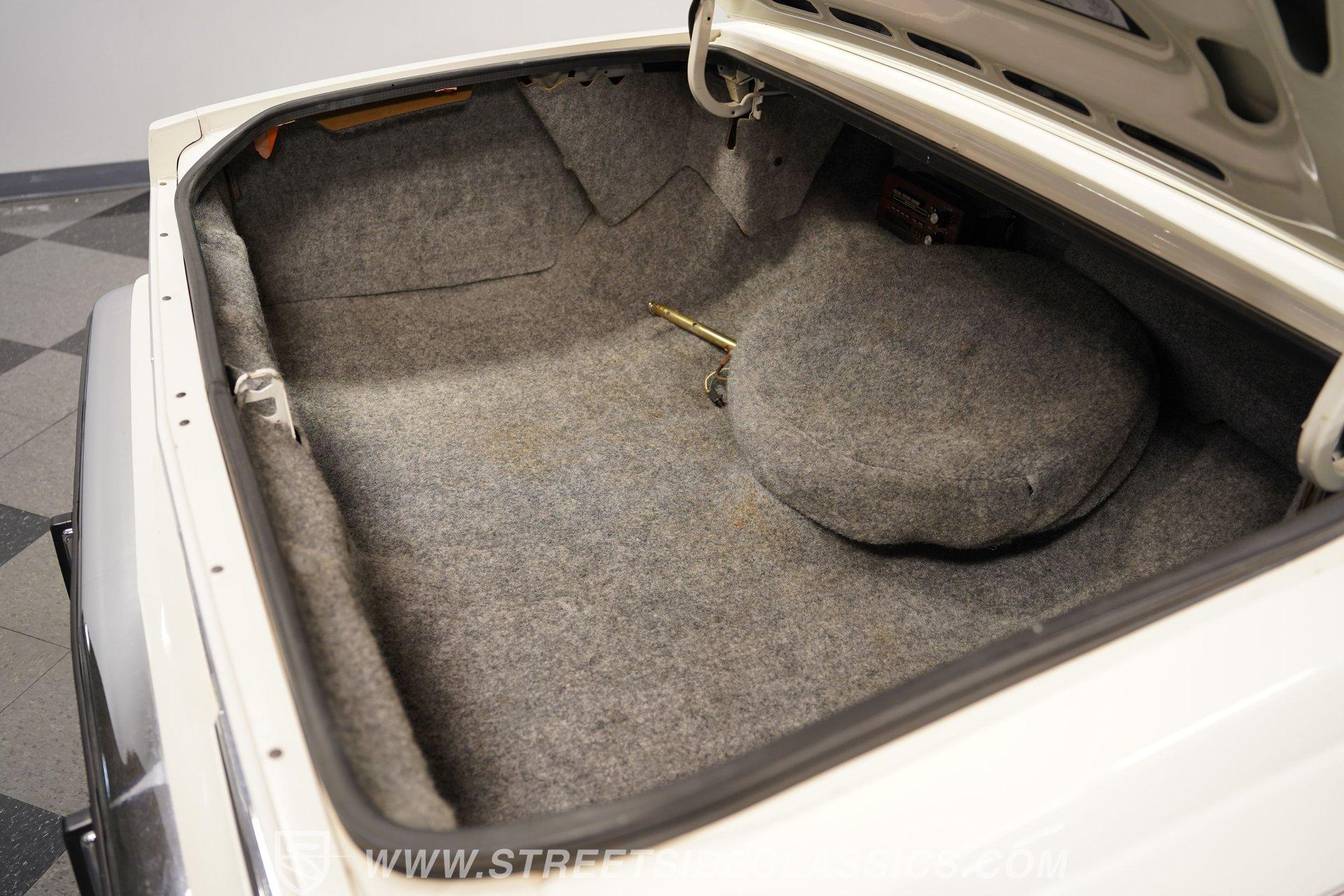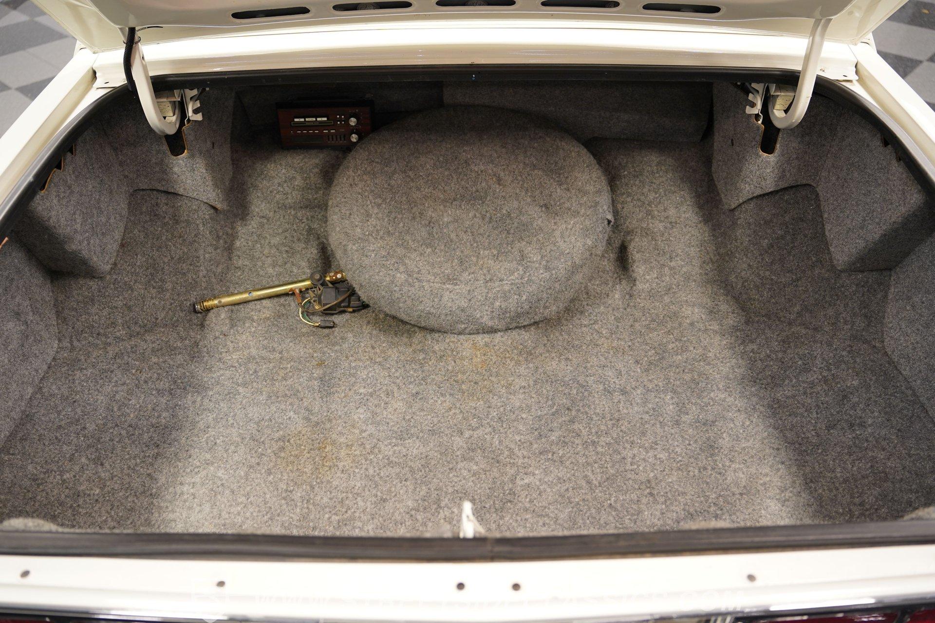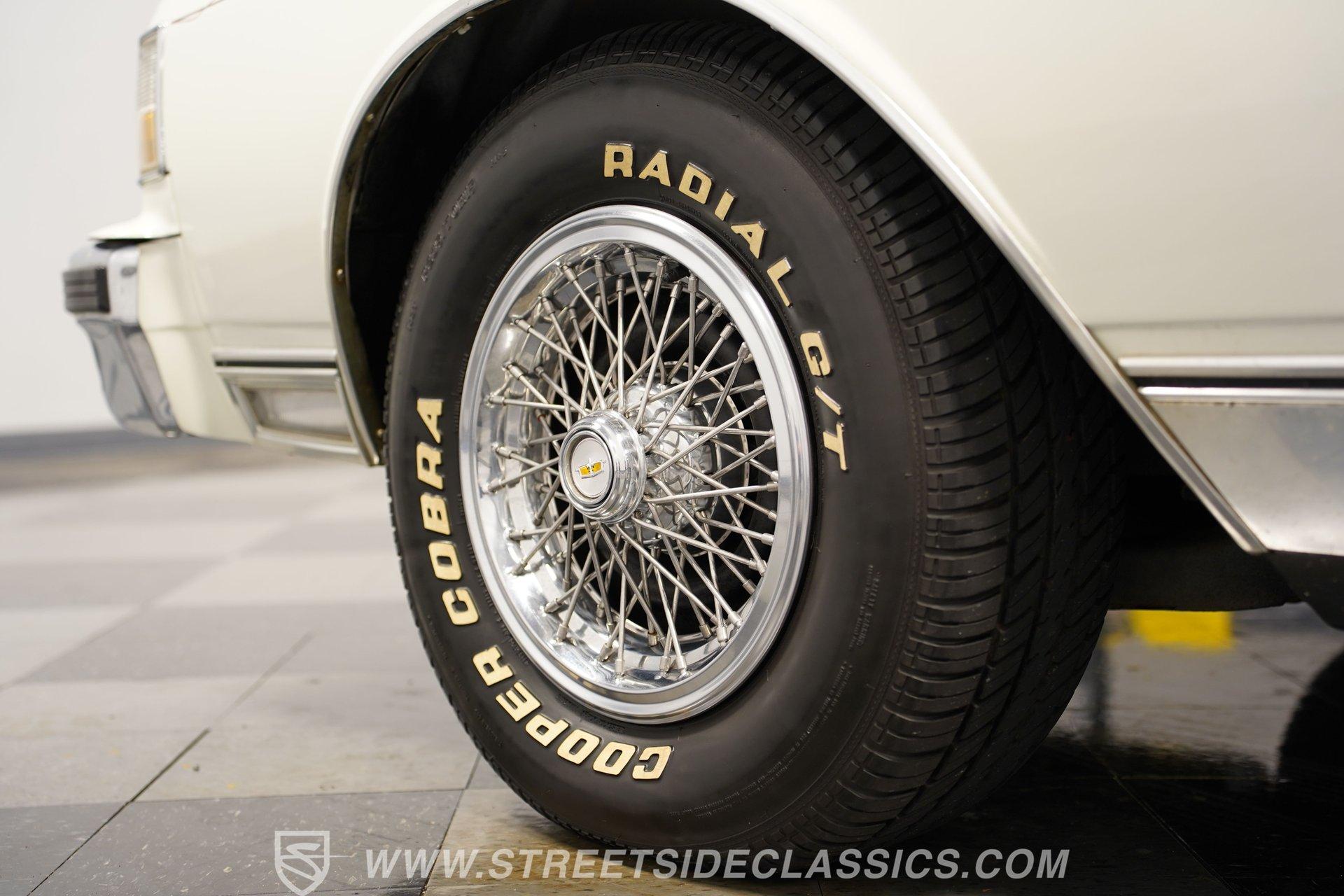 Under the hood sits the stock 5.0-liter V8 paired with a smooth shifting 700R4 four speed automatic transmission. The engine bay is tidy and runs smooth and quiet during operation. Equipment includes factory air conditioning that blows cold, power steering, power front disc brakes provide a confidant and comfortable driving experience. The GM 10-bolt rear axle rides on coil springs with shocks and sway bar, and the car rolls on 15-inch factory wheels with factory wire wheel covers, wrapped in sporty 235/75R15 Cooper Cobra Radial G/T tires.