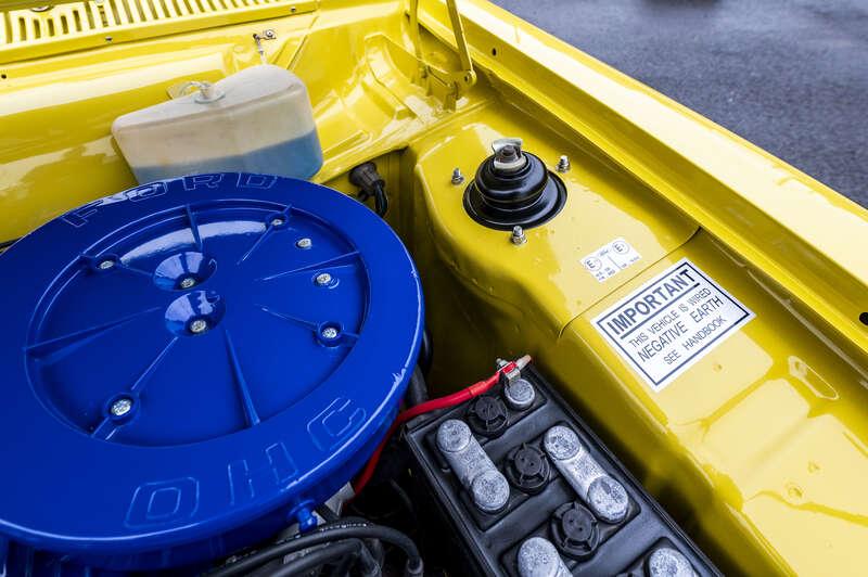 This particular RS2000 is offered in its original and wonderfully evocative hue of Daytona Yellow fresh from a restoration that has been completed to the very highest standards. The result is a car that speaks directly of Ford’s rallying heyday, benefitting from an exacting, nut-and-bolt restoration, carried out with an unwavering commitment to originality. Wherever possible, original components have been retained and professionally refurbished, with new parts used only where absolutely necessary – and always to correct Mk1 specification. The original shell has been fully restored and refinished in factory-correct Daytona Yellow. Original glass has been retained, complemented by a new laminated windscreen and drop glass, along with new window rubbers and chrome inserts. New bumpers, irons and fixings sit alongside refurbished original lighting where possible, re-chromed door handles, correct aerial and re-zinced fasteners throughout – all contributing to a finish that is crisp, authentic and period-perfect. The underside has been stripped back, treated and finished in body colour and the suspension and steering components, steering rack, bushes and rear dampers have been comprehensively renewed or refinished as required.