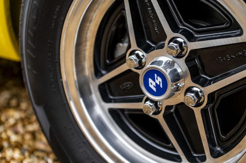 The braking system has been fully rebuilt with new calipers, discs, pads, rear cylinders, shoes and copper lines, alongside new wheel bearings, front and rear. The original 2.0-litre Pinto engine has been rebuilt with new shells and mains, and fitted with the correct RS alloy sump. The cylinder head has been refreshed with new valve stem seals and spray bar, whilst a new Weber carburettor, alternator, radiator and battery ensure dependable performance. The original 4-speed gearbox has been overhauled, a new propshaft fitted, and a correct Mk1 exhaust system installed with the original manifold retained. Inside, the cabin has been restored to concours-level standard. Front and rear seats have been retrimmed in authentic RS Beatacloth by Aldridge Trimmers, accompanied by a new headlining, door cards, dash top, parcel shelf and moulded carpet set with correct alloy trims. New belts, rubbers and detailing complete an interior that feels as evocative as it is immaculate. The original 5½J RS alloy wheels have been refurbished and diamond-cut, perfectly finishing the car’s unmistakable stance.
